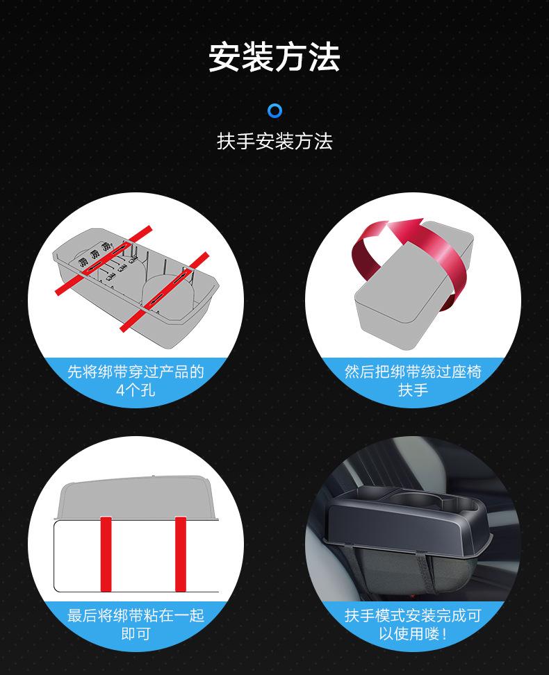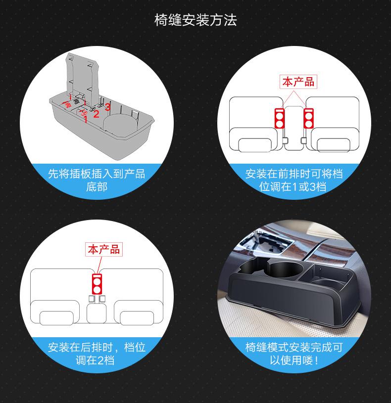 [Instrucciones de instalación]: 1. Se puede instalar en el espacio del asiento, o en el asiento del coche con reposabrazos para aumentar el espacio de almacenamiento en el coche;