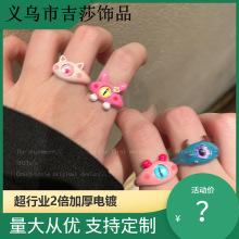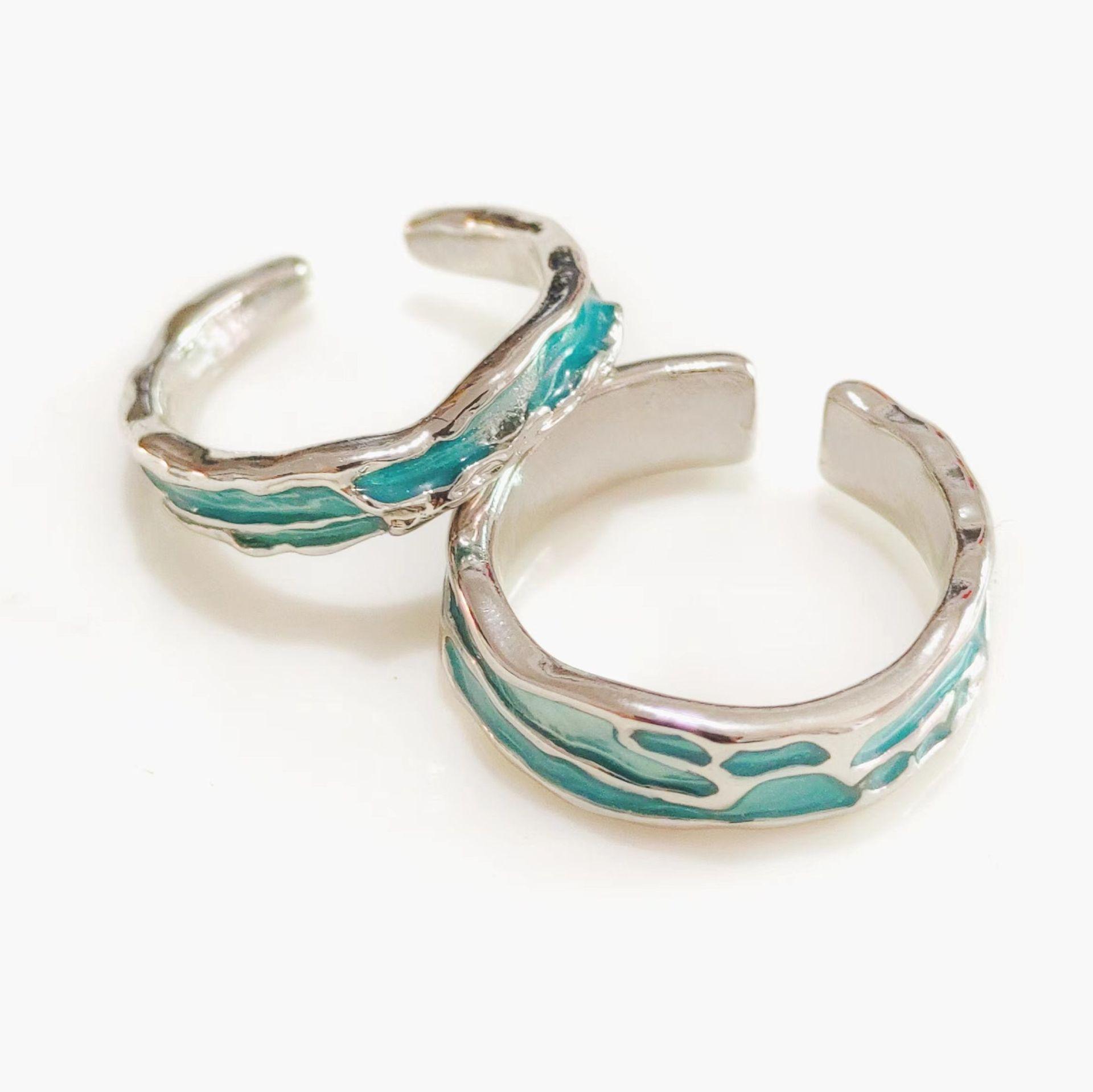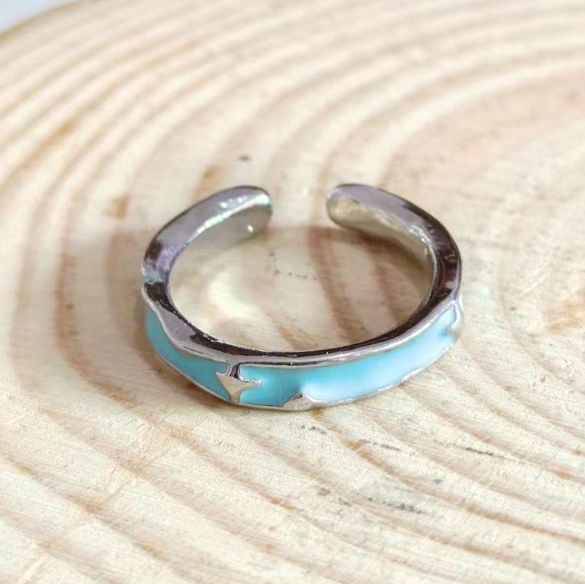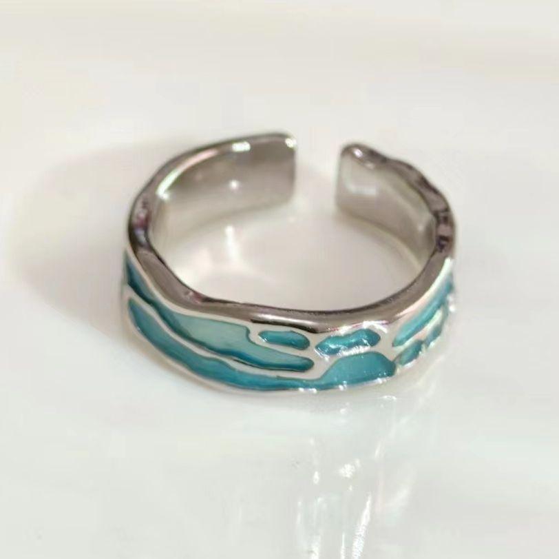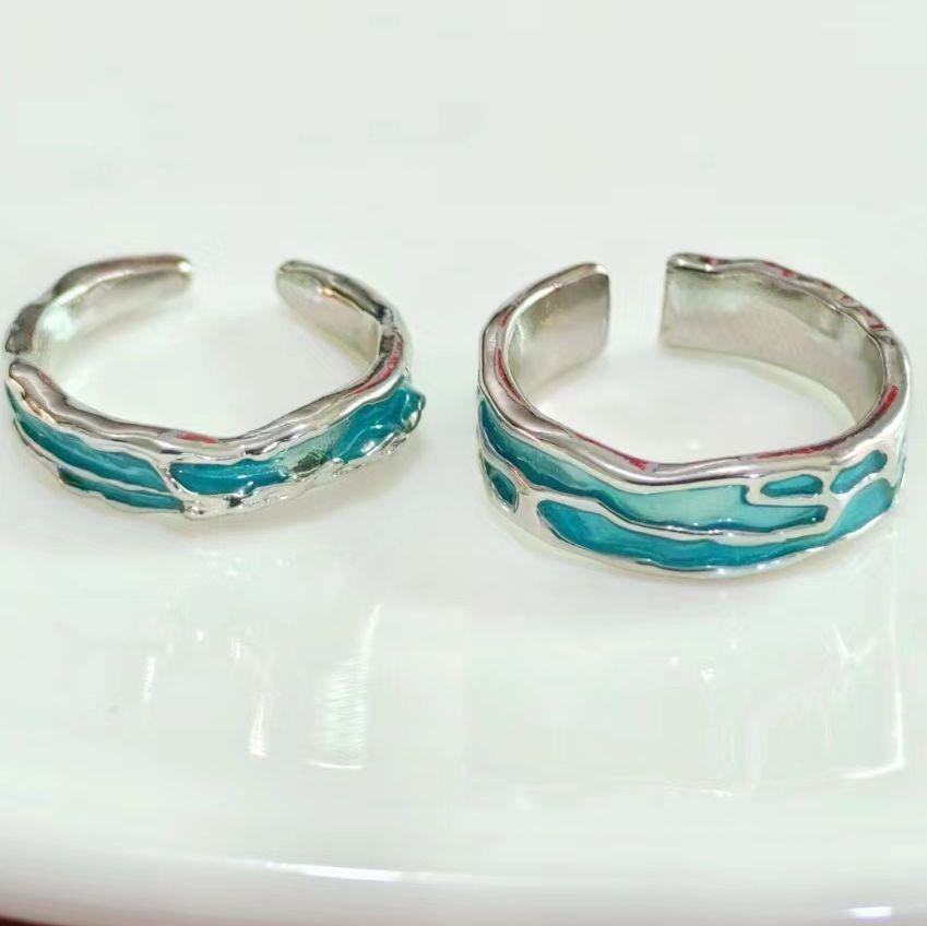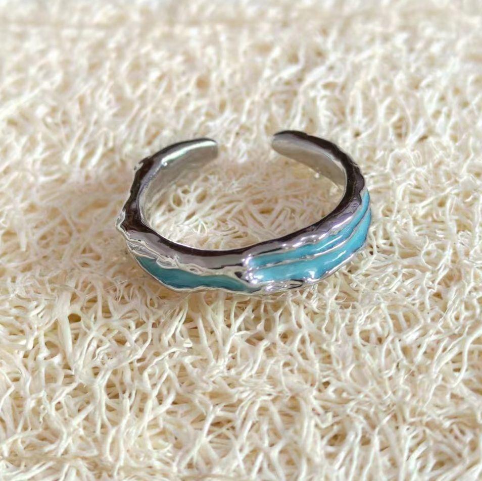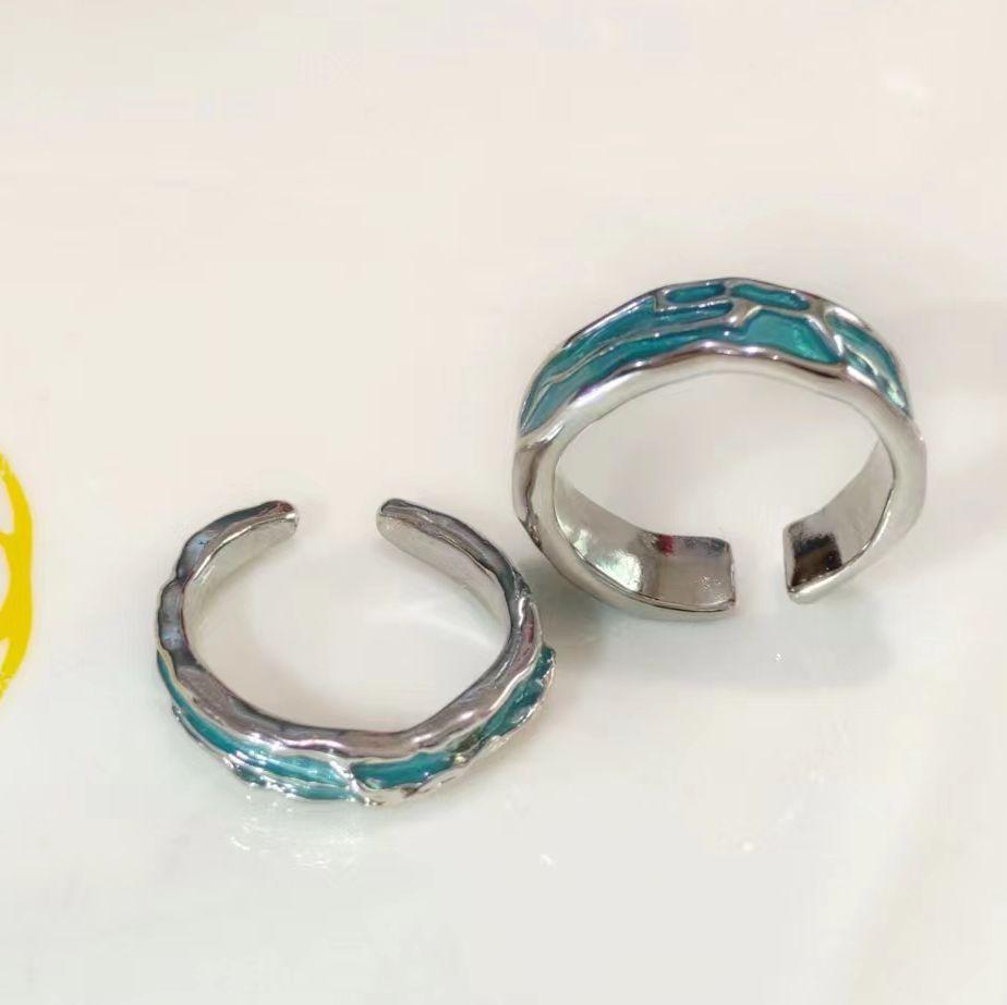 Anillo K-Style de Pareja Ins Goteo de Aceite Océano Azul Anillo para Hombre y Mujer Apertura Ajustable Anillo Individual Venta al por Mayor