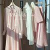 Vestido rosa de manga larga con estampado de camelia francesa de otoño, estilo suave y dulce, con un toque de luz de luna blanca.