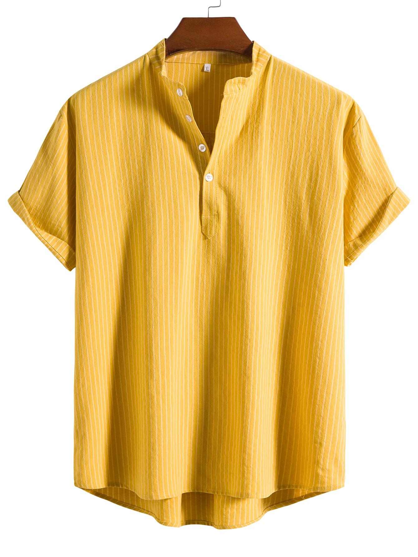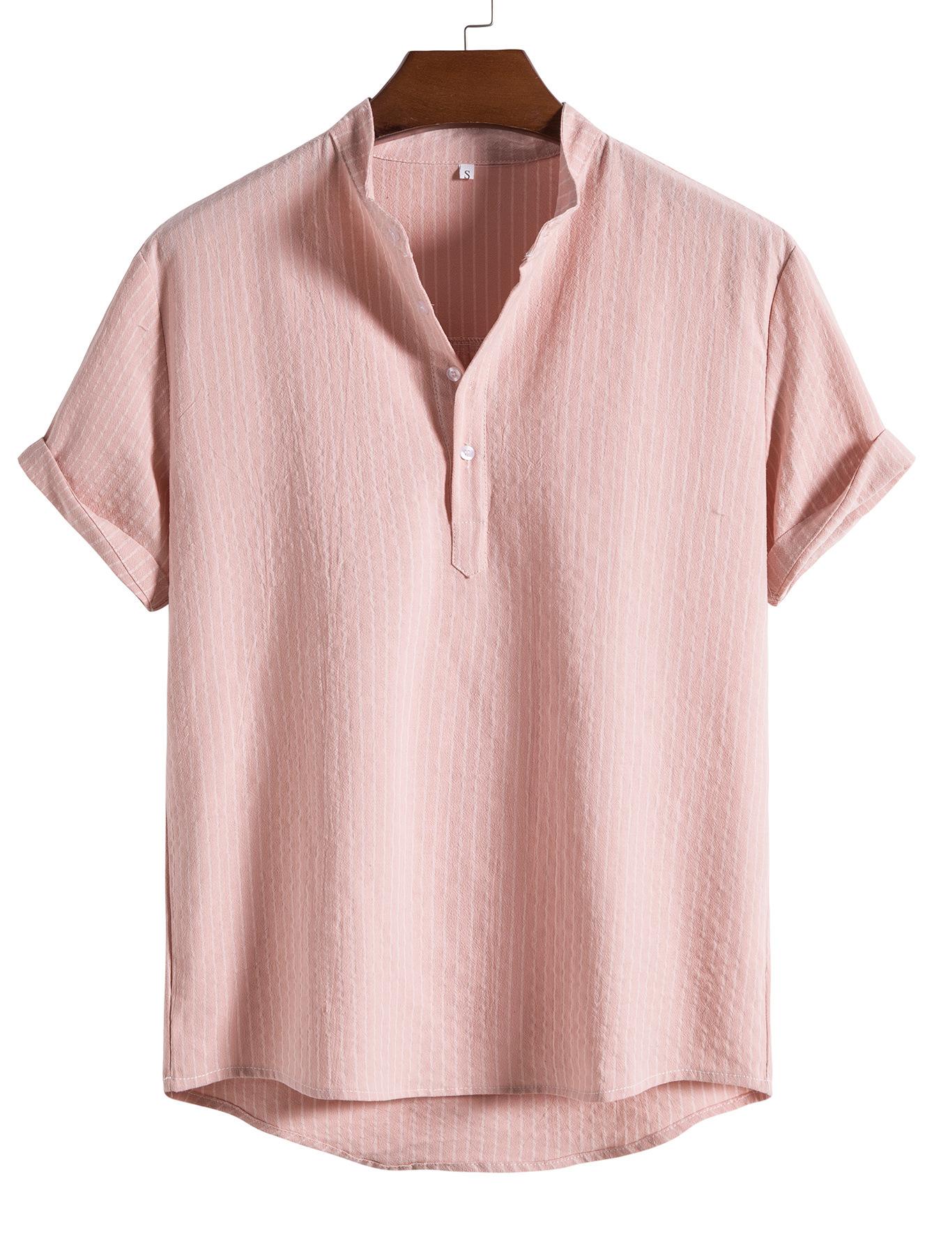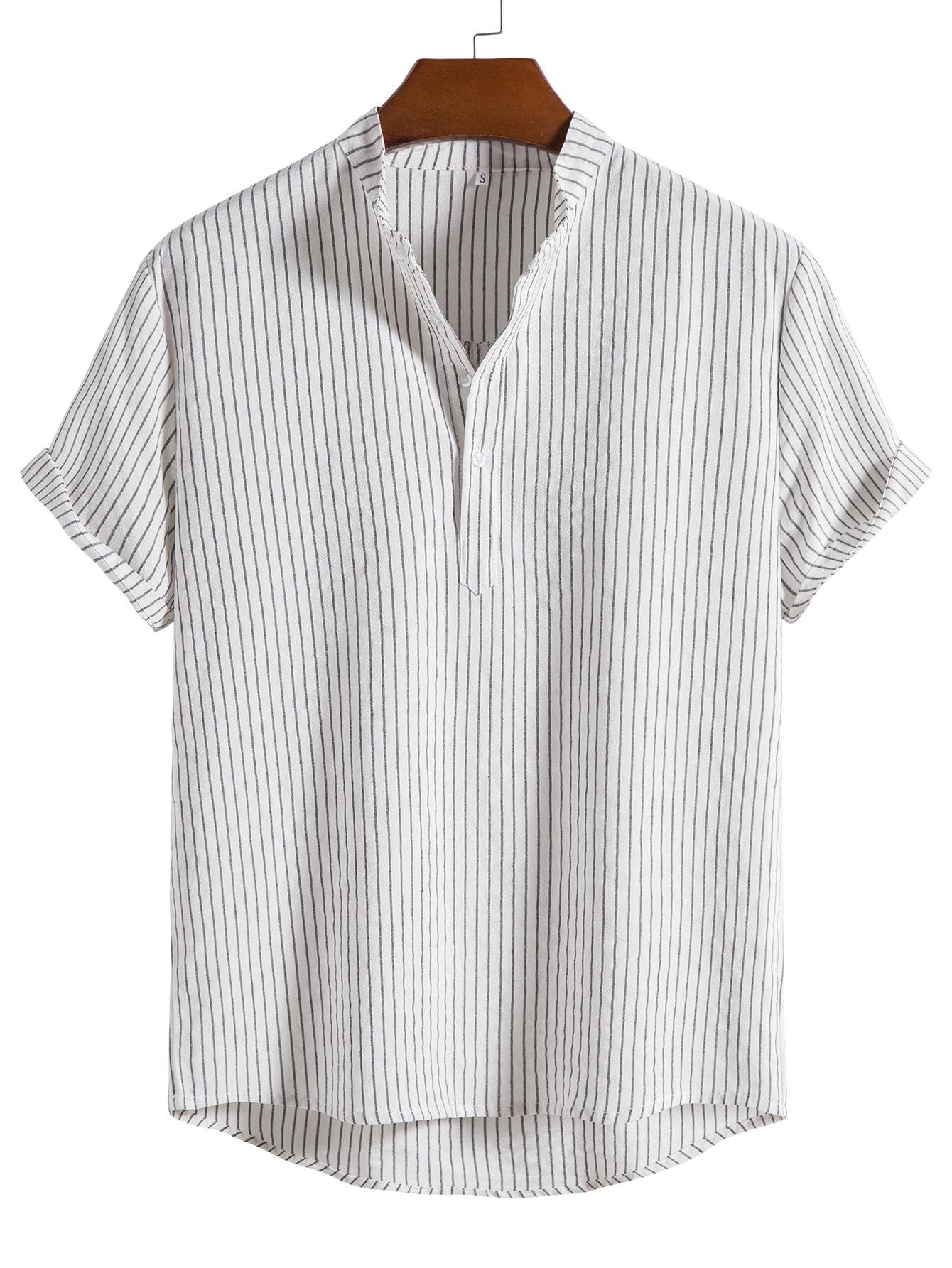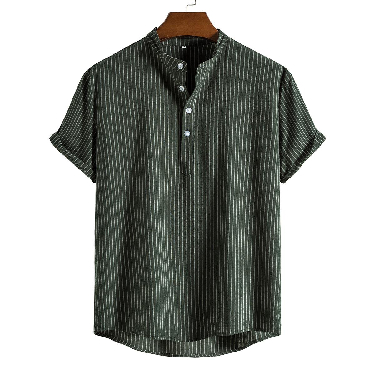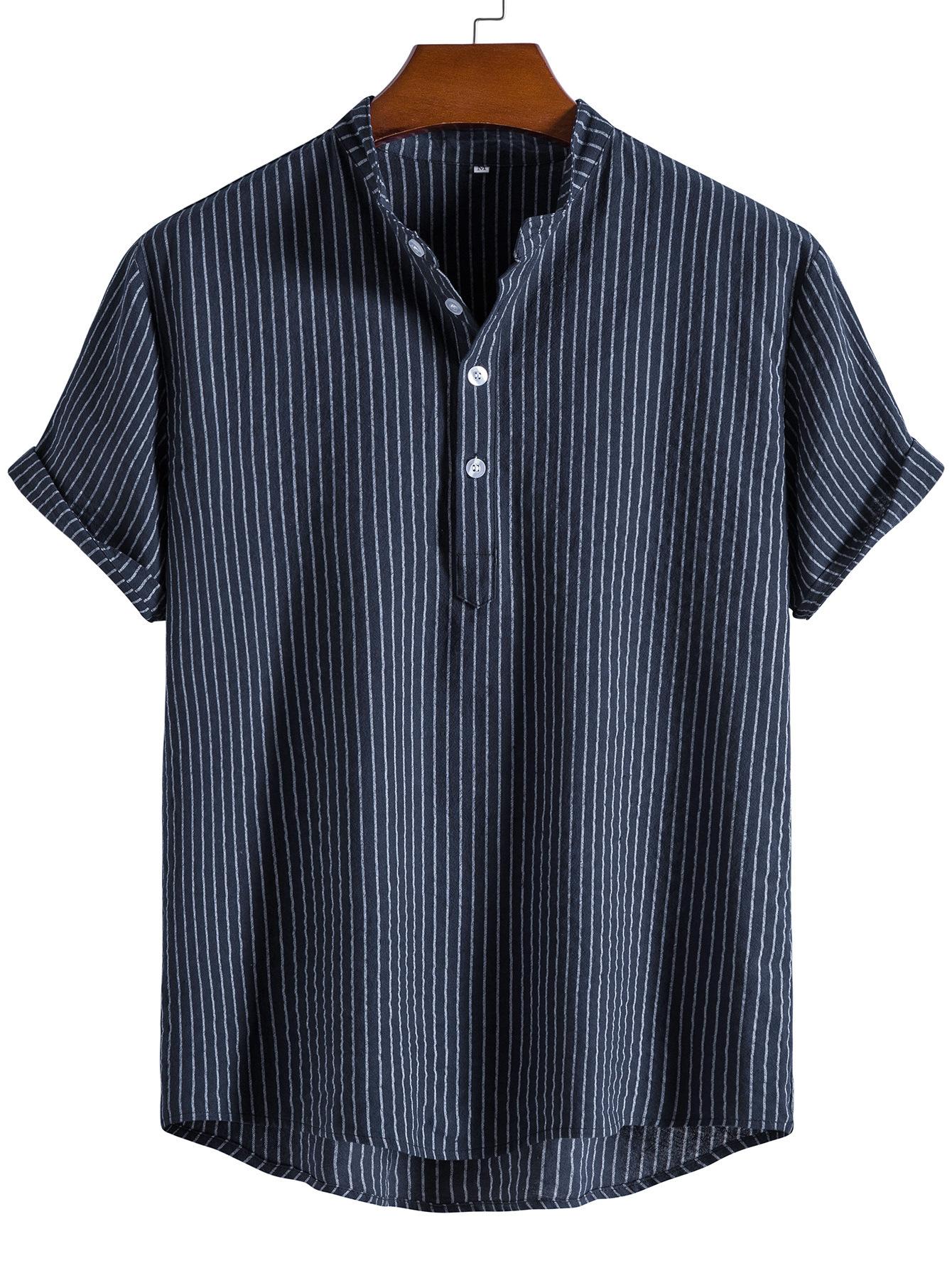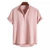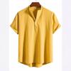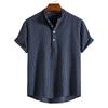 Camisa de verano para hombre de AliExpress Amazon, talla grande, de algodón y lino, cuello vertical, manga corta, comercio exterior.