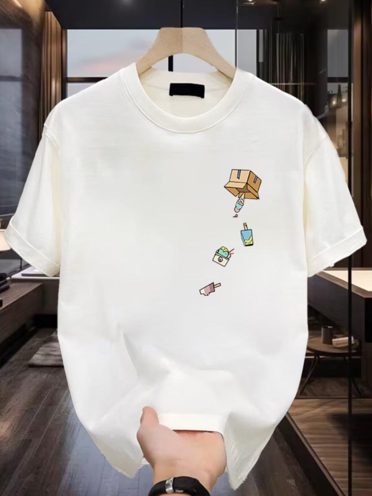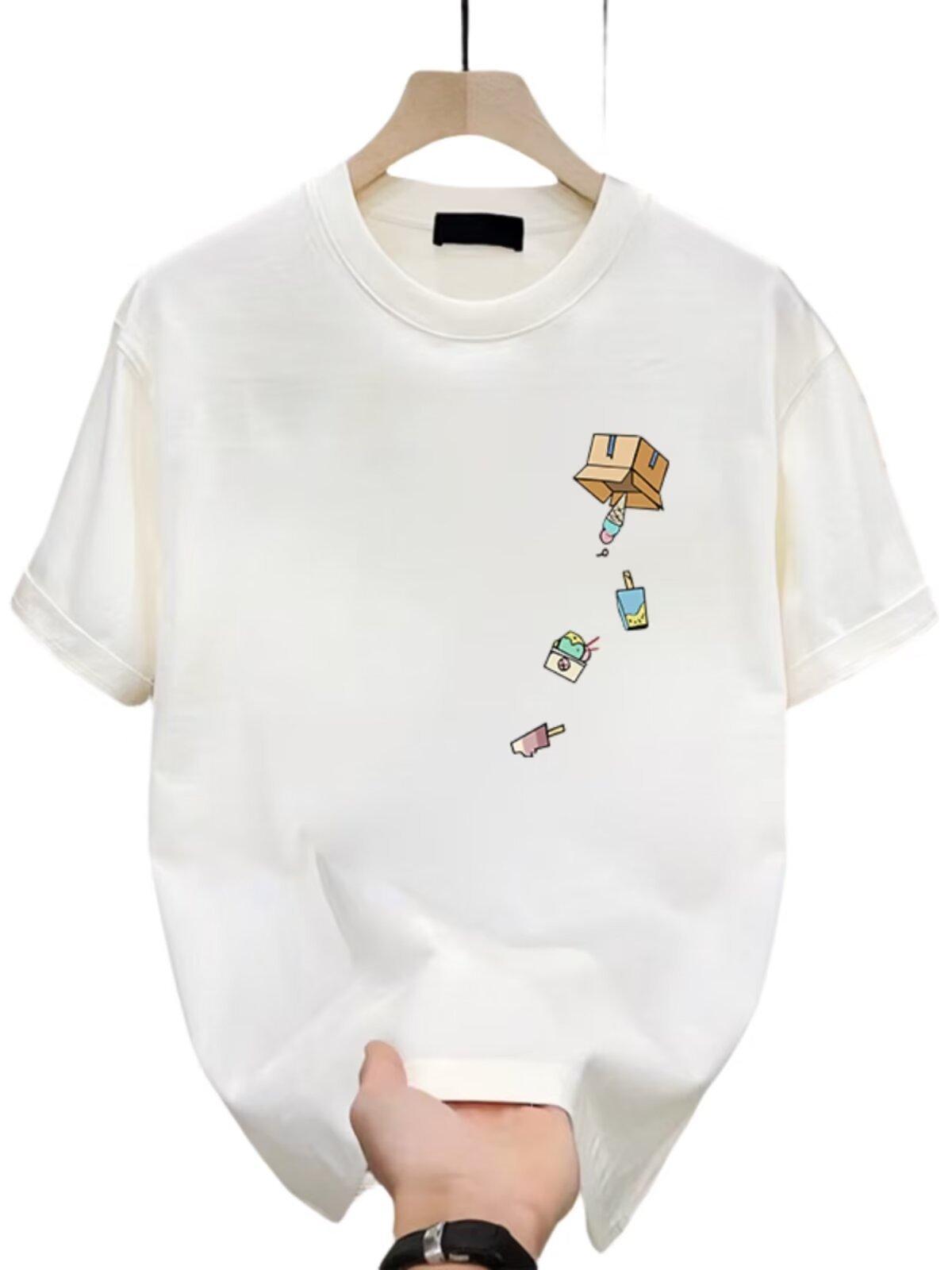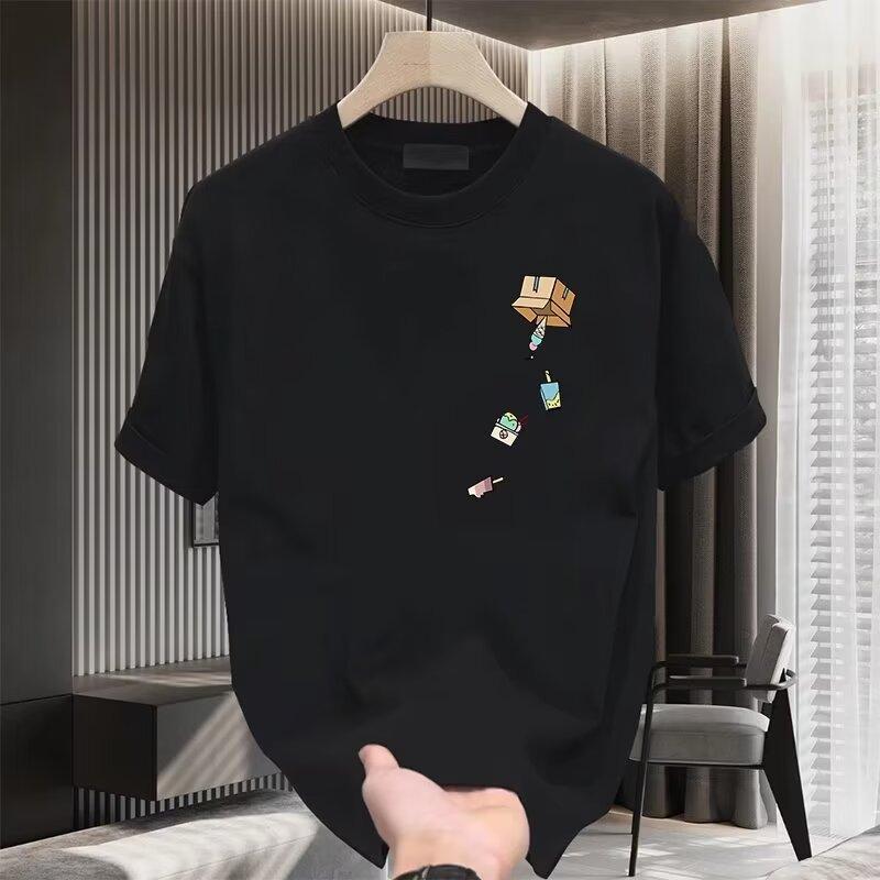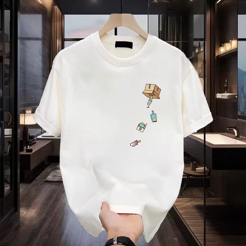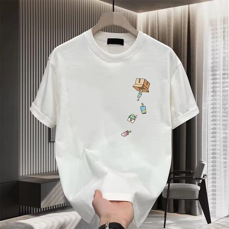 Camiseta de manga corta estampada de algodón para hombre, estilo Hong Kong, nueva, de verano, de marca de moda, combina con todo, holgada, para parejas, 2024