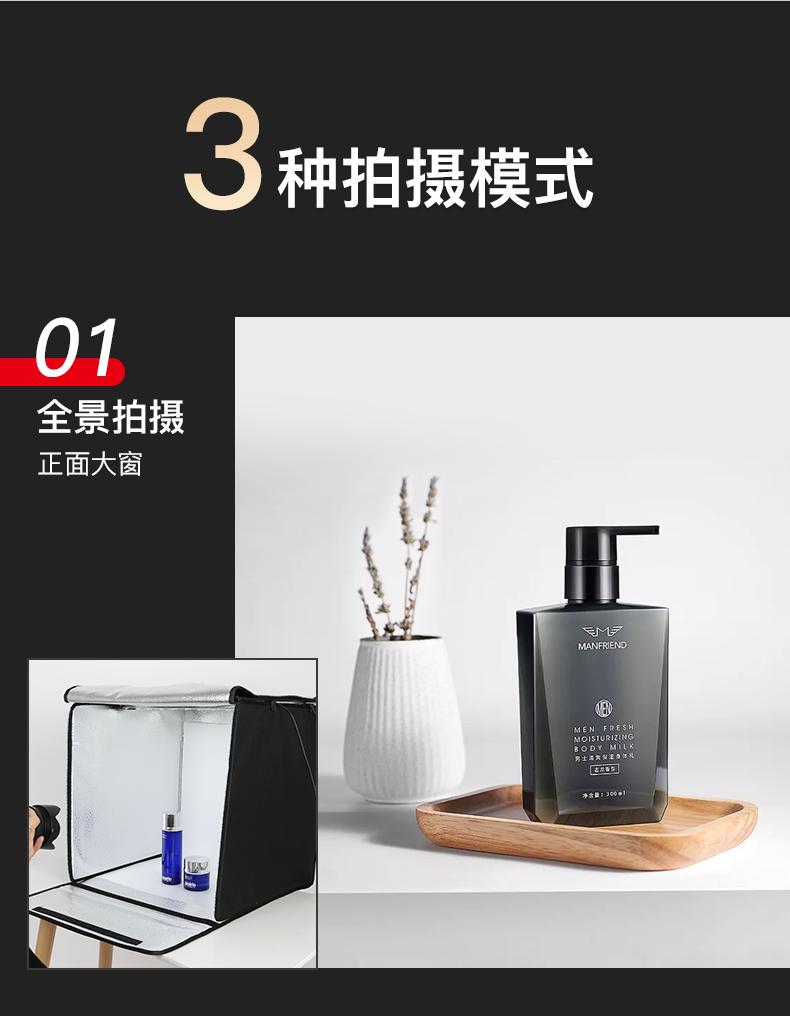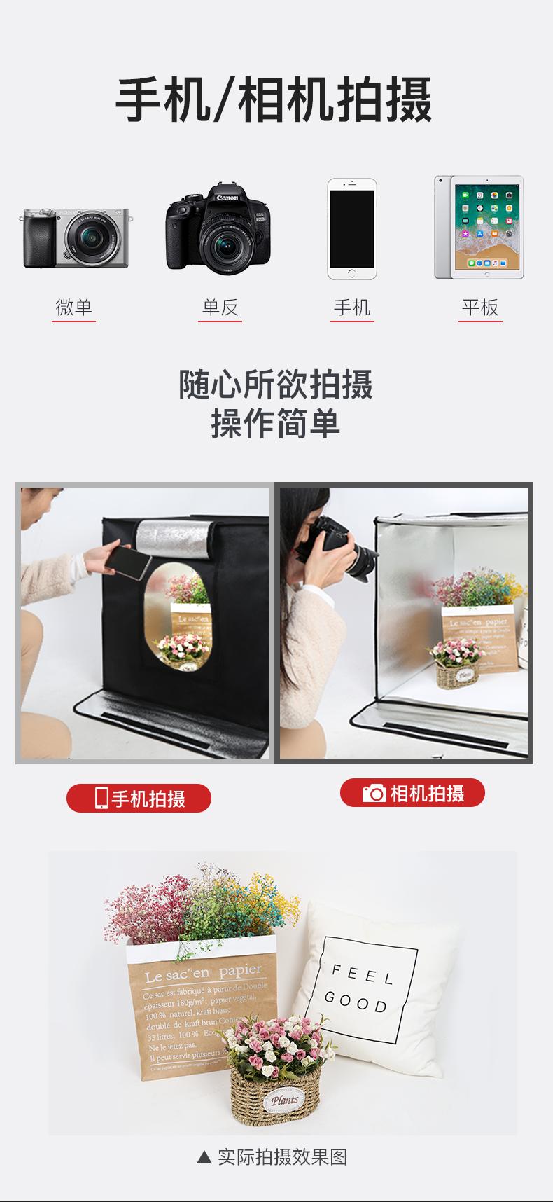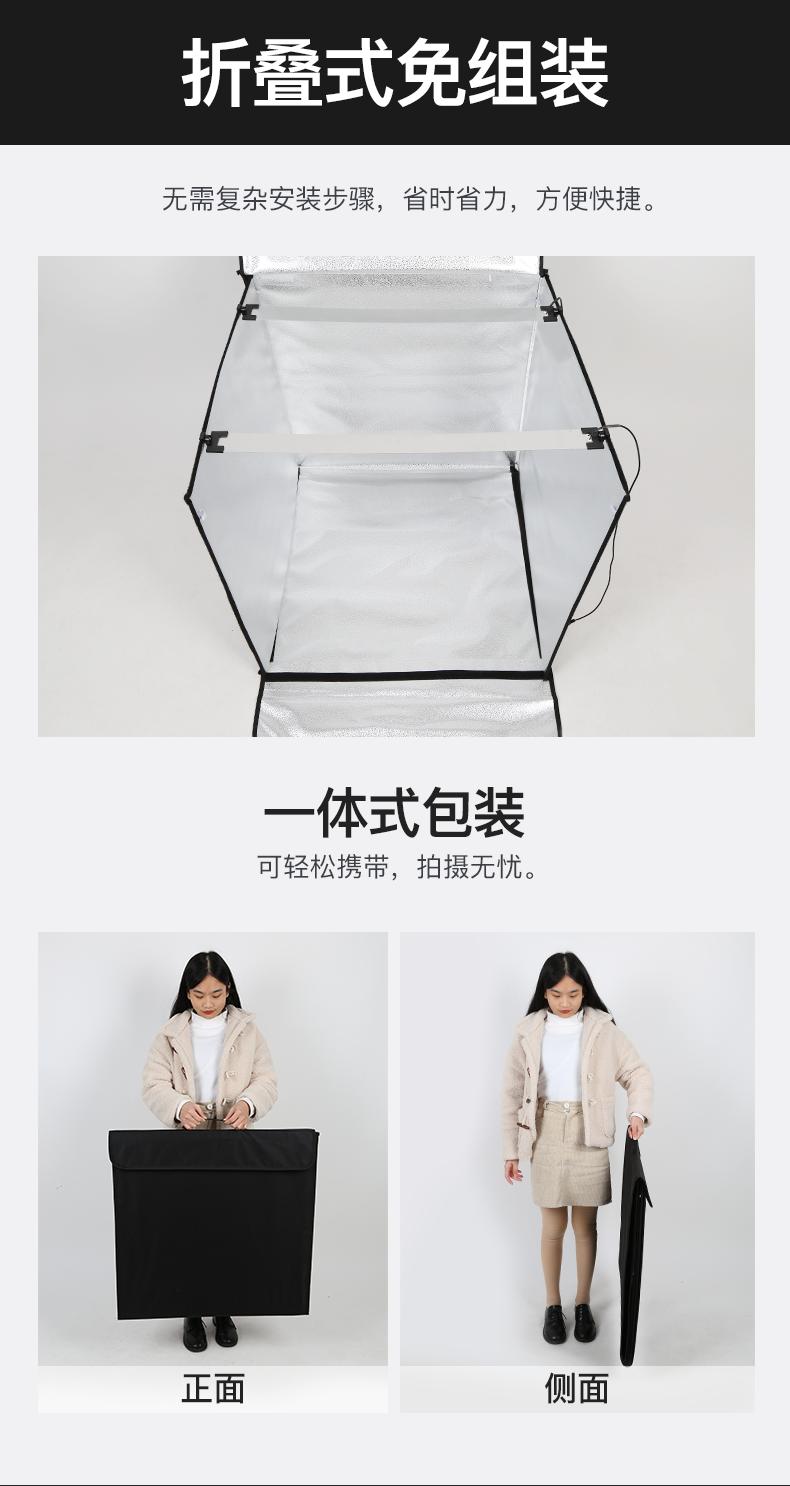 Parámetros del producto:Cabina*1, tablero de luz*2, adaptador*1, atenuador*1, tablero de fondo*5, tela de luz suave*1