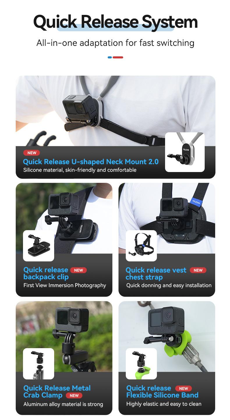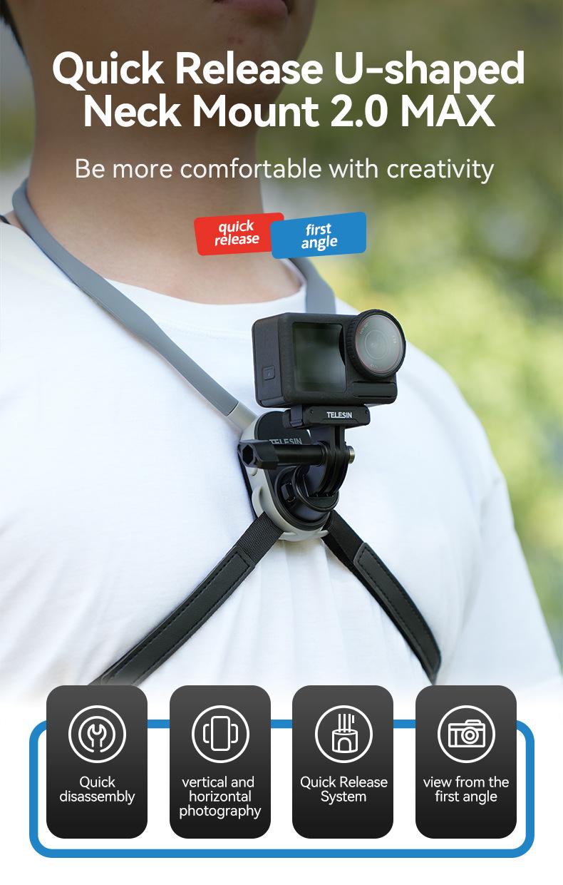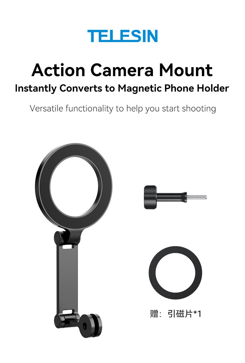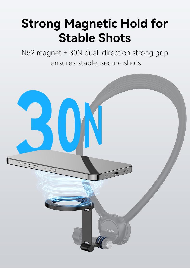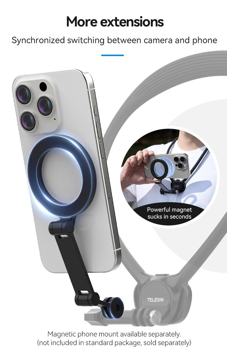 Soporte magnético de liberación rápida para cámara deportiva TELESIN para teléfono móvil, soporte para cuello, perspectiva en primera persona, para grabar vídeos de conducción y VLOG.