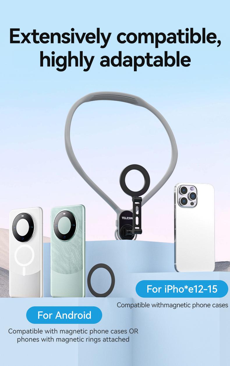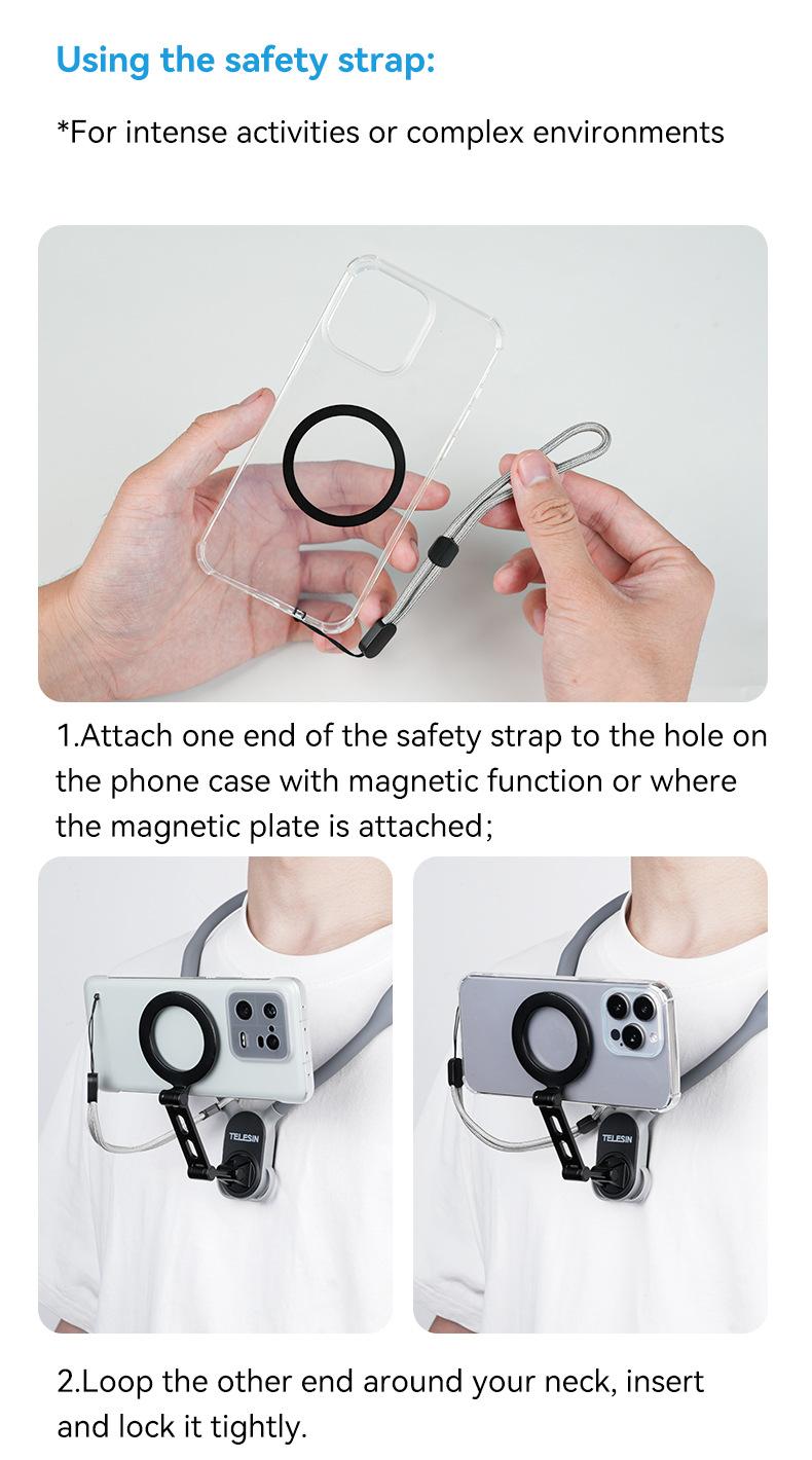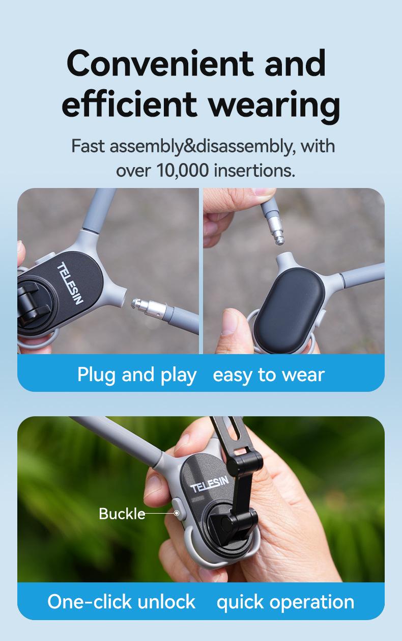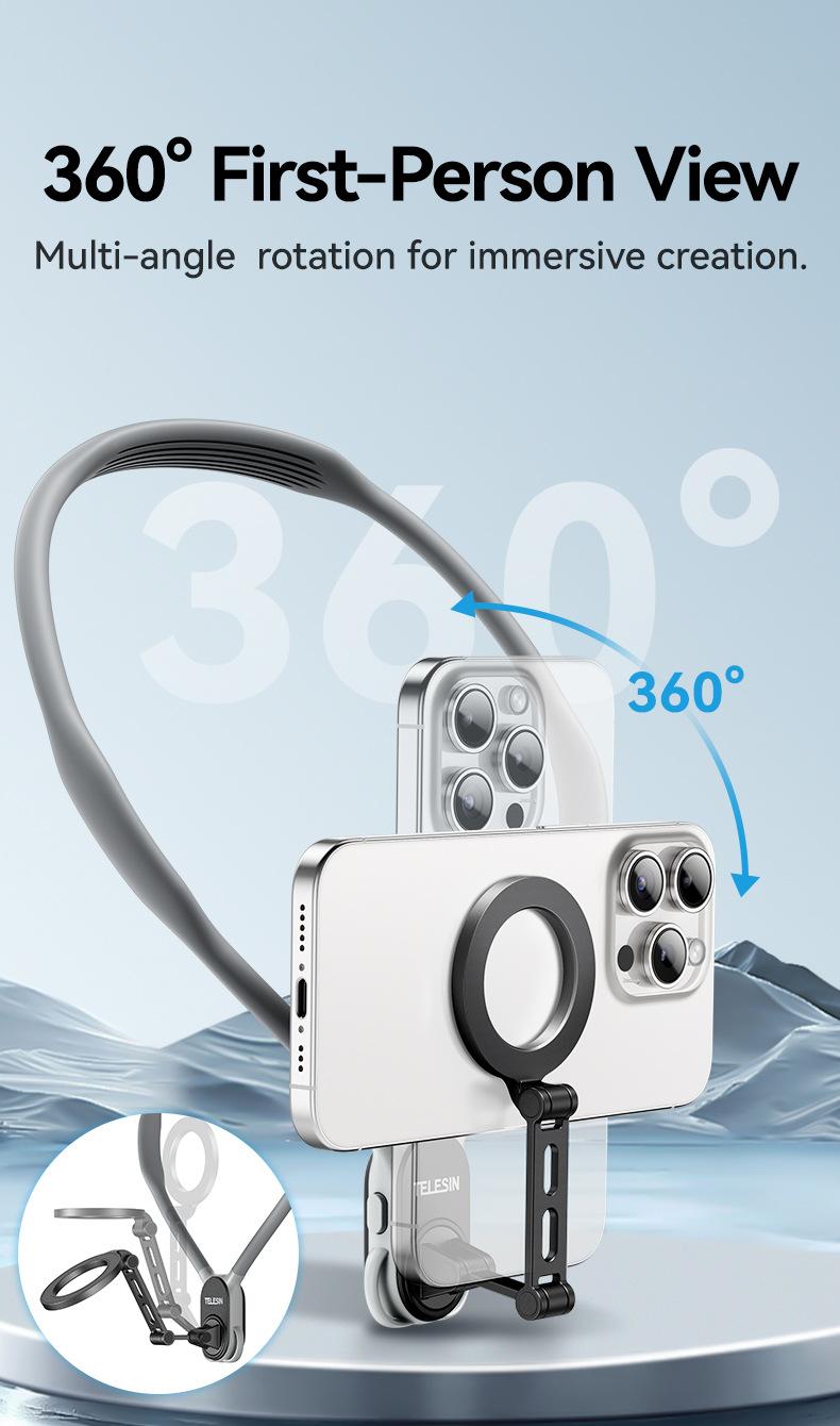 Soporte magnético de liberación rápida para cámara deportiva TELESIN para teléfono móvil, soporte para cuello, perspectiva en primera persona, para grabar vídeos de conducción y VLOG.