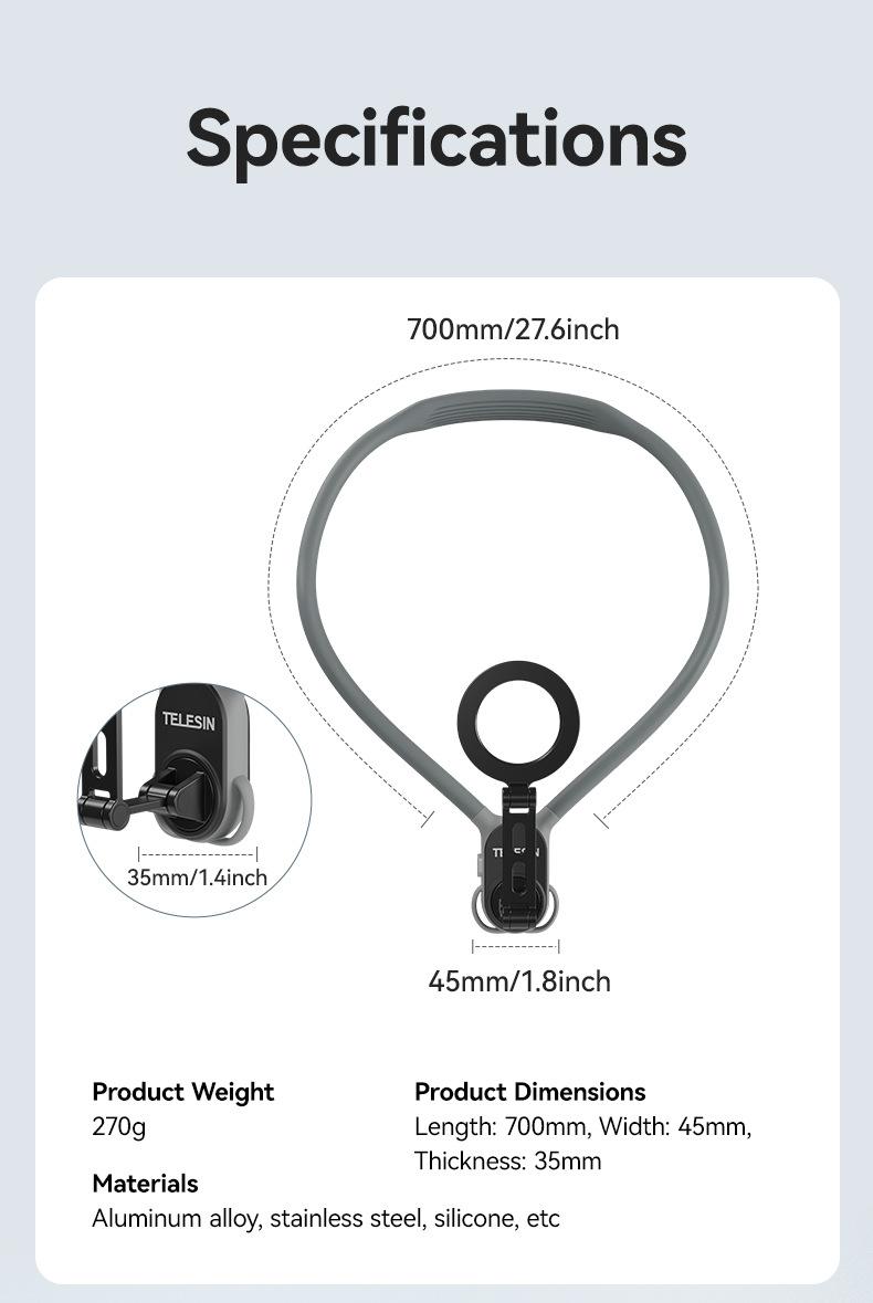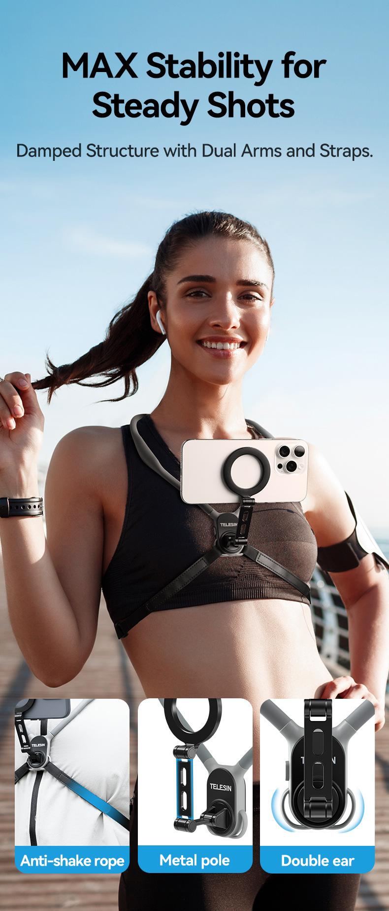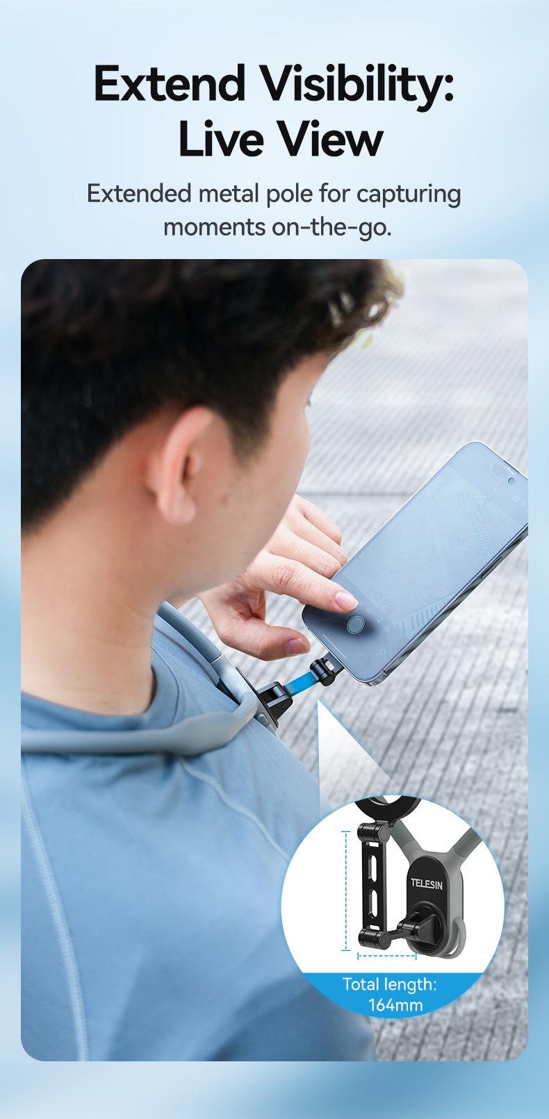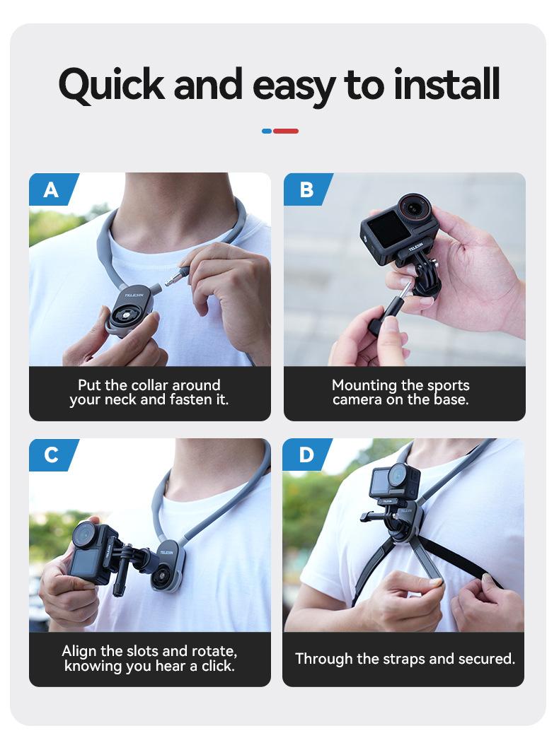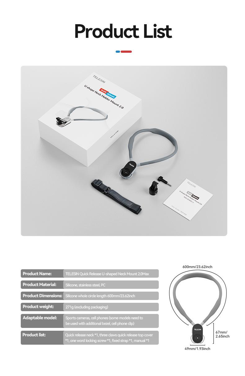 Soporte magnético de liberación rápida para cámara deportiva TELESIN para teléfono móvil, soporte para cuello, perspectiva en primera persona, para grabar vídeos de conducción y VLOG.
