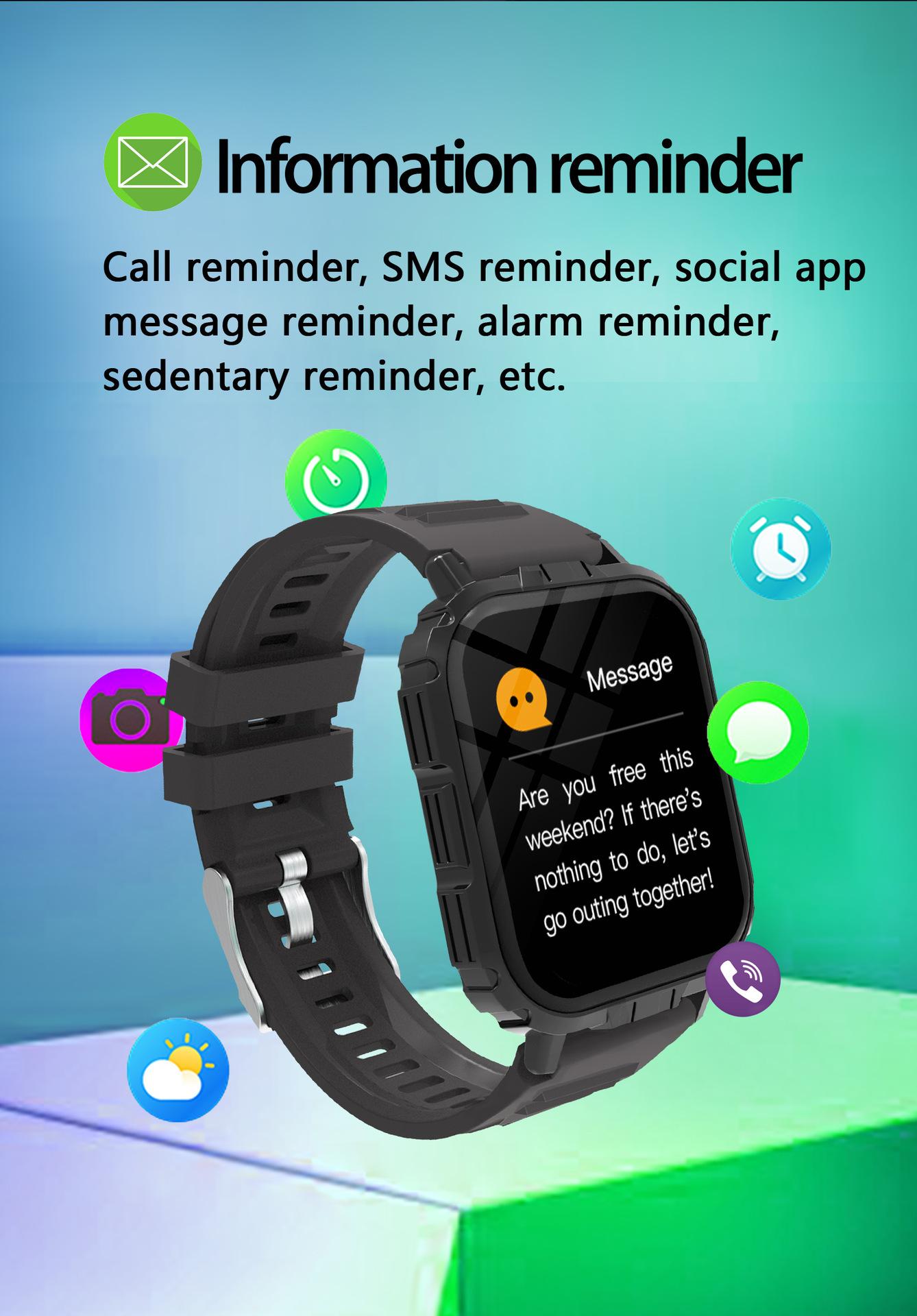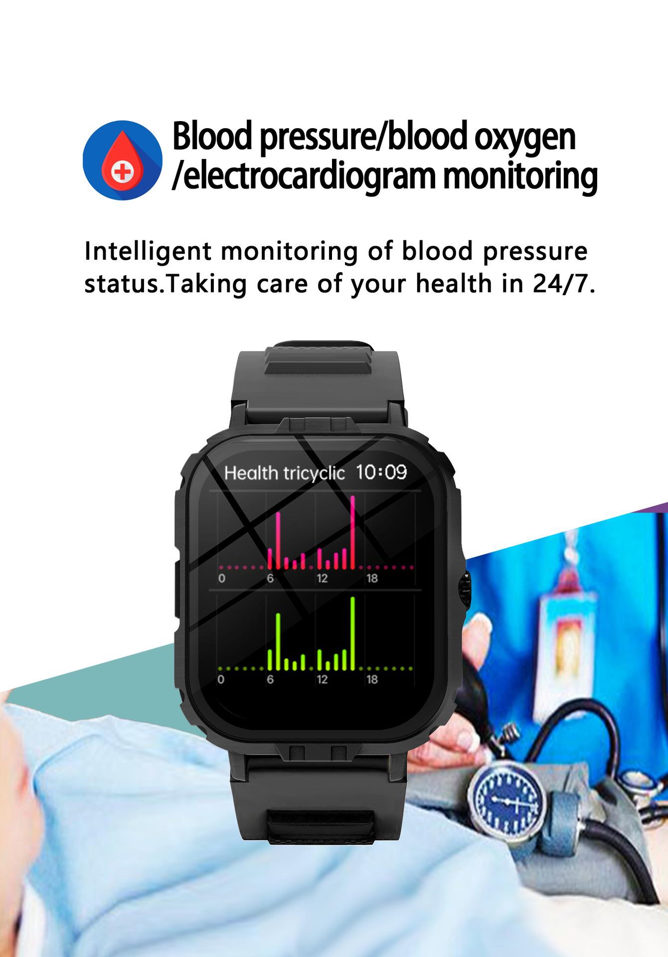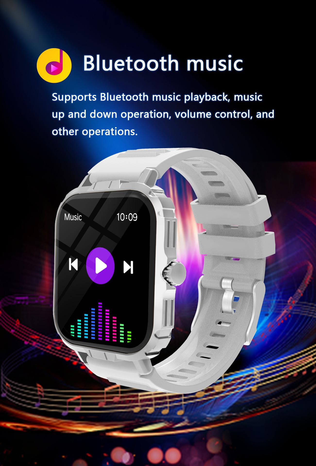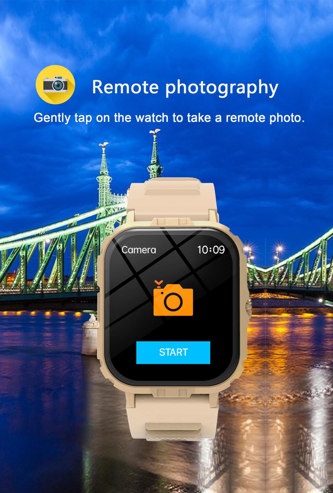 Take photos, Step counting, Heart rate monitoring, Blood pressure measurement, Social entertainment, Bluetooth...
