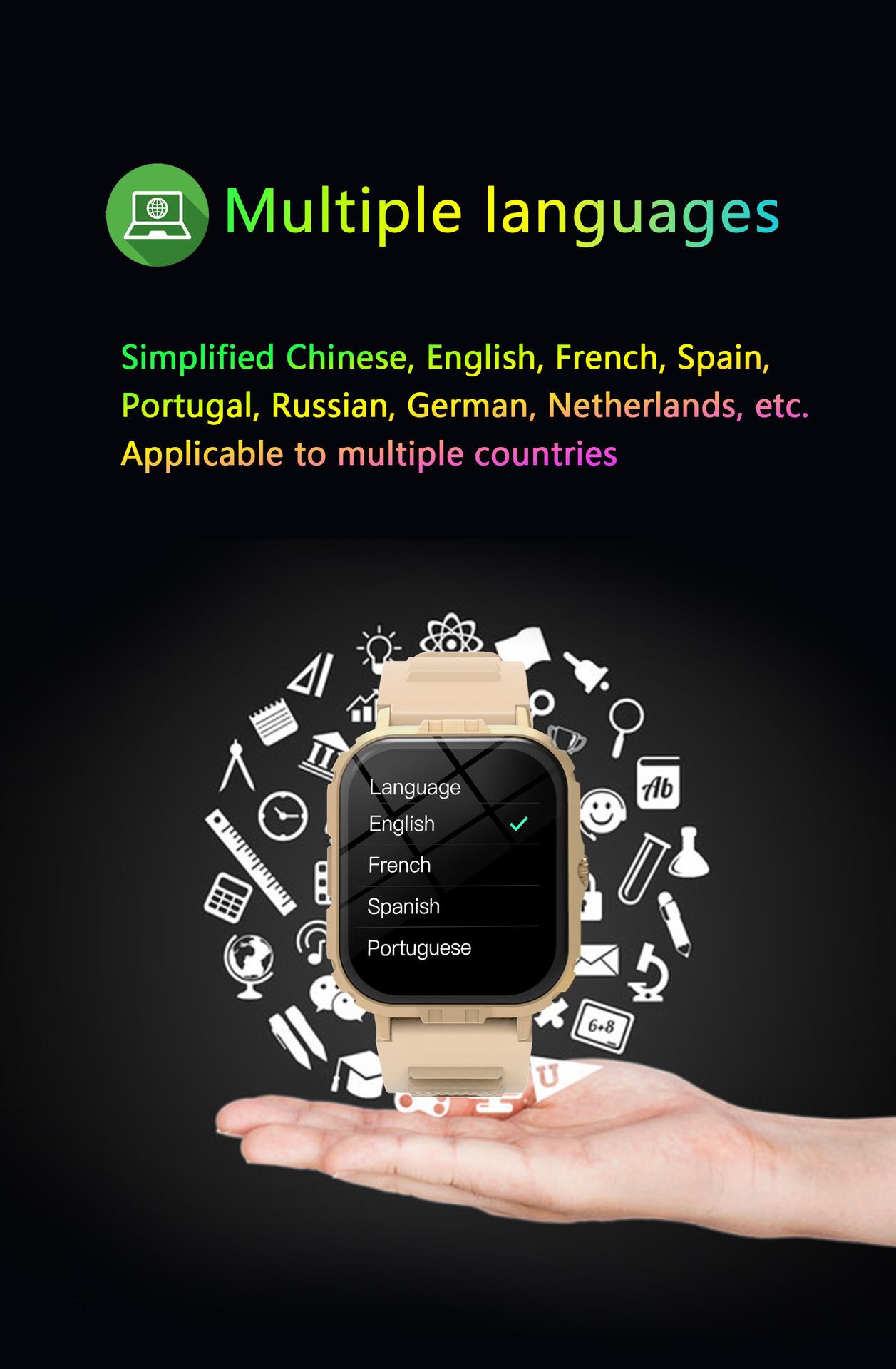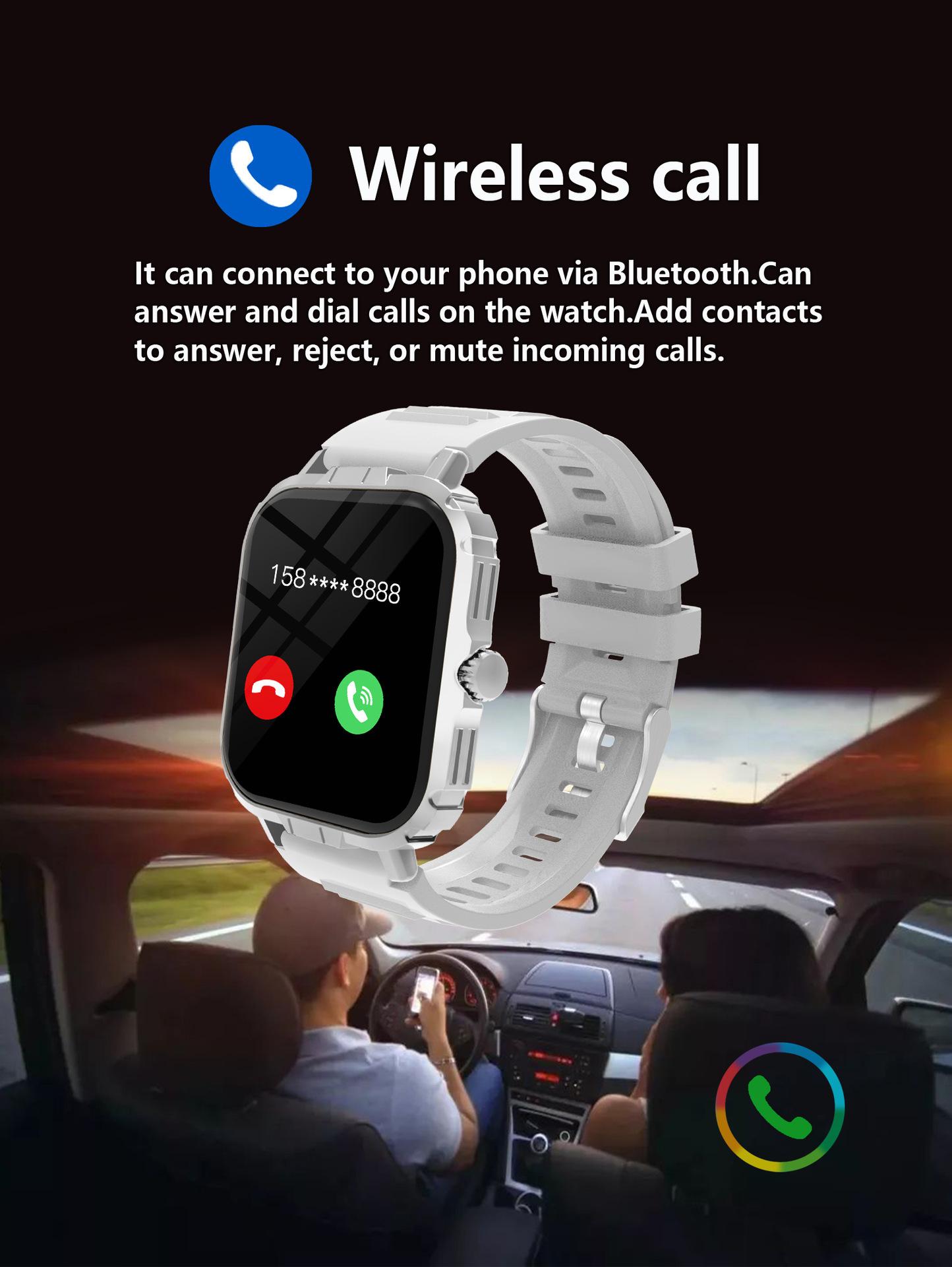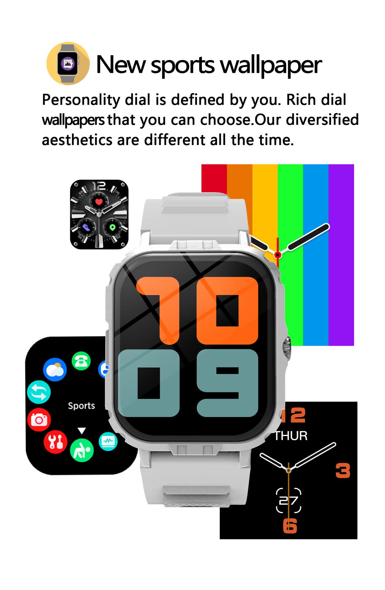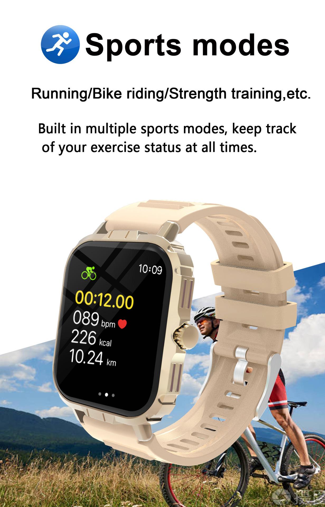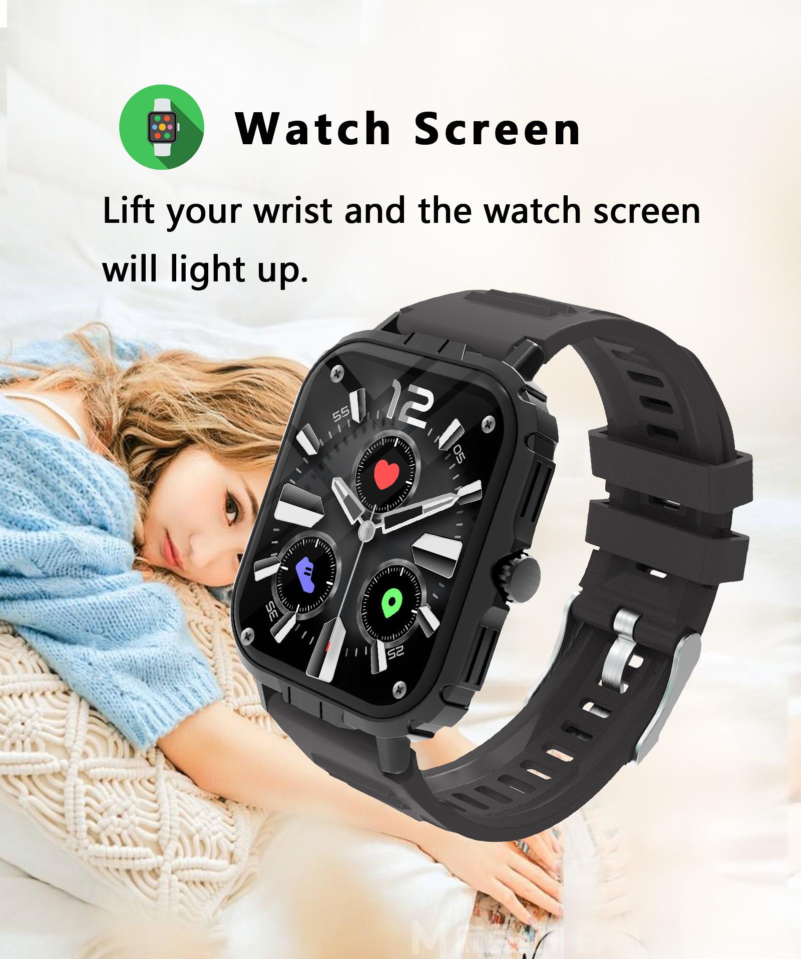 Take photos, Step counting, Heart rate monitoring, Blood pressure measurement, Social entertainment, Bluetooth...