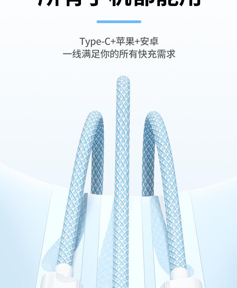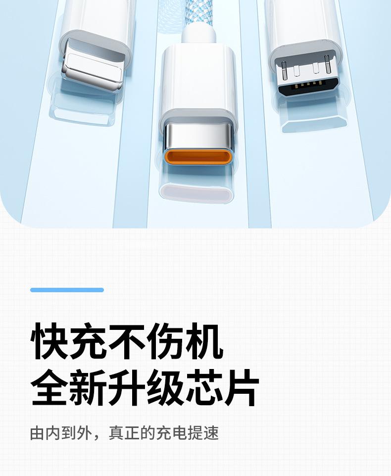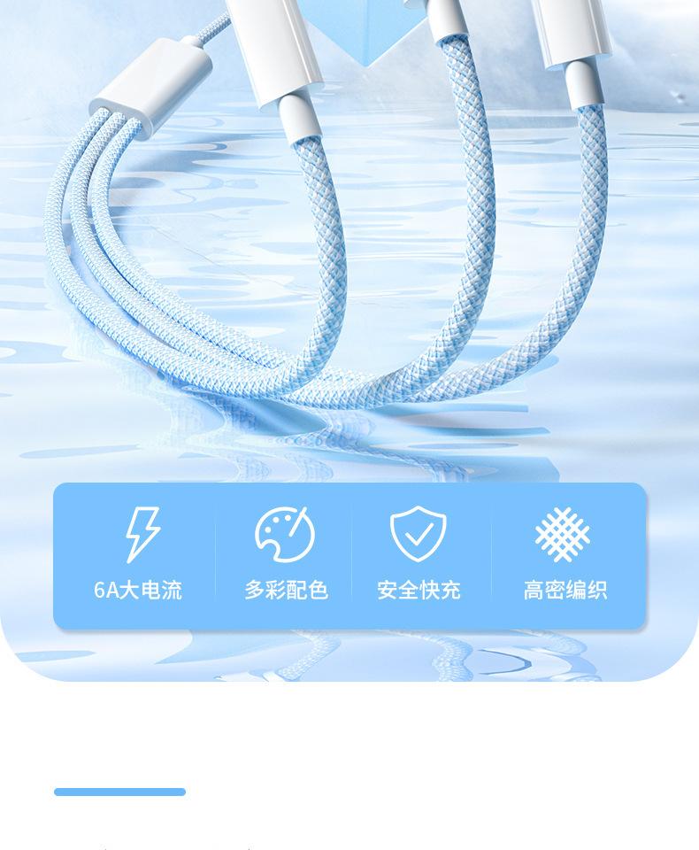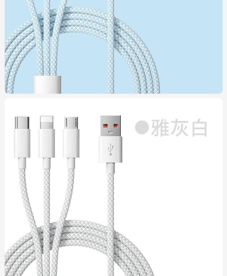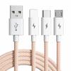 Cable de datos de carga rápida de 66 W de tejido uno a tres para Apple Android Huawei typec cable de carga para teléfono móvil tres en uno