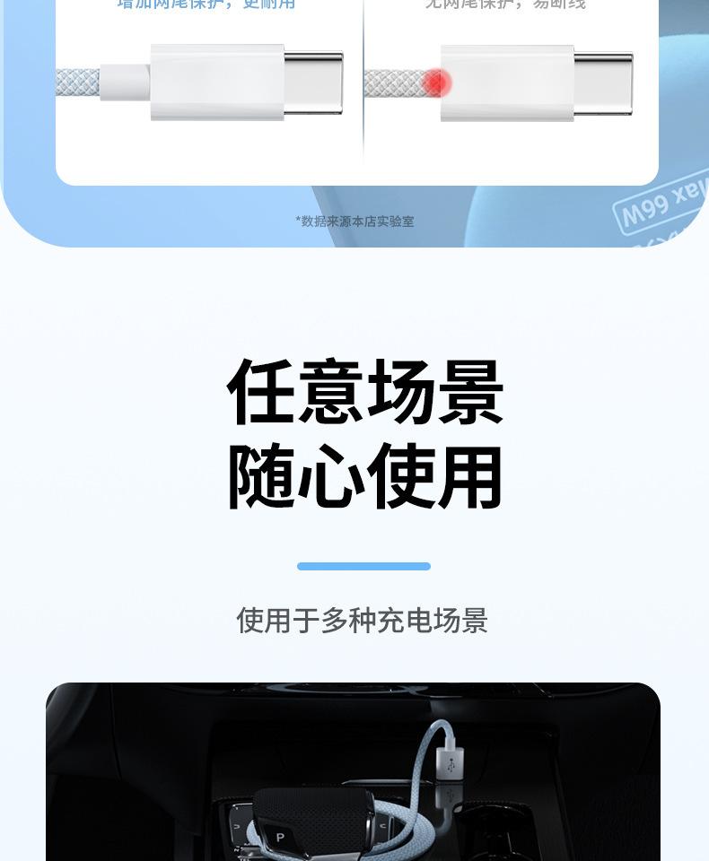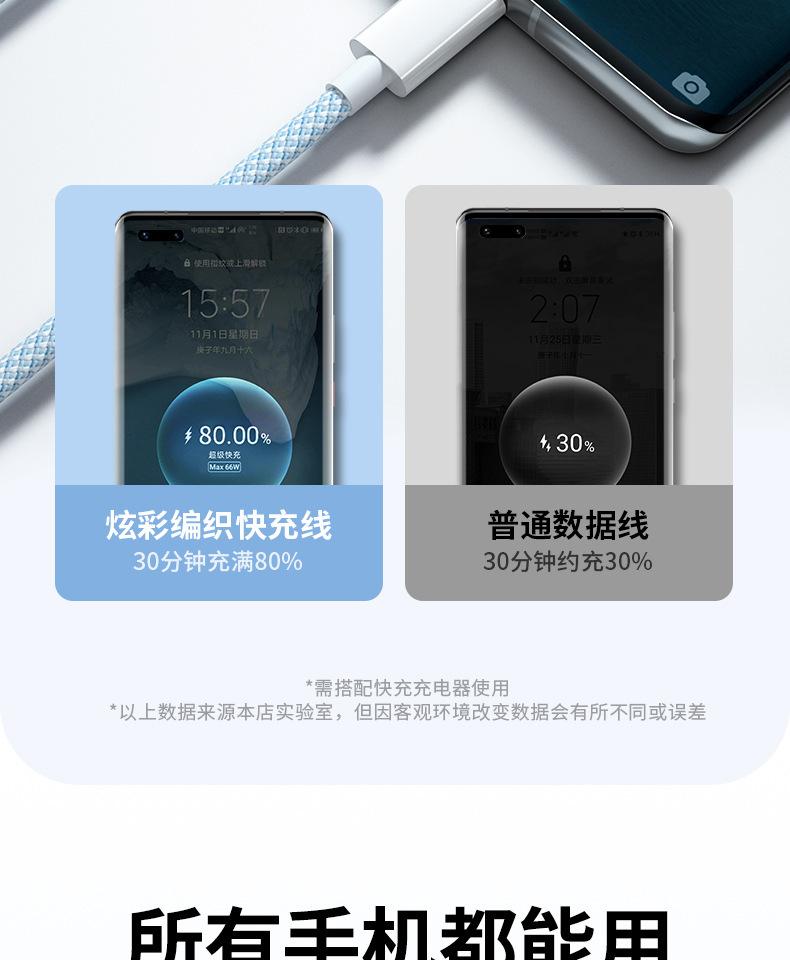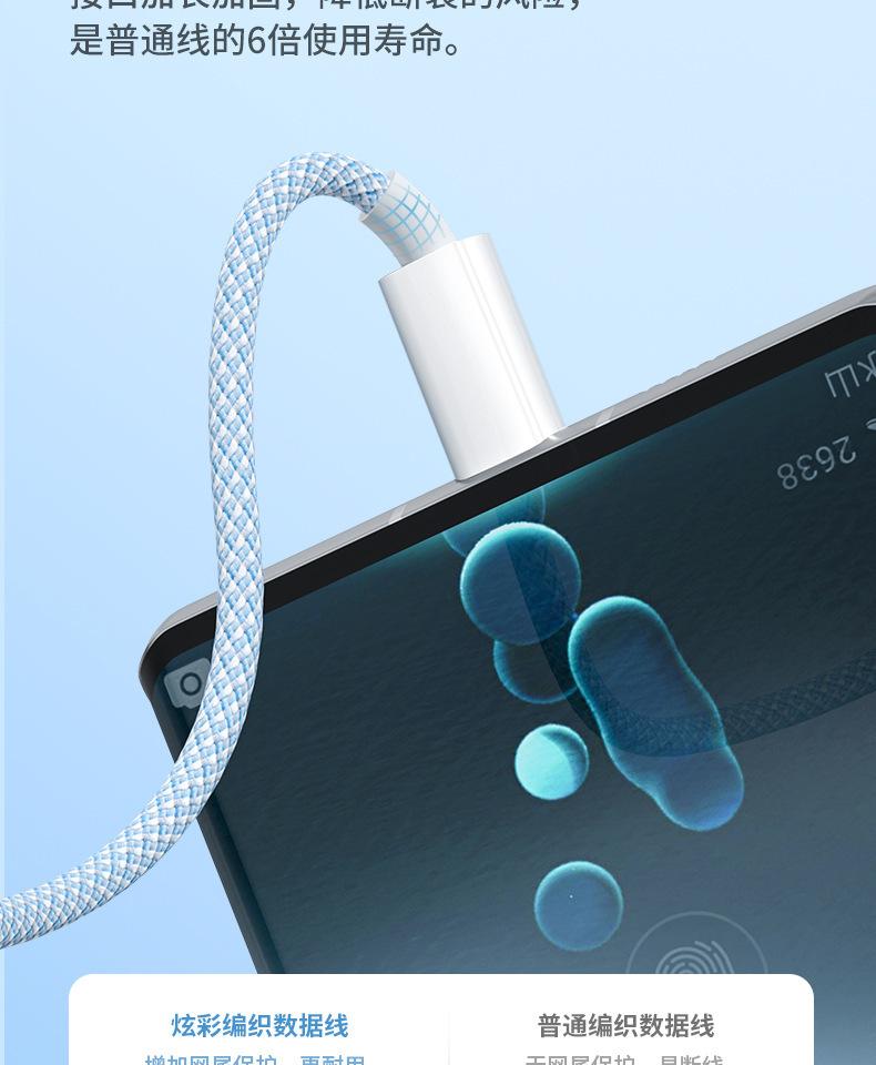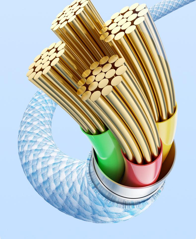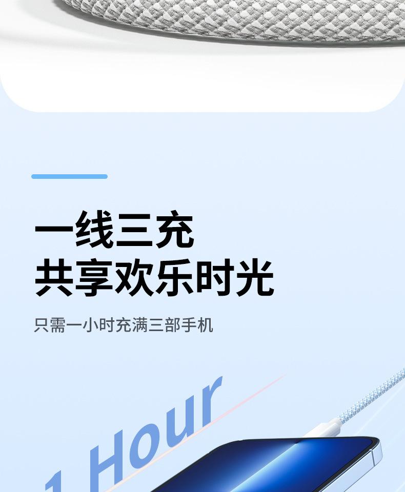 Cable de datos de carga rápida de 66 W de tejido uno a tres para Apple Android Huawei typec cable de carga para teléfono móvil tres en uno