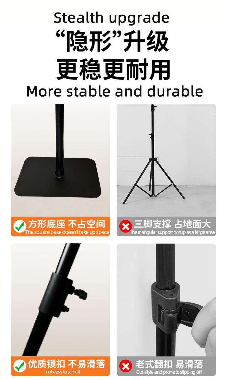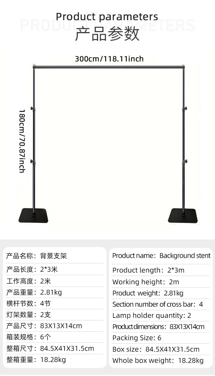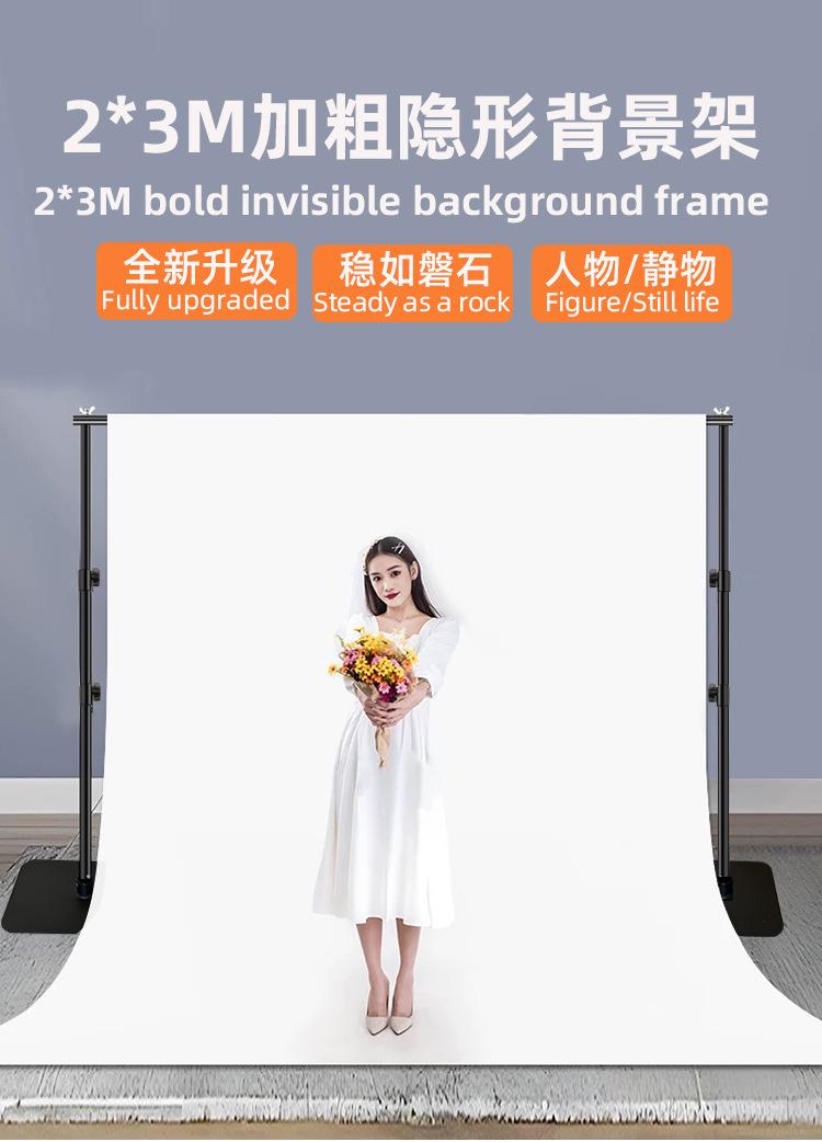 2* 3m Soporte de Fondo de Fotografía Invisible Soporte de Fondo para Grabación en Vivo Soporte con Barra Transversal Telescópica