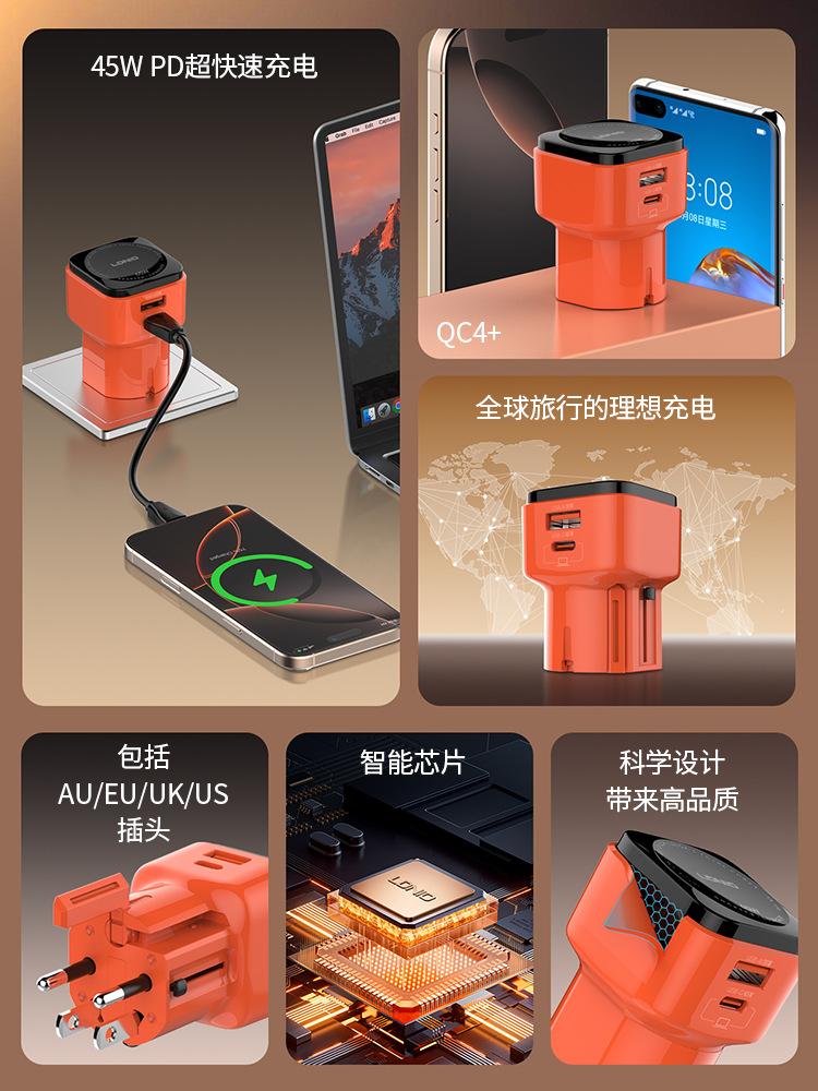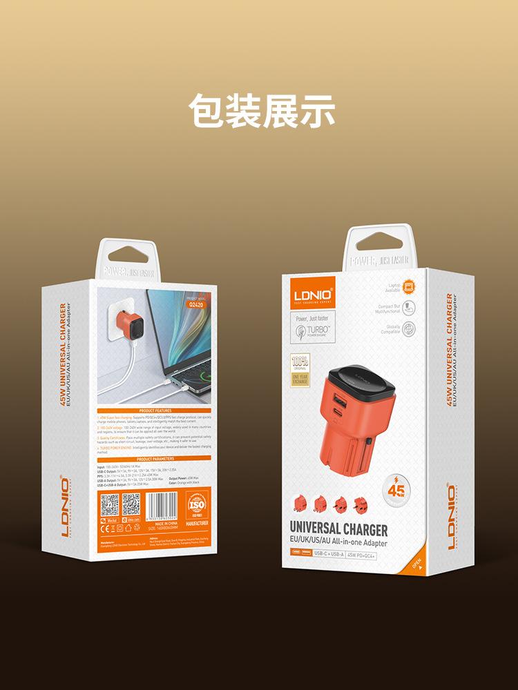 4-in-1 gan charger 30w (grey), 4-in-1 gan charger 45w (orange)