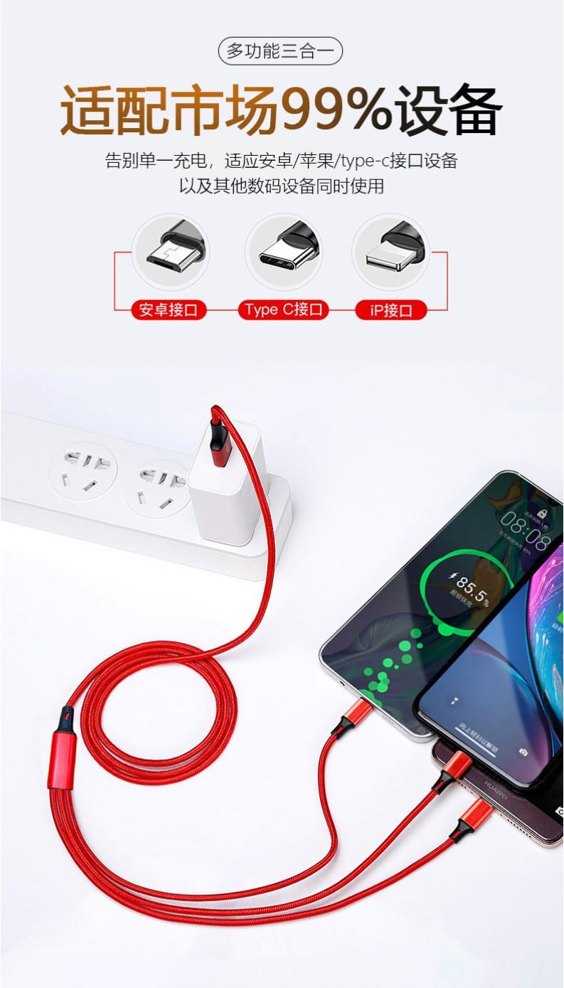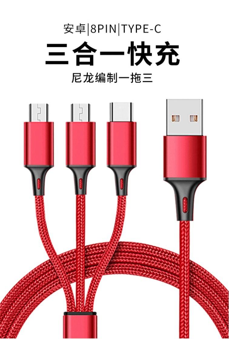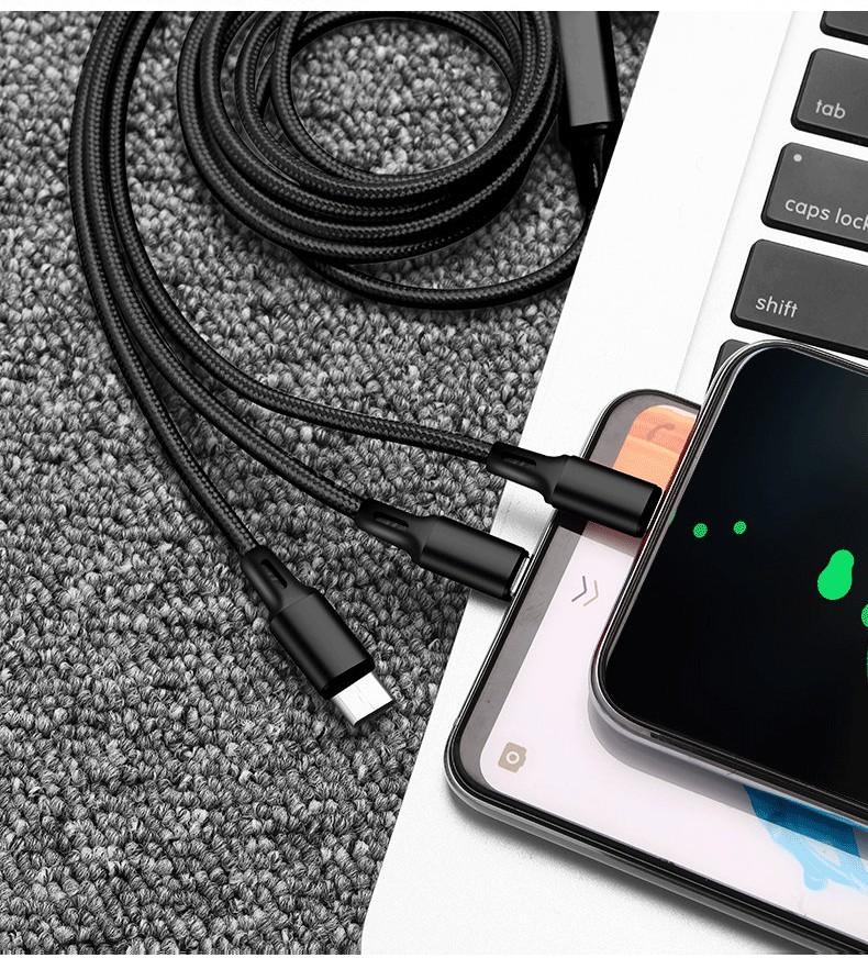 Nombre del producto: Cable de datos tres en uno trenzado de nailon