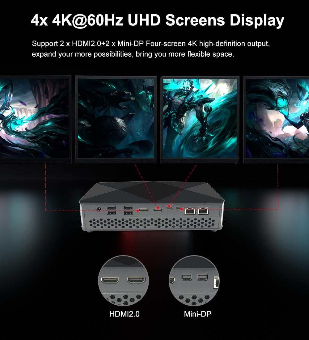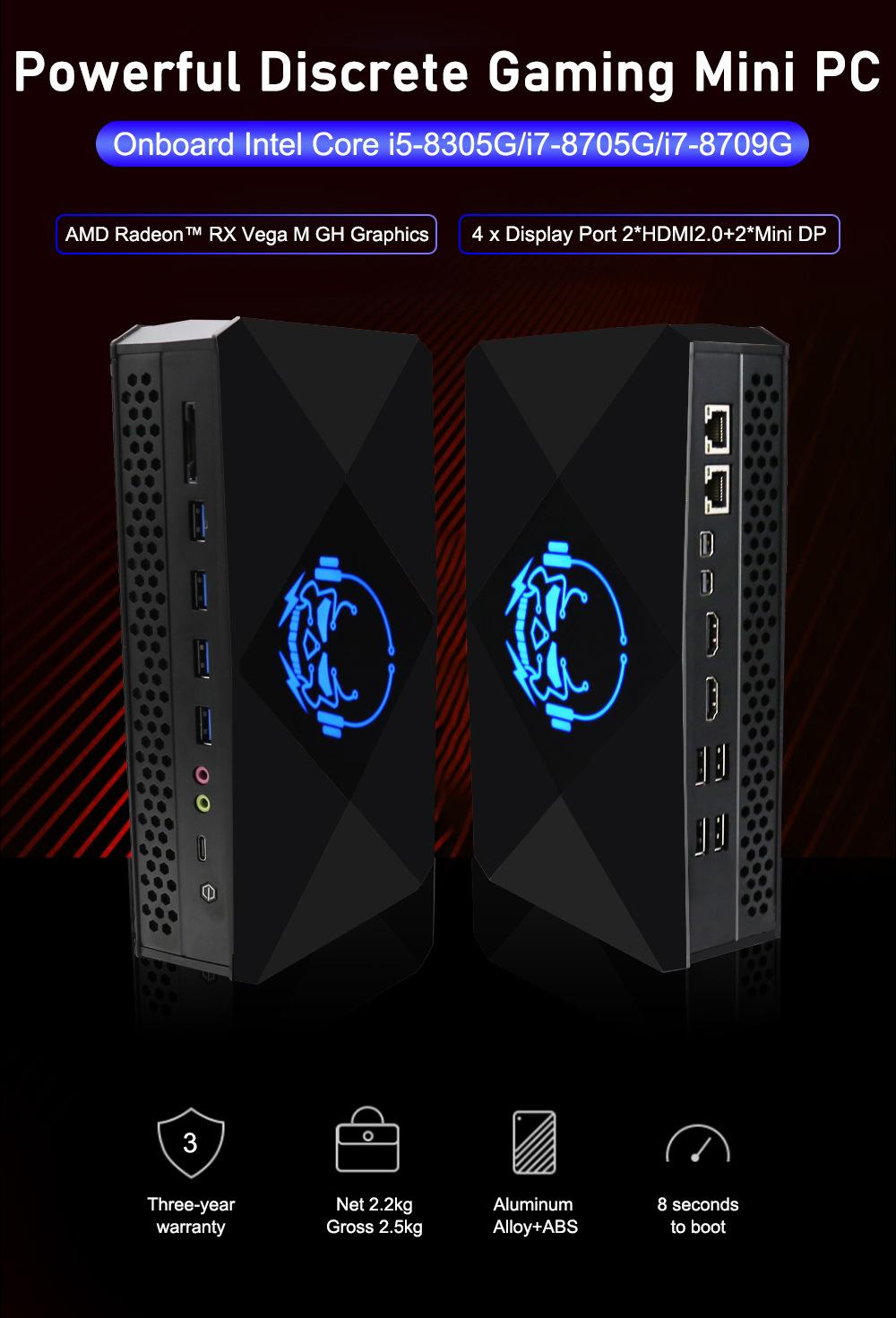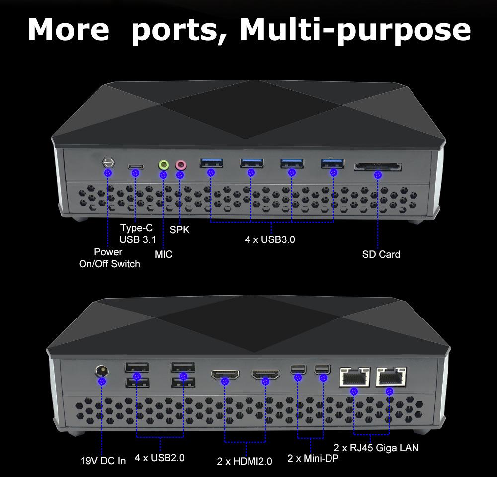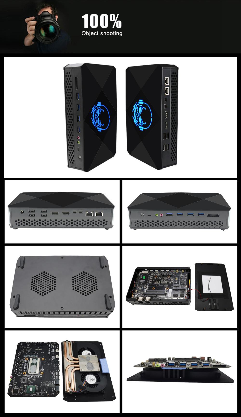 Nueva minicomputadora eléctrica de competición de alto rendimiento Ruilong con diseño gráfico independiente, red dual, 8USB, i5/i7