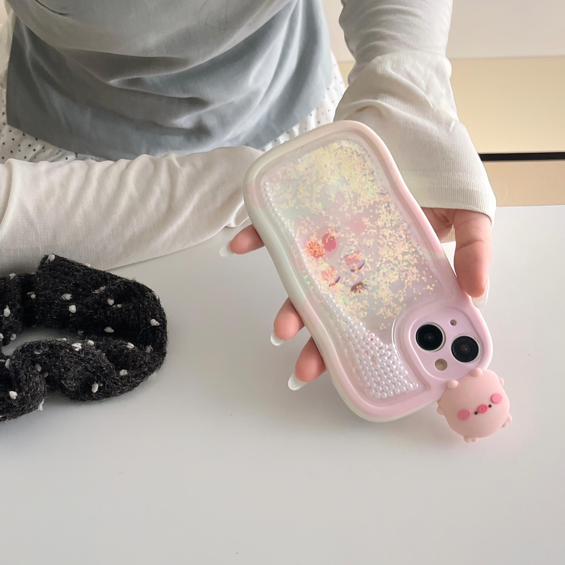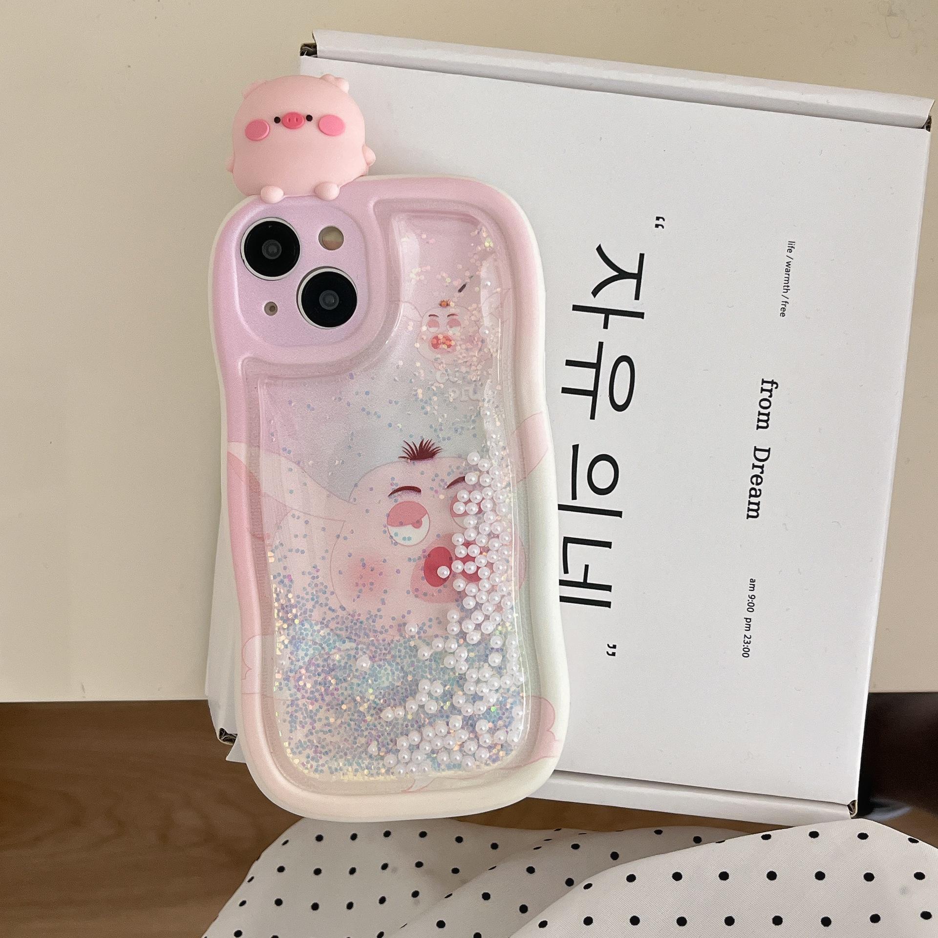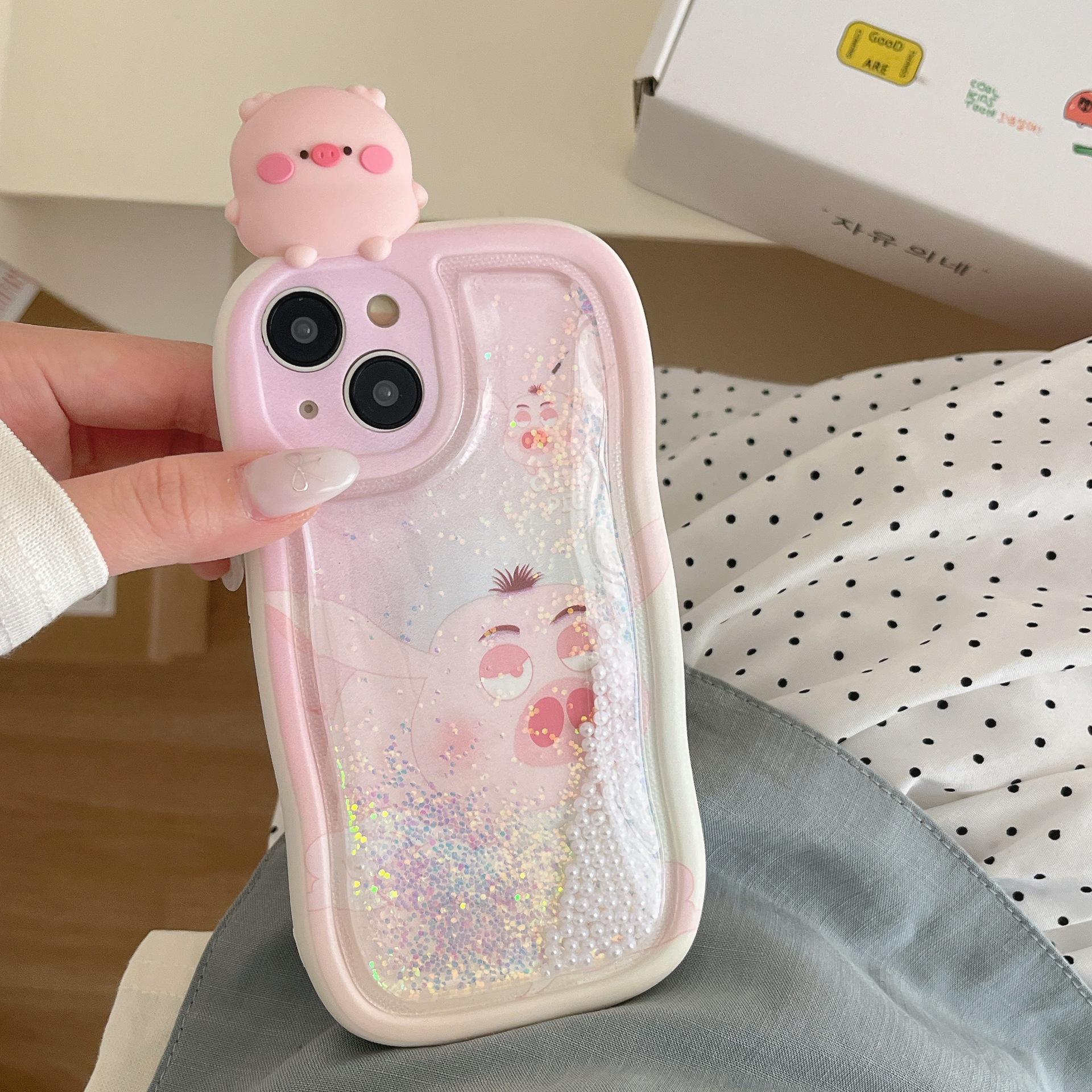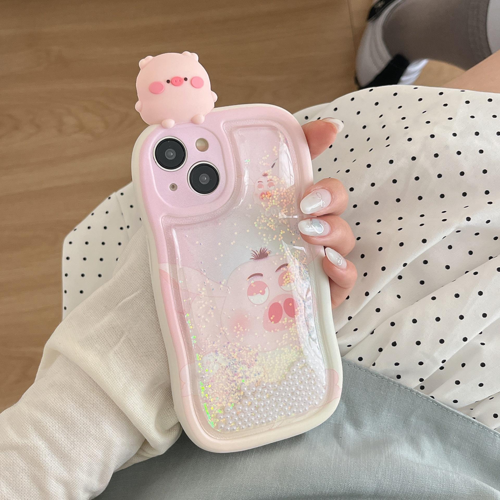 Funda con diseño de cerdito de arena movediza para Apple Pro Max de 16 pulgadas, anticaídas para iPhone 15, 14 pulgadas, bonita, 13/12/11
