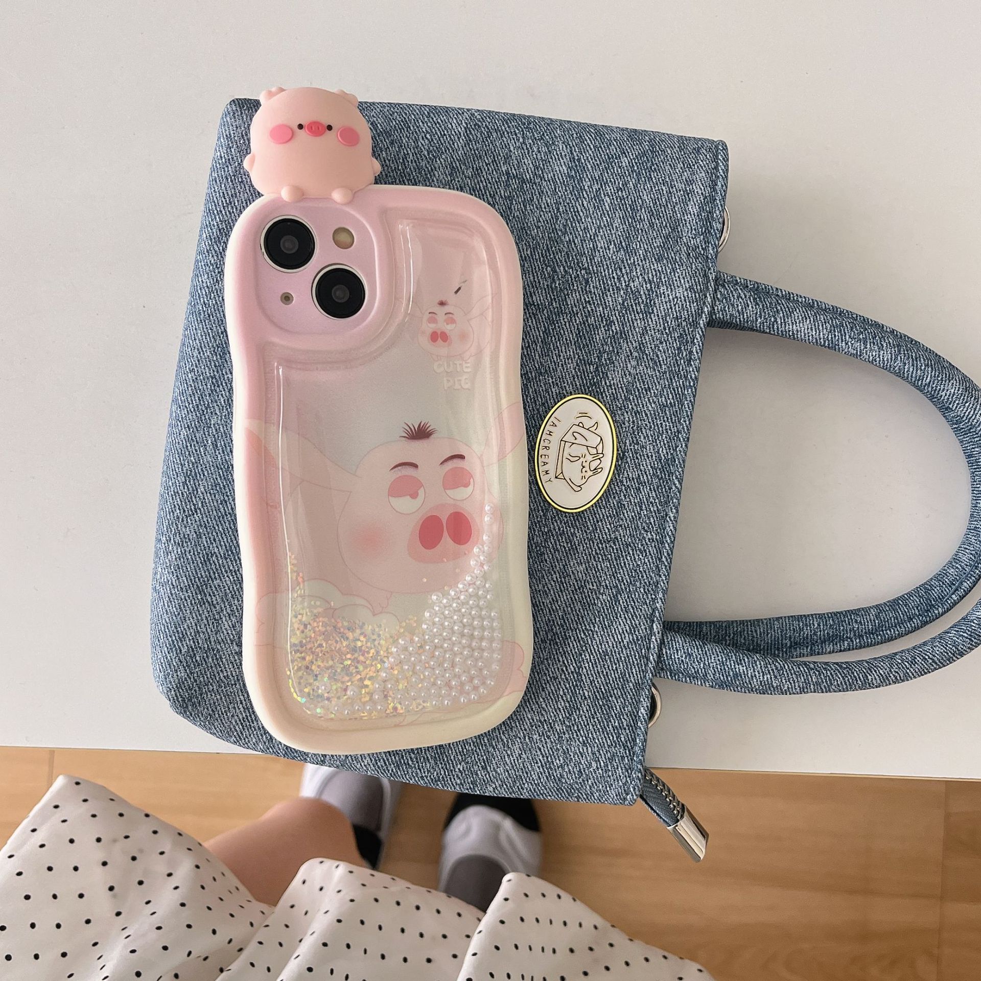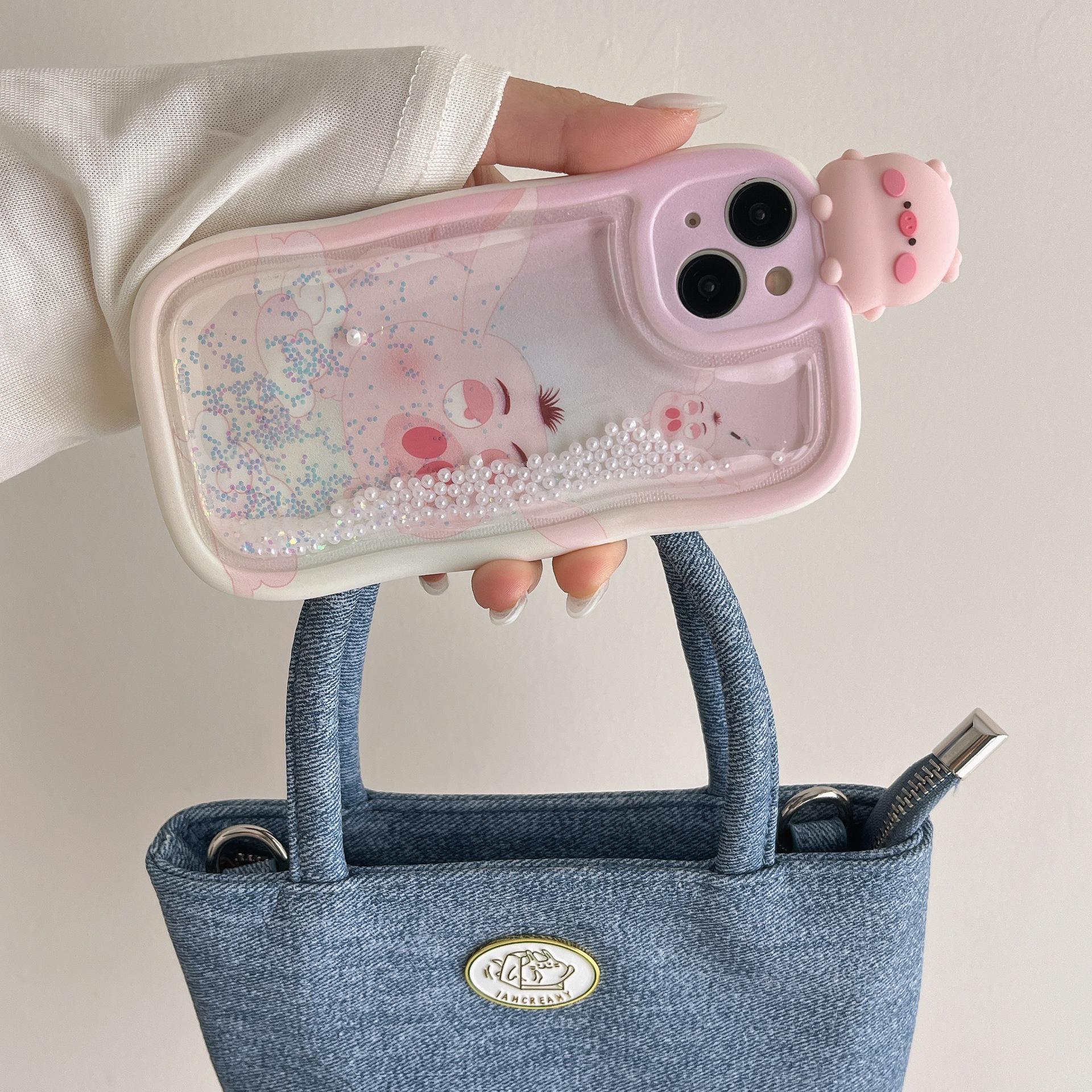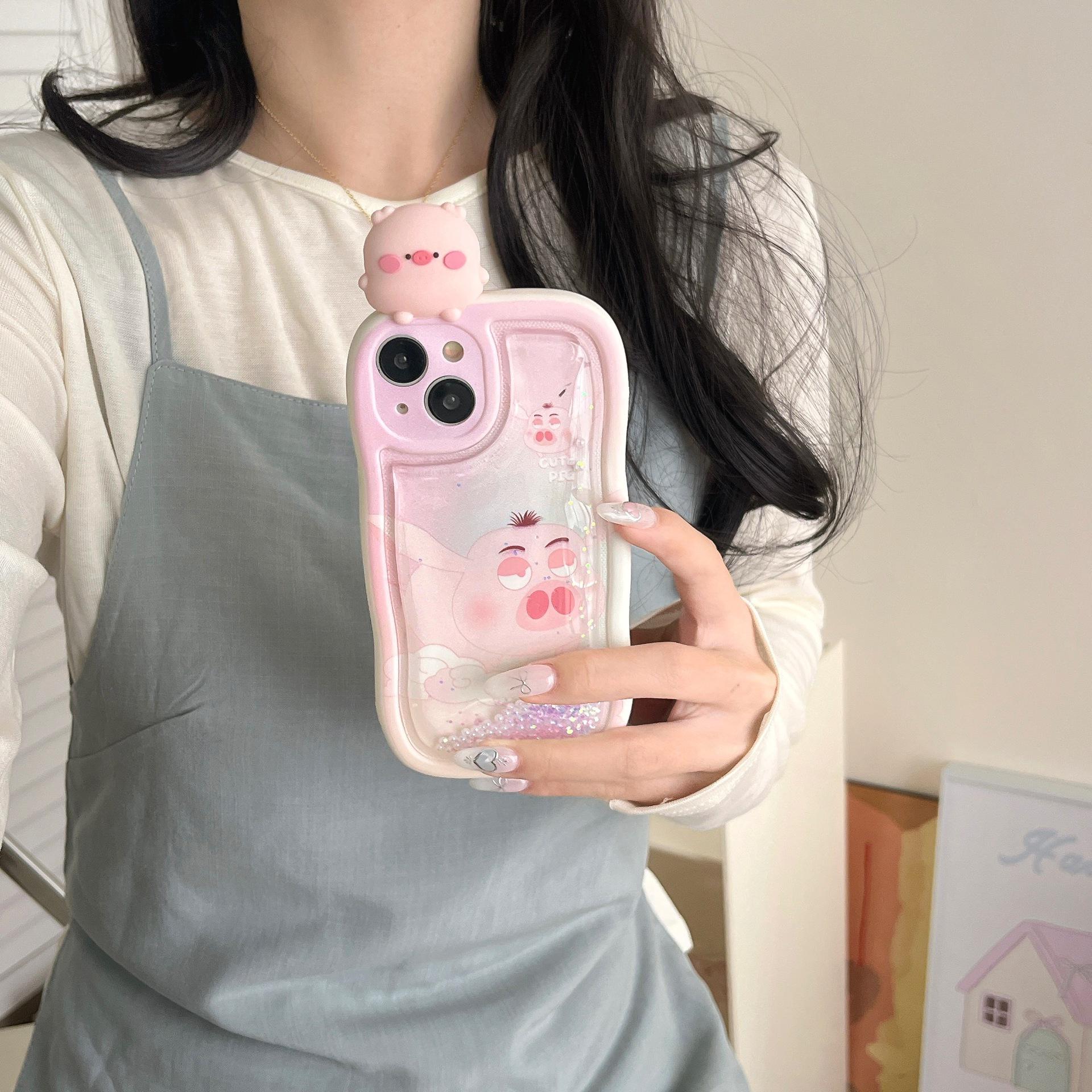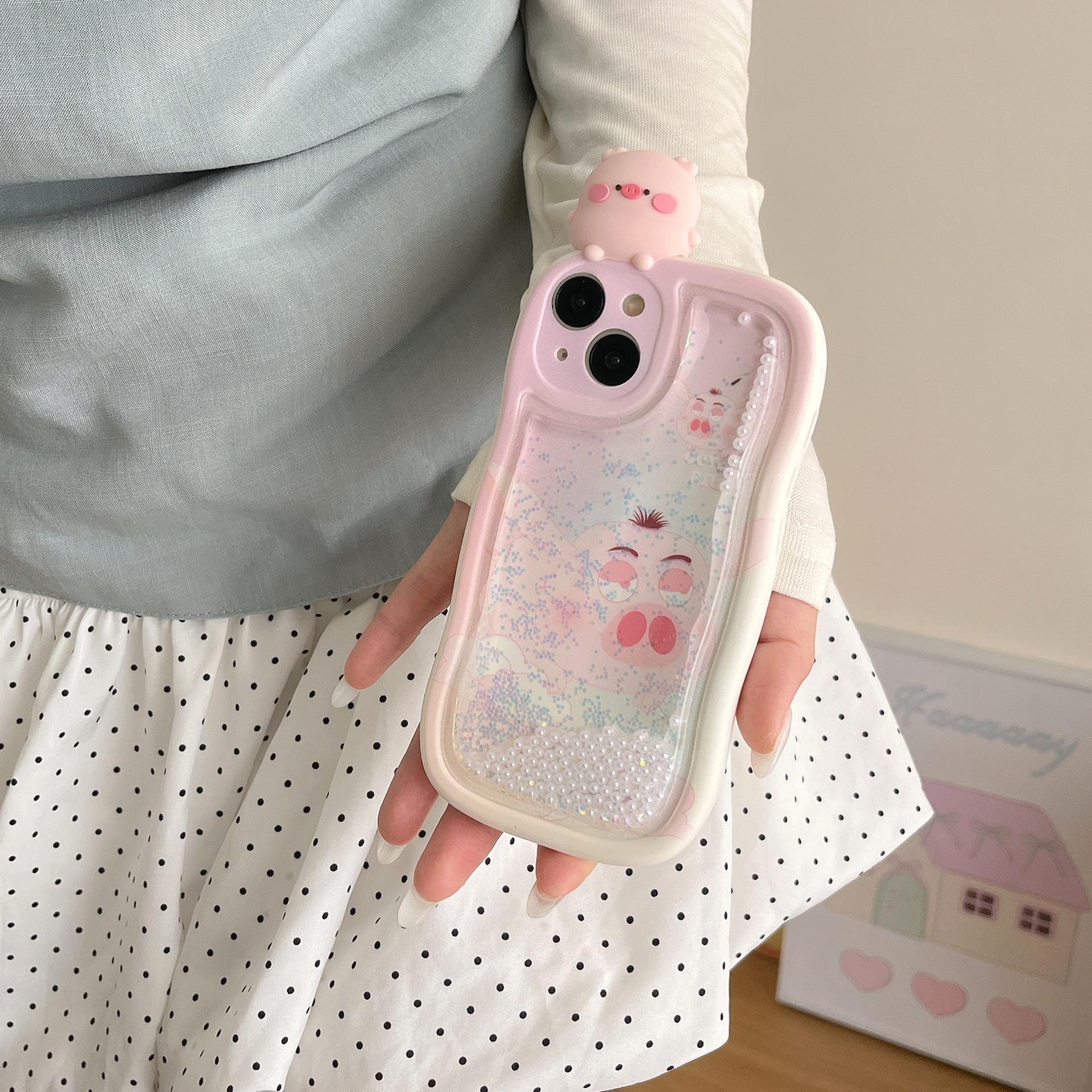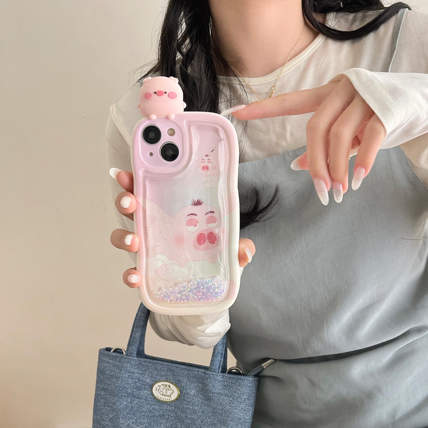 Funda con diseño de cerdito de arena movediza para Apple Pro Max de 16 pulgadas, anticaídas para iPhone 15, 14 pulgadas, bonita, 13/12/11