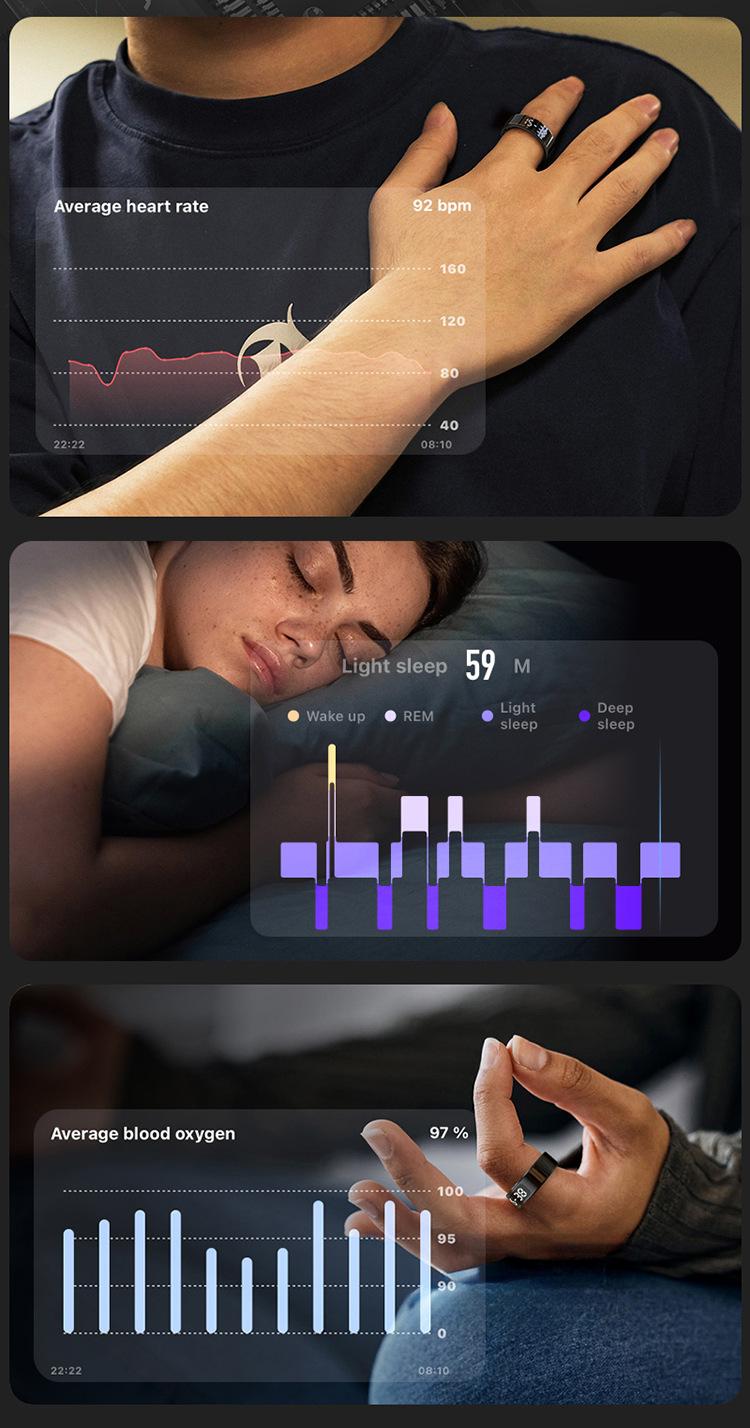Anillo inteligente R11 Frecuencia cardíaca Oxígeno en sangre Monitoreo del sueño Pantalla inteligente Número de pasos Anillo inteligente Anillo inteligente