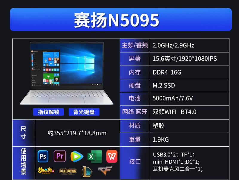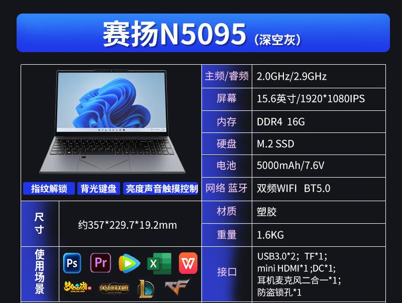 2024 Nuevo 12ª Generación 15.6 "N5095 Laptop Delgada Laptop Negocios Oficina Juego