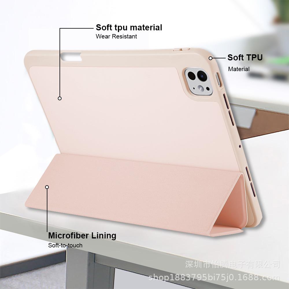 [nombre del producto]:Funda protectora triple para iPad Pro 11 Air 11 con ranura para lápiz Pro 13 funda para tableta de TPU con tacto de piel 2024