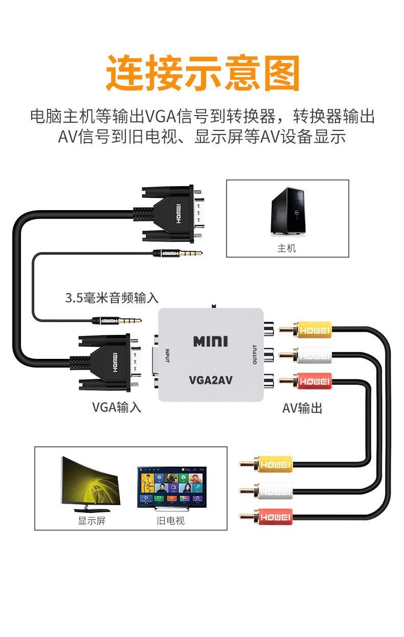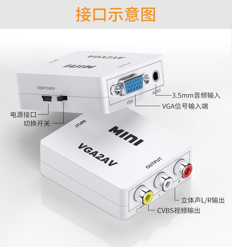 Mini convertidor VGA a AV transfronterizo caja blanca pequeña video HD 1080p caja decodificadora de TV proyección conmutador