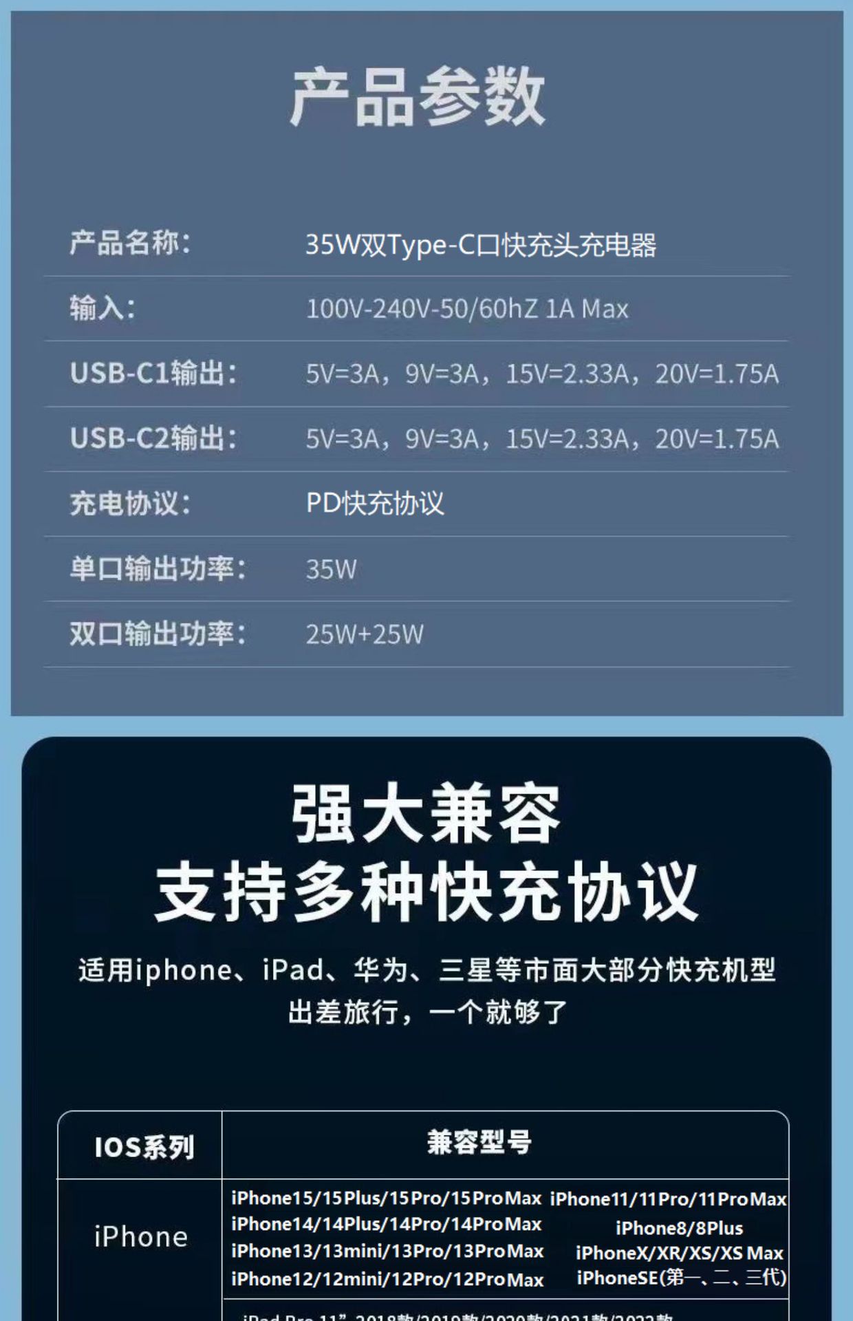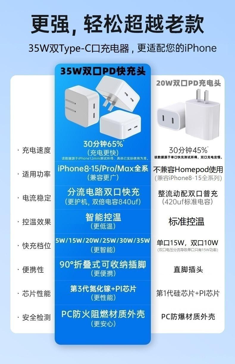 PD40W adecuado para cargador Apple 15 Cabezal de carga rápida de 35 W iPhone 16 Cabezal de carga dedicado Promax