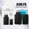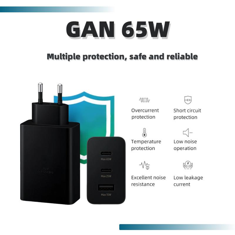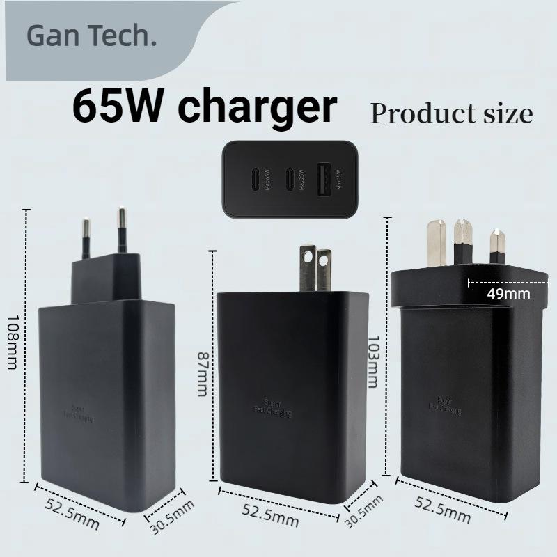 Cargador transfronterizo PD65W para teléfono móvil Samsung S23, cabezal de carga súper rápido ACC de nitruro de galio multiusos