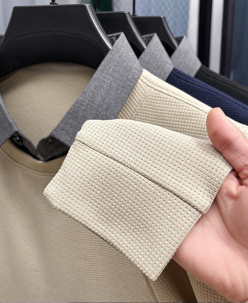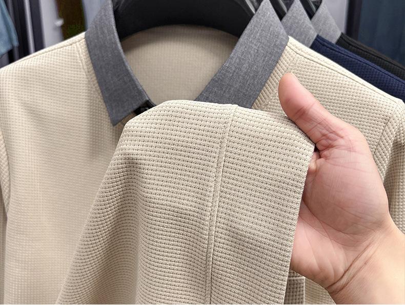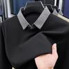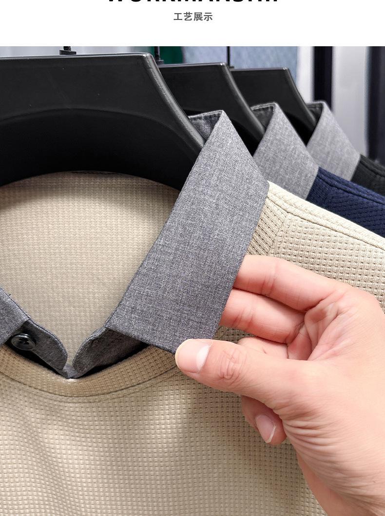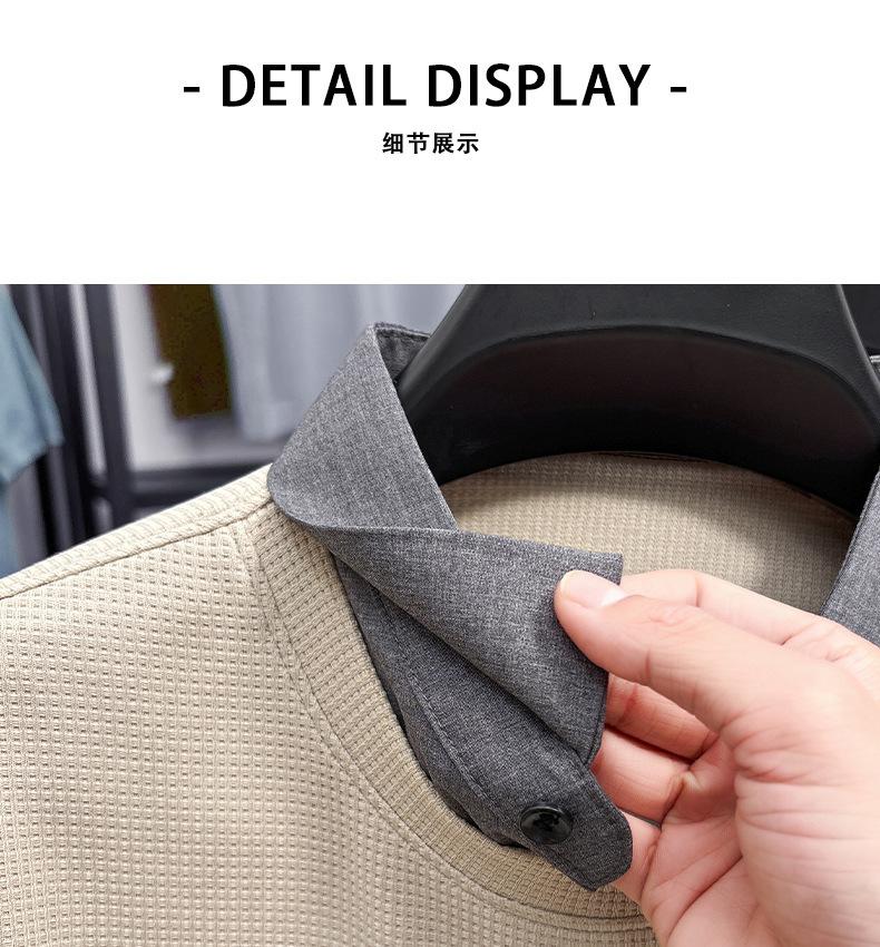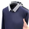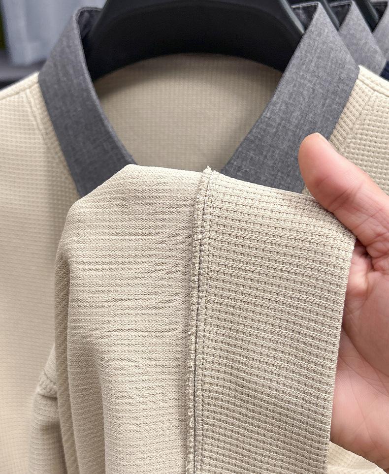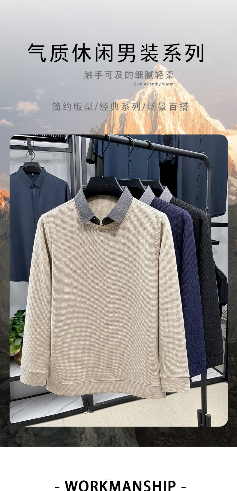 2025 Nuevo Primavera y Otoño para Hombre Falso Dos Piezas Color Sólido Tejido de Punto Negocios Casual Cuello de Camisa Manga Larga Sudadera Camiseta