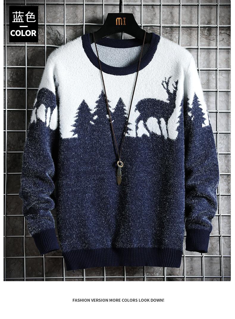 Otoño e invierno 2023 Nuevo suéter navideño de reno para hombre, moda juvenil casual, suéter de moda de mohair