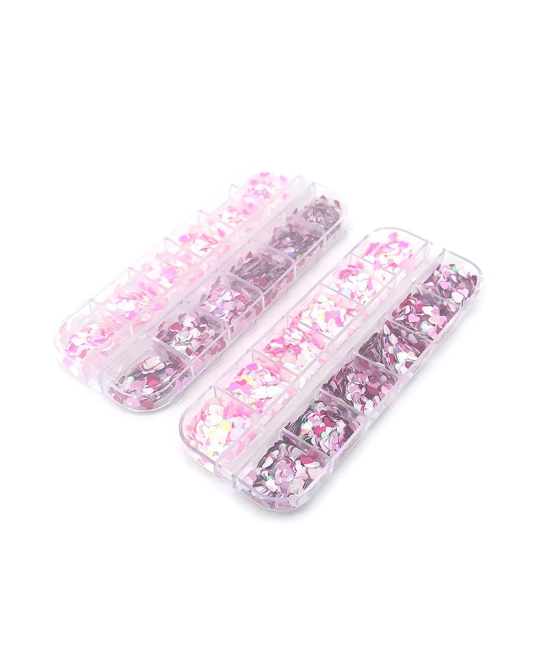 Pegatinas para uñas con diseño de corazón, lentejuelas y diseño de corazón para novias, color rojo, rosa, blanco y melocotón.