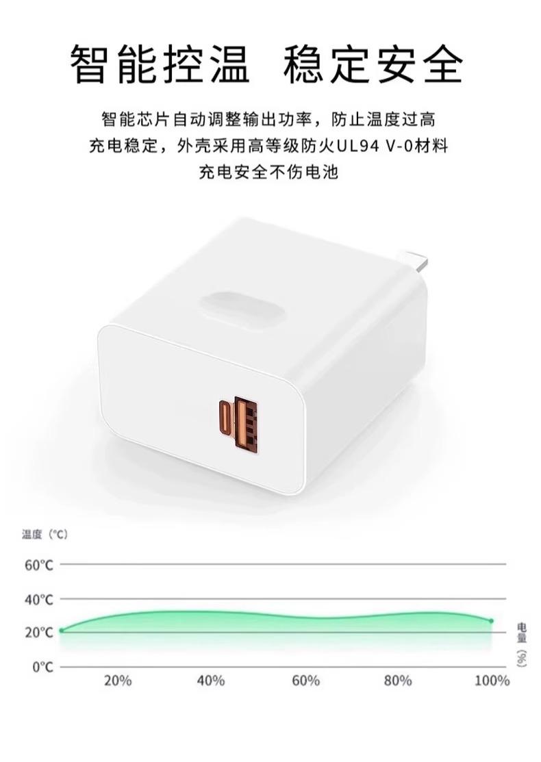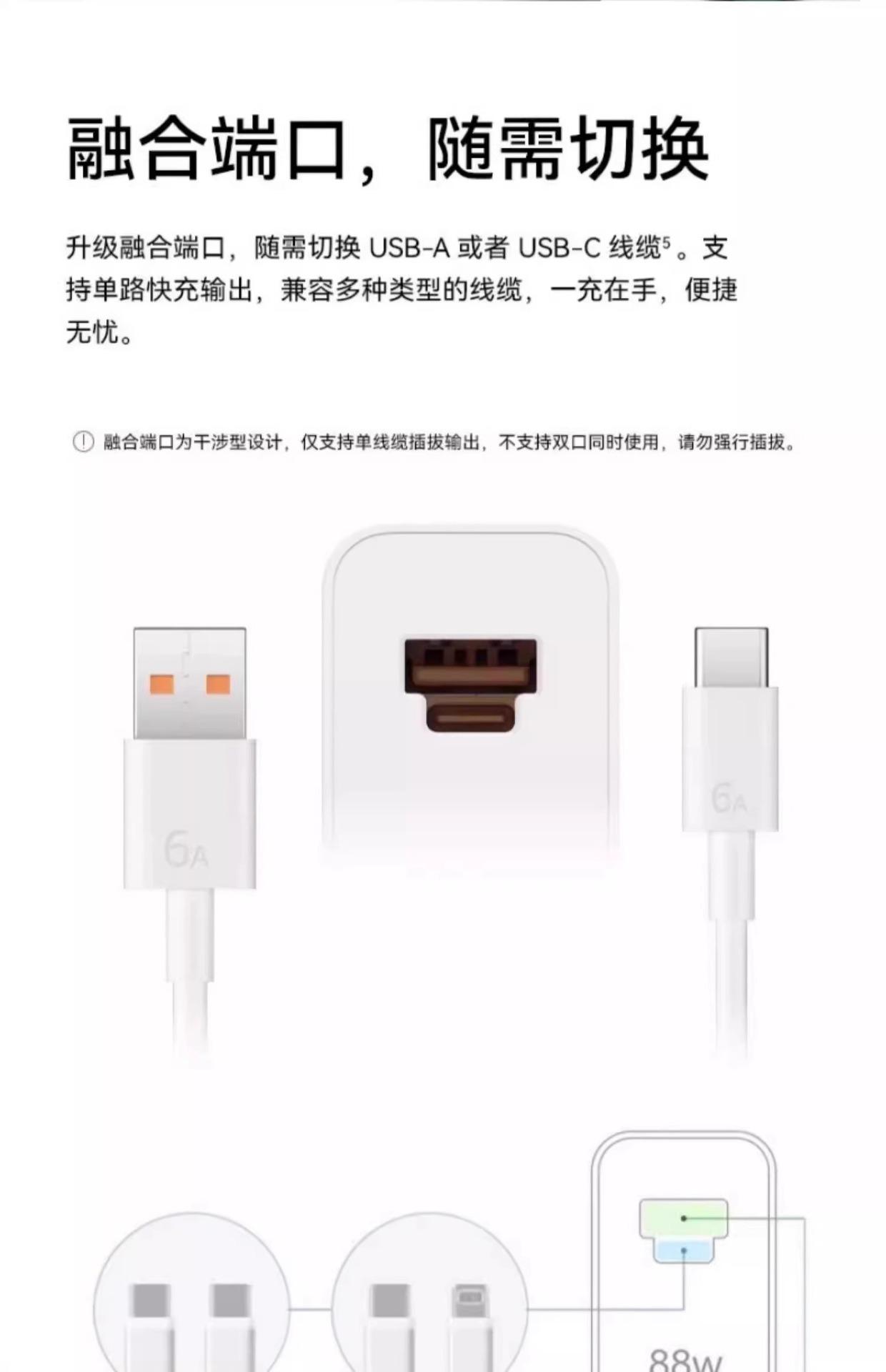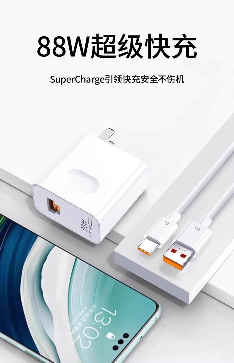 Cabezal de carga súper rápida de 88 W adecuado para el cabezal de carga flash Huawei Mate60pro, puerto dual compatible con cargador USB-A/C