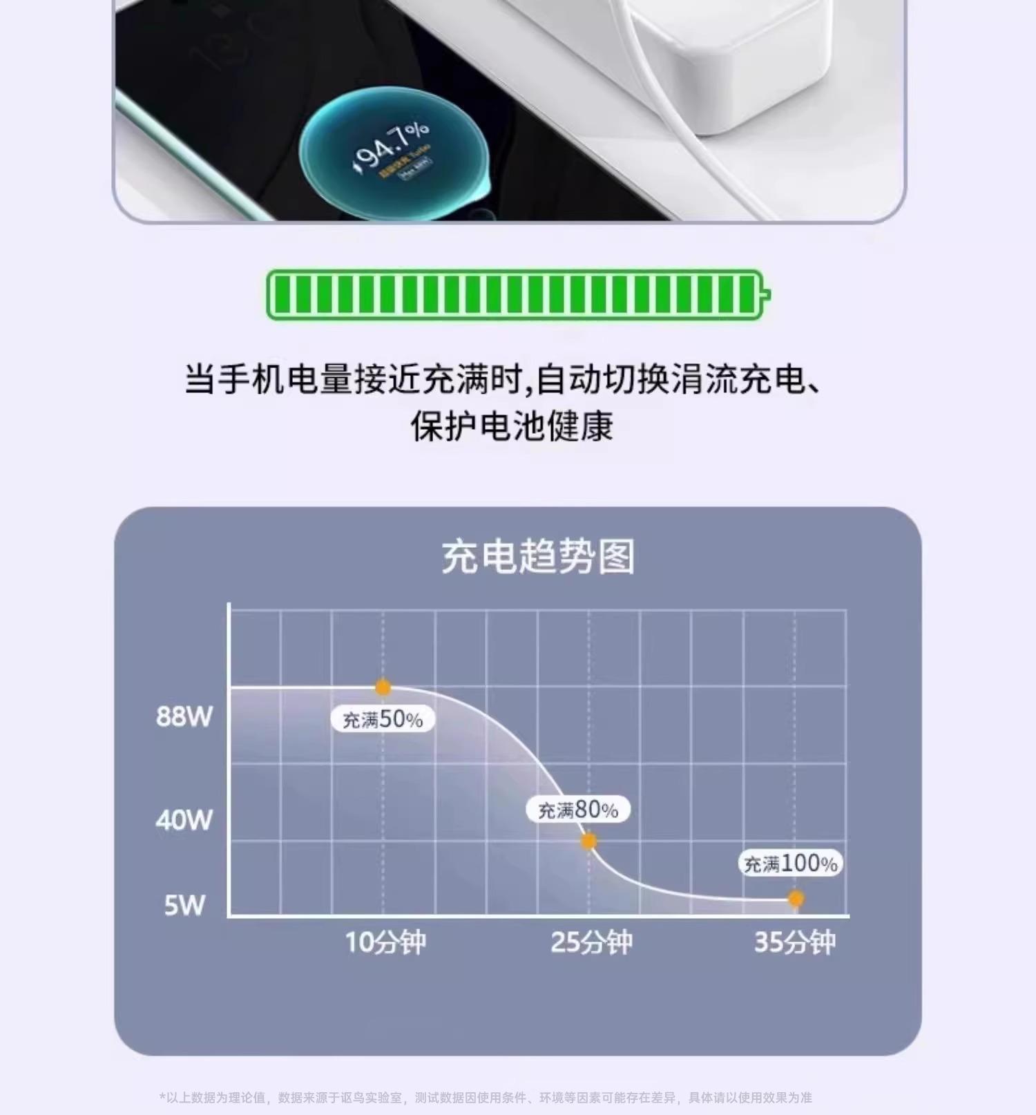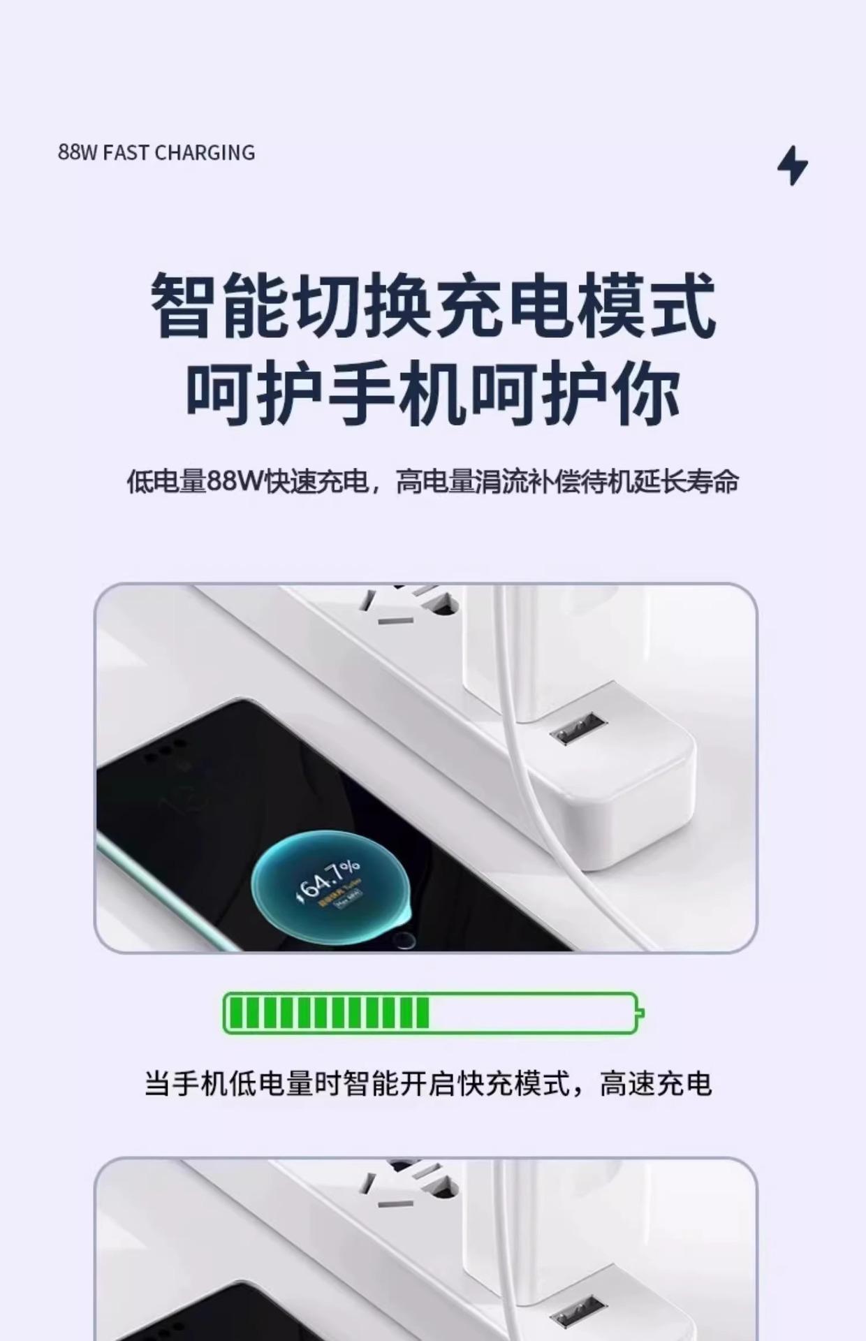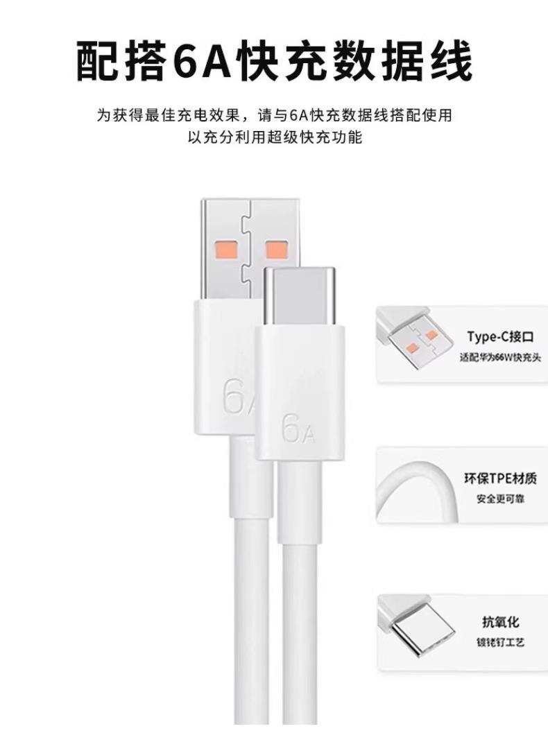 Cabezal de carga súper rápida de 88 W adecuado para el cabezal de carga flash Huawei Mate60pro, puerto dual compatible con cargador USB-A/C