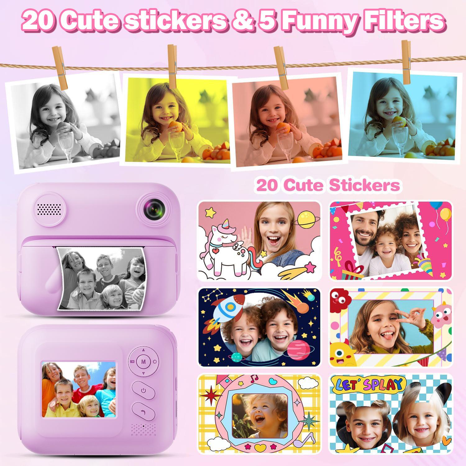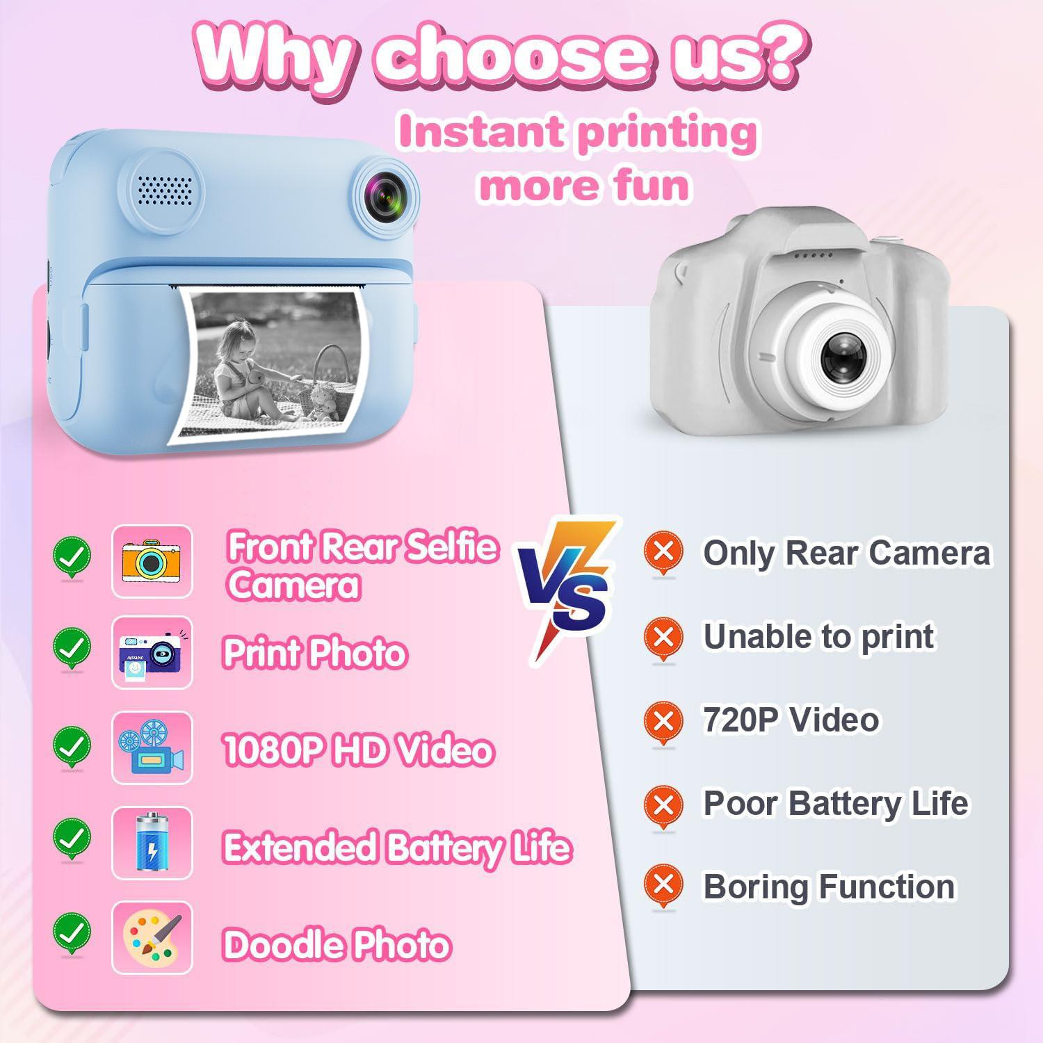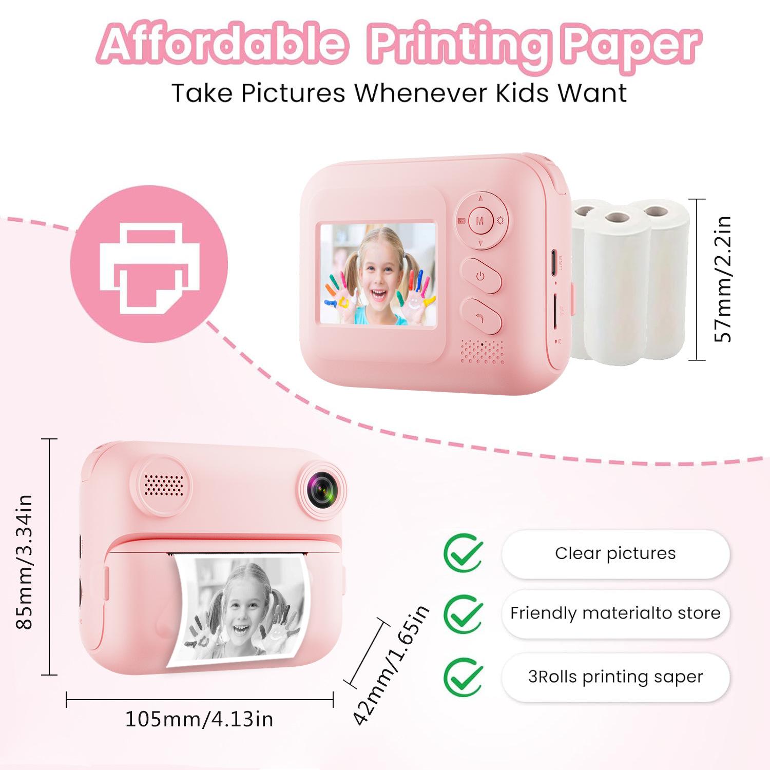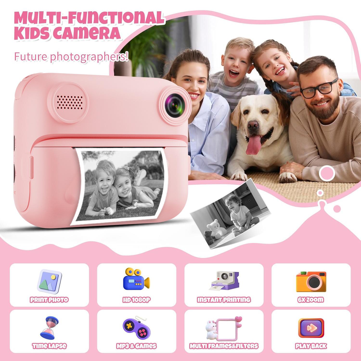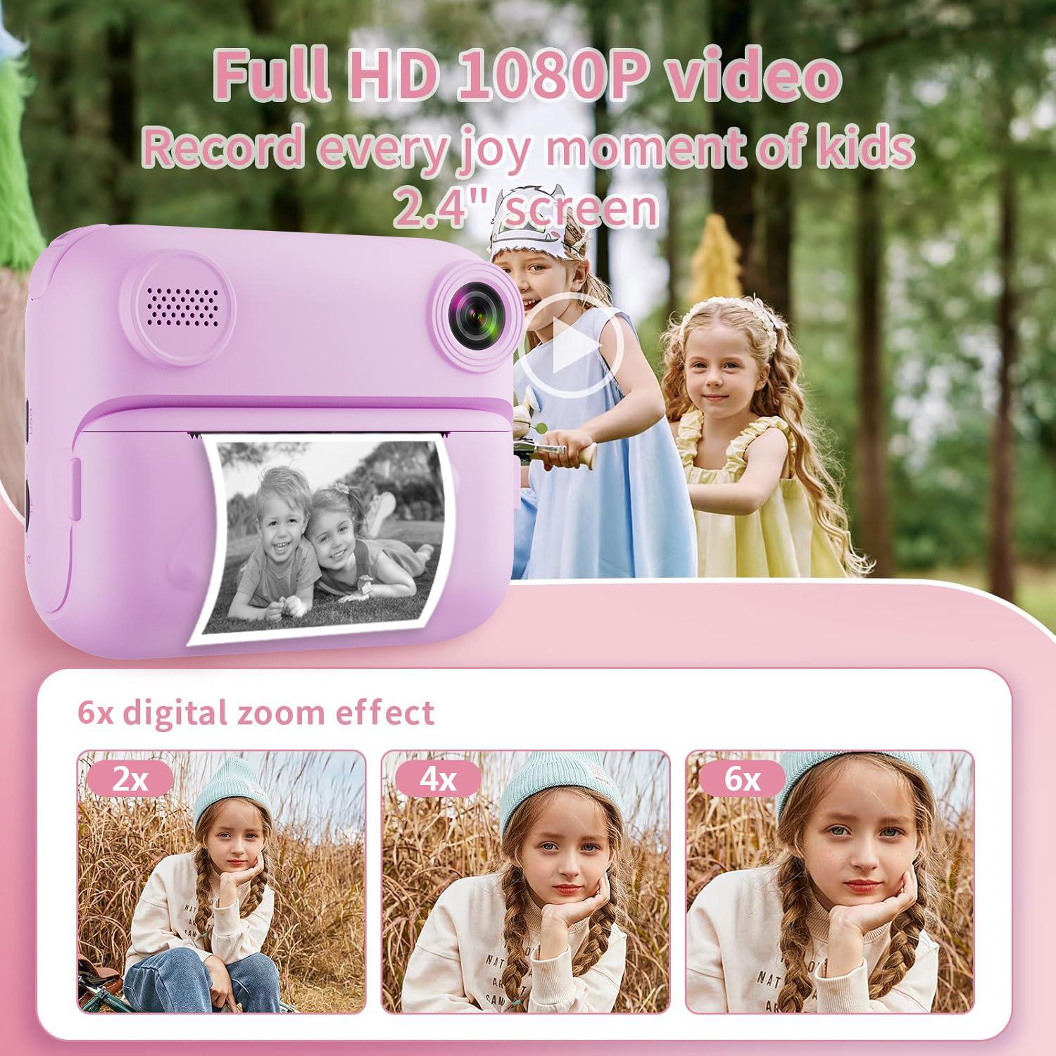 Cámara Digital HD Polaroid para Niños Doble Cámara Pantalla Grande 4000W Foto de Dibujos Animados Cámara de Impresión Instantánea Máquina de Regalo