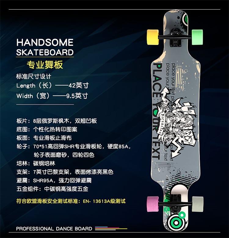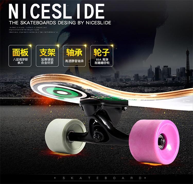 Patineta Ness, longboard, tabla de baile, scooter callejero de cuatro ruedas, profesional, para adultos y niños, tabla grande de arce ruso