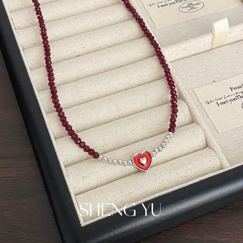 Nuevo collar de cuentas de amor de moda nacional de estilo chino, dulce y exquisito diseño de nicho superpuesto, cadena de clavícula de alta gama que combina con todo para mujer.