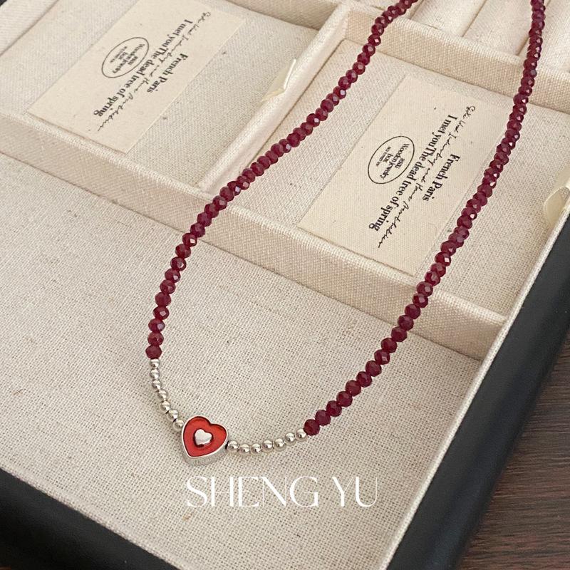 Compra Nuevo collar de cuentas de amor de moda nacional de estilo chino, dulce y exquisito diseño de nicho superpuesto, cadena de clavícula de alta gama que combina con todo para mujer. al por mayor en Joom.pro