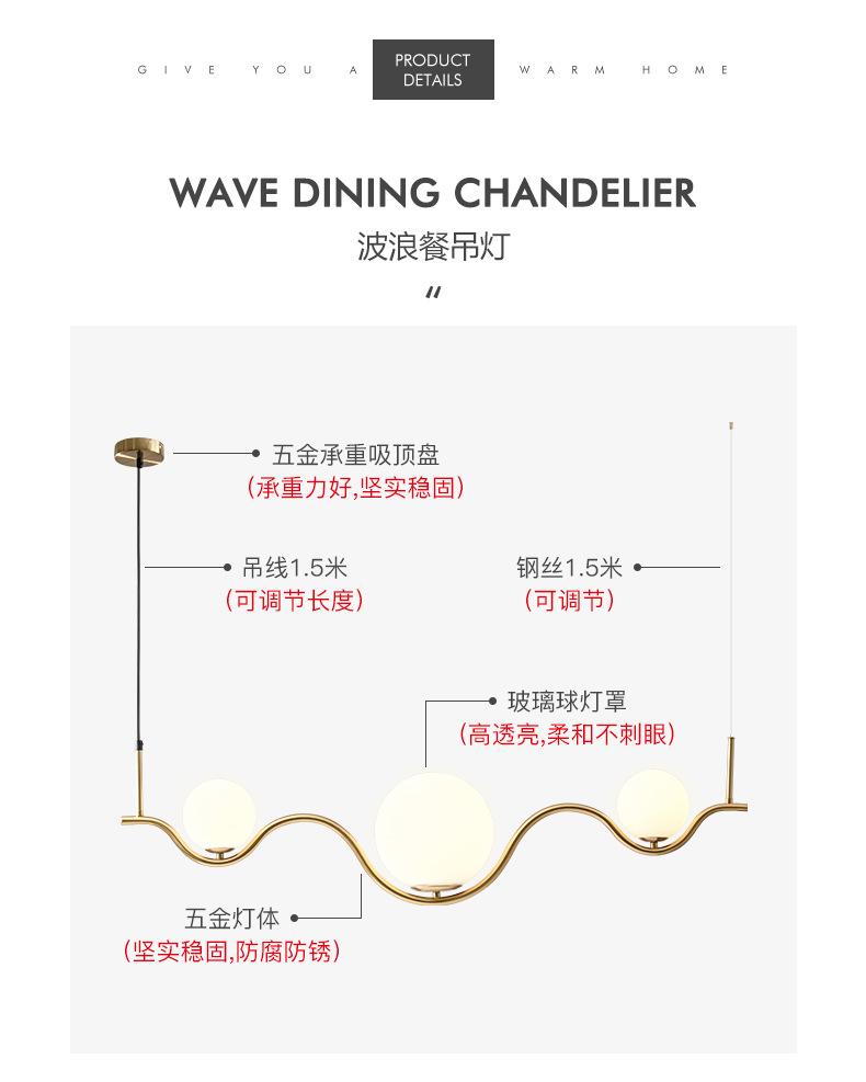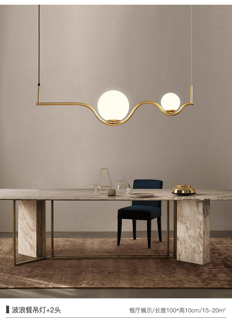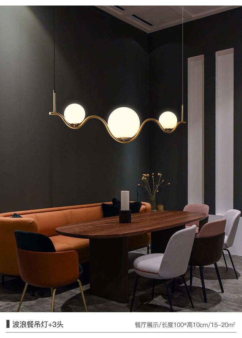 Lámpara de araña ondulada con diseño de bola simple nórdico, tira de personalidad creativa, lámpara de bar para restaurante, lámpara decorativa para recepción de tienda