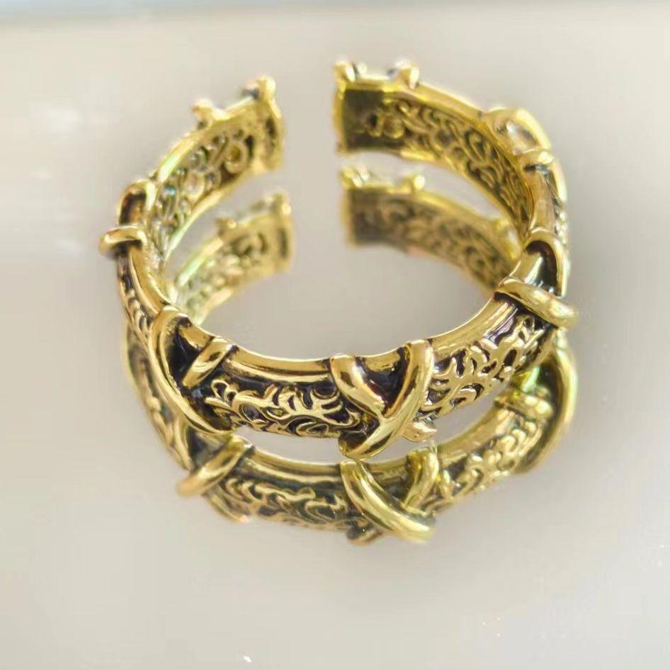 Compra Anillo vintage dorado con diseño de cruz de hierba Tang, anillo abierto ligero y desgastado de moda para mujer, anillo distintivo que combina con todo. al por mayor en Joom.pro