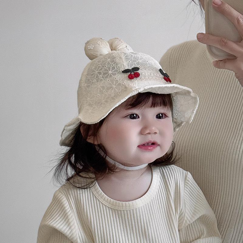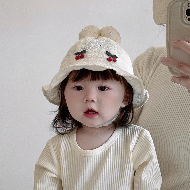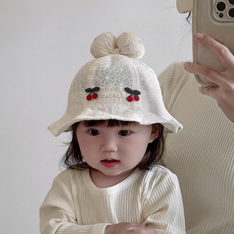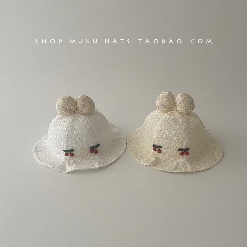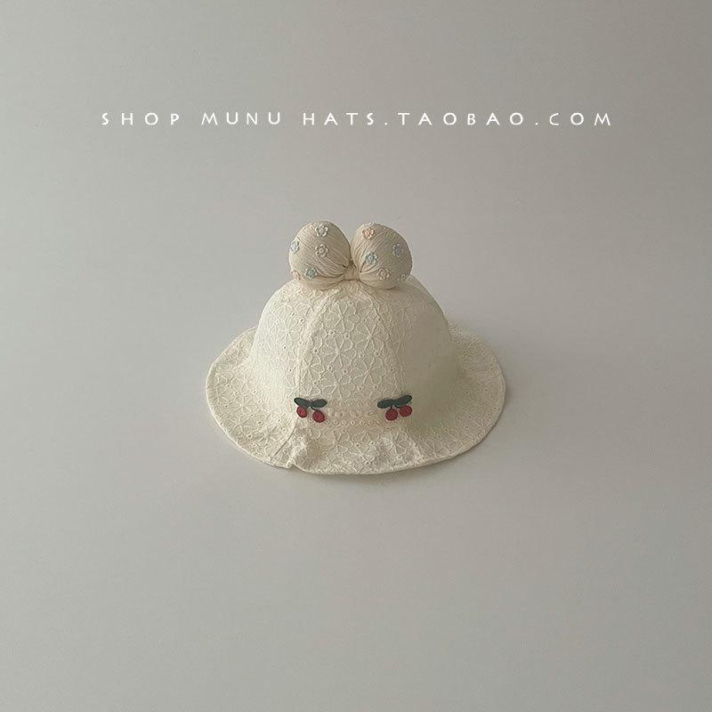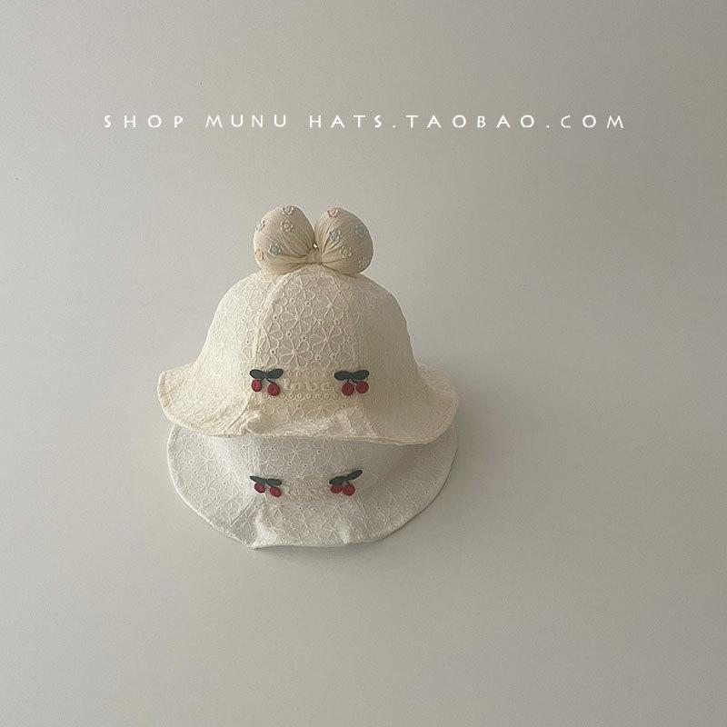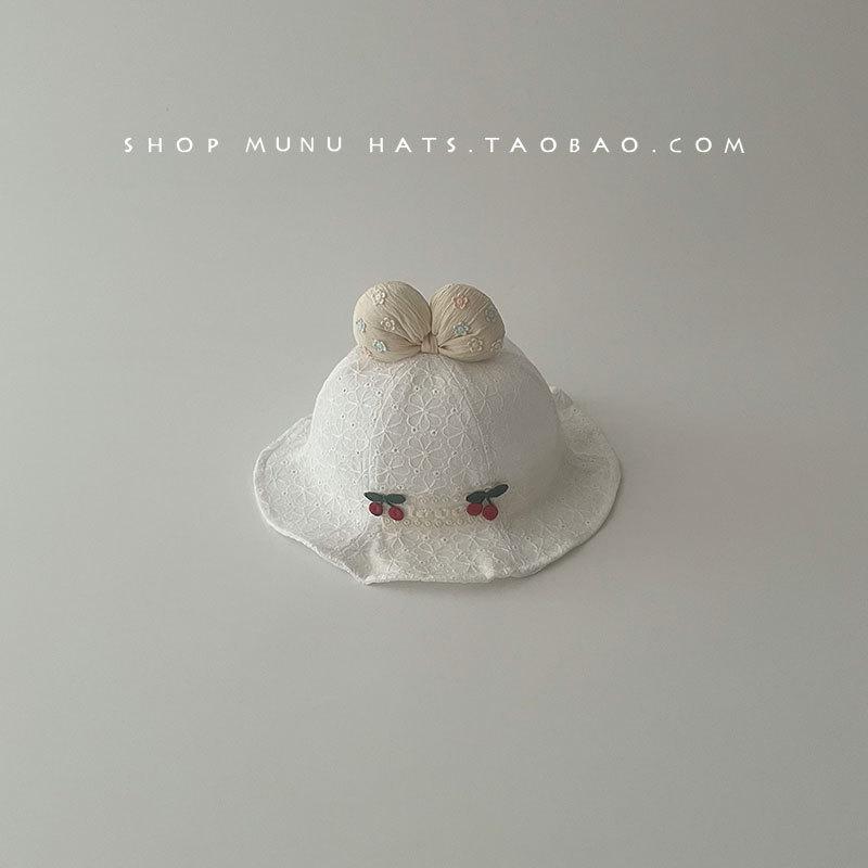 Yishang cherry bow fisherman white +6-30 months (head circumference 44-49cm) + one size fits all