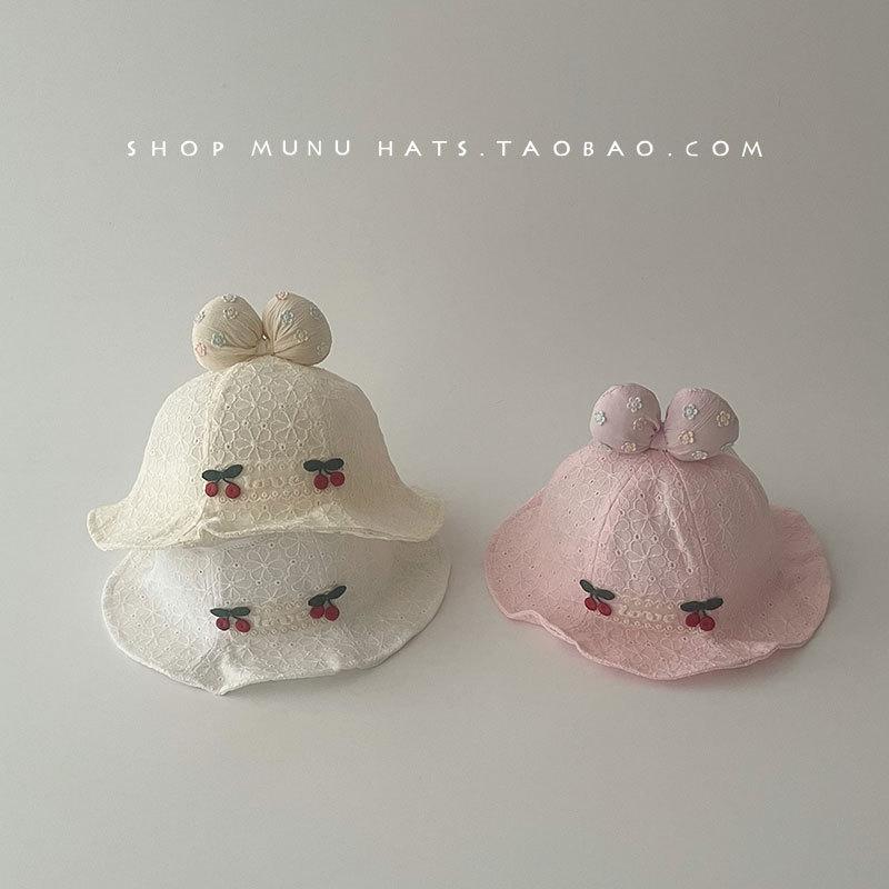Yishang cherry bow fisherman rice +6-30 months (head circumference 44-49cm) + one size fits all