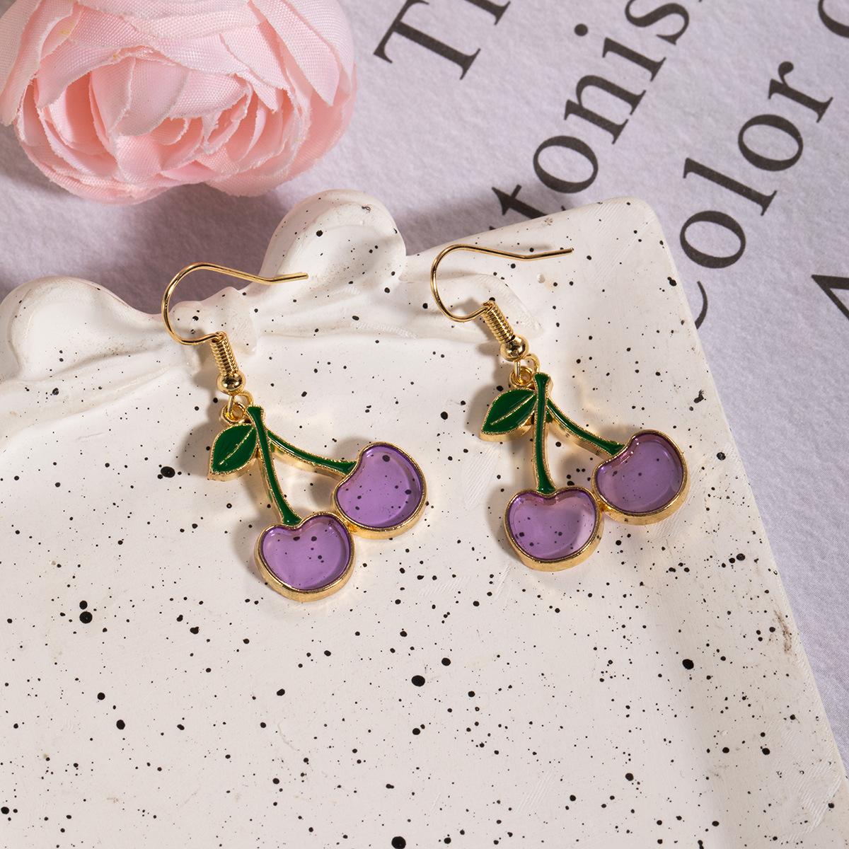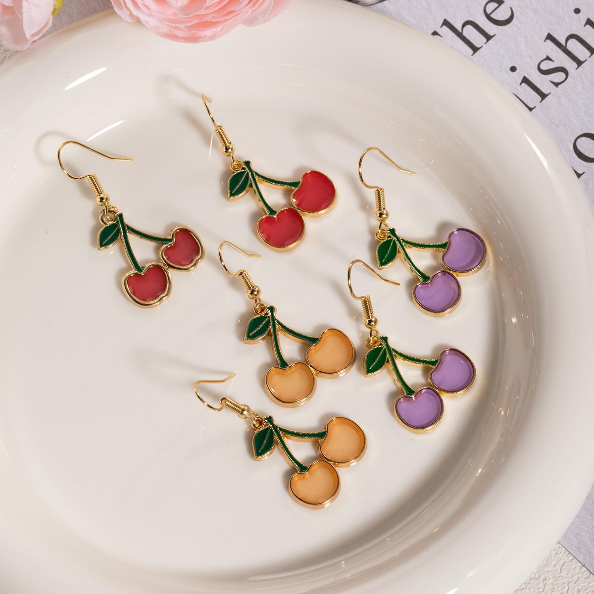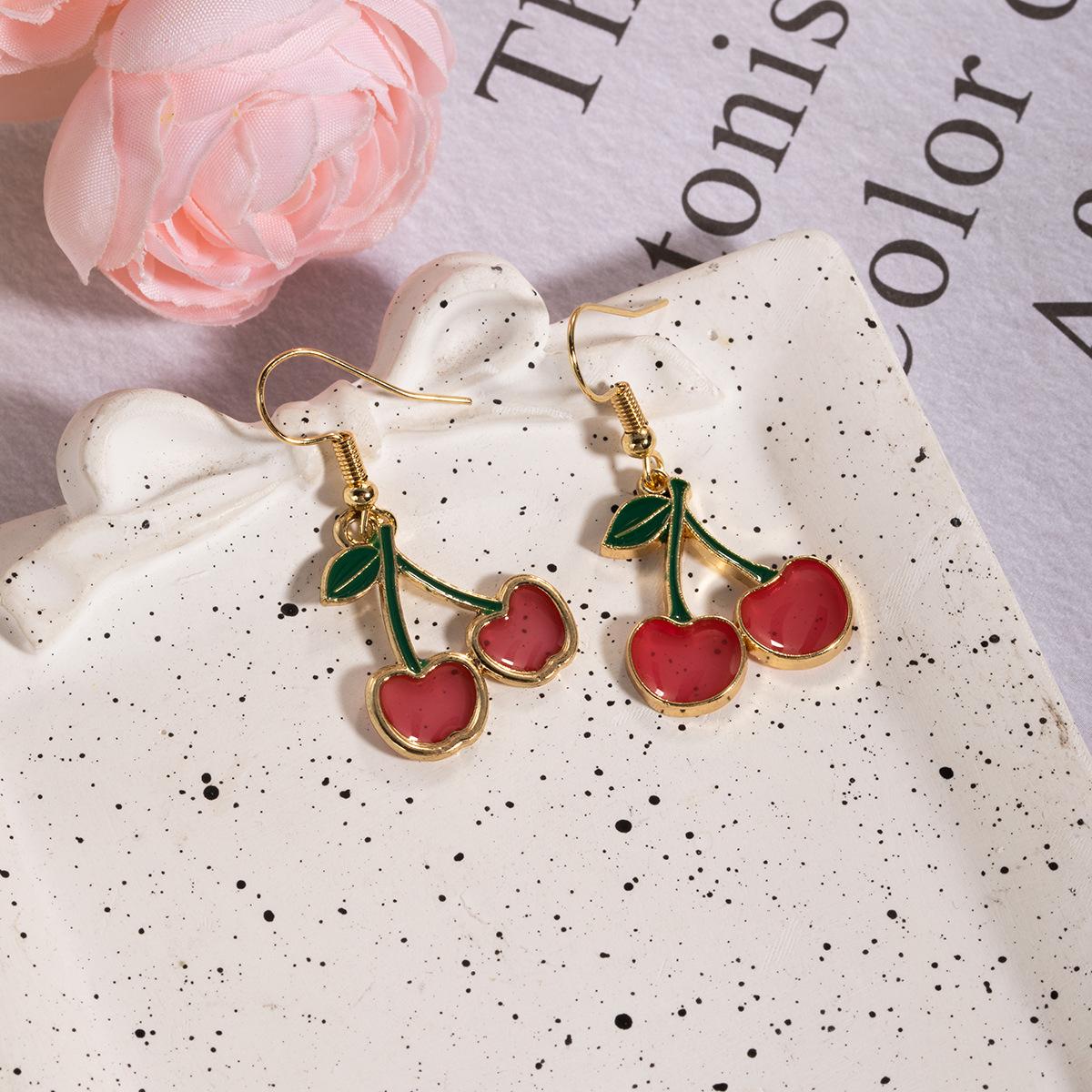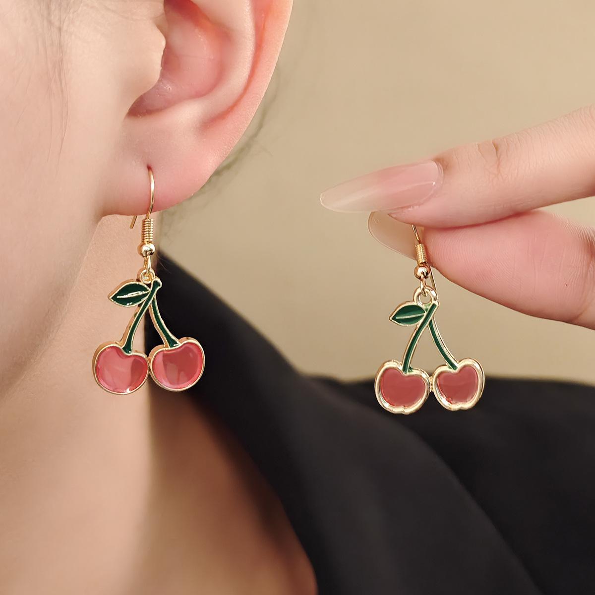 Versión coreana de pequeños pendientes de cereza fresca para mujer, diseño de nicho, pendientes de amor con gota de aceite de temperamento simple, venta al por mayor