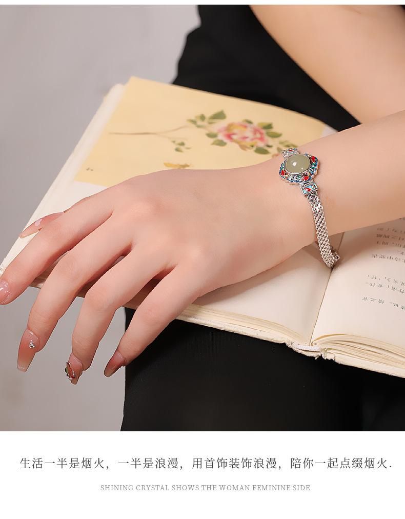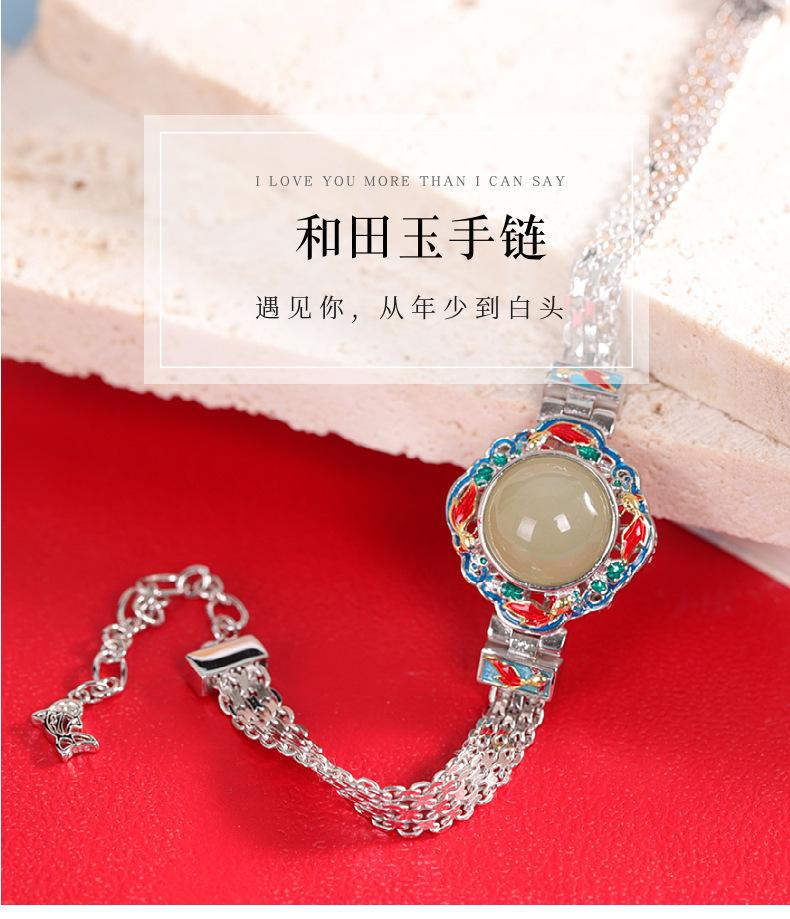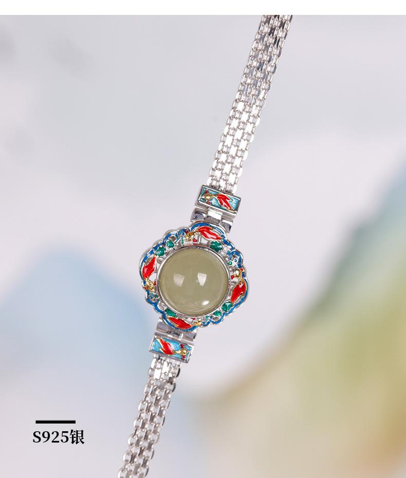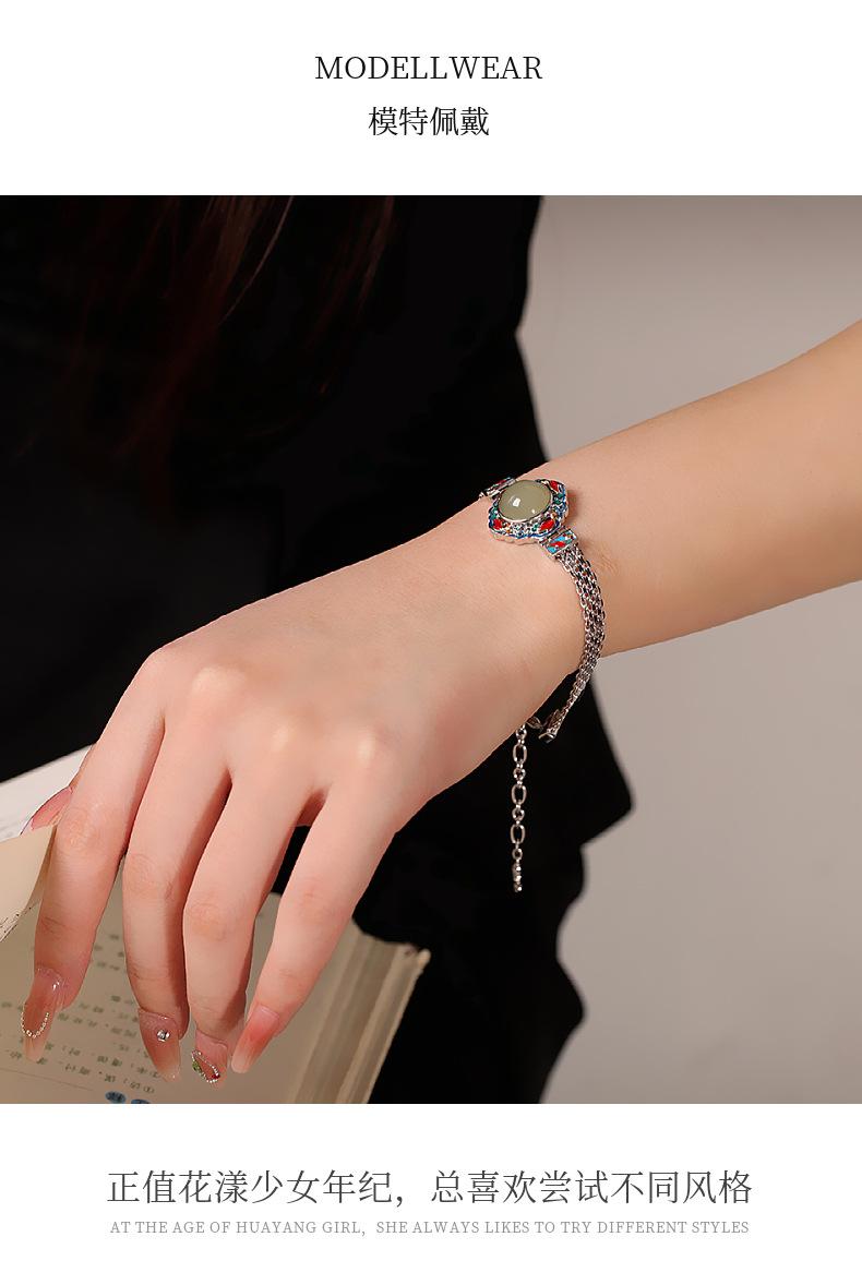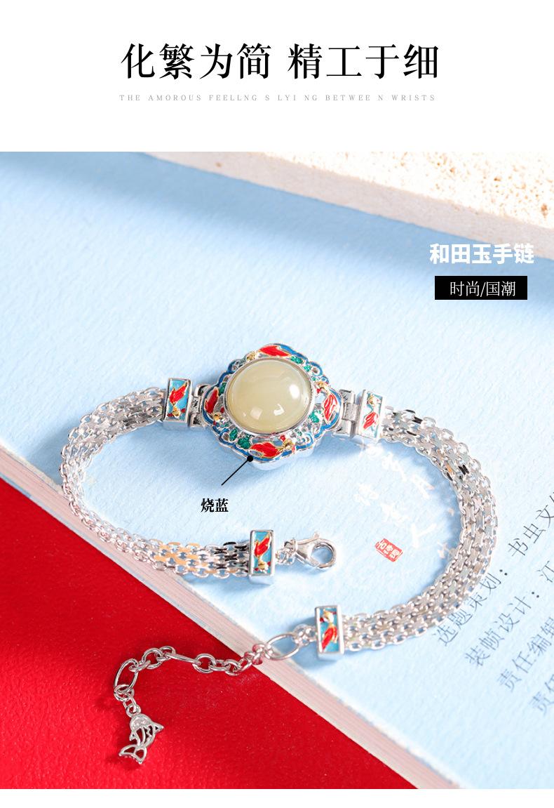 Pulsera de plata de ley S925 con jade hetiano, cadena tejida azul quemada, estilo étnico retro artístico para mujer.