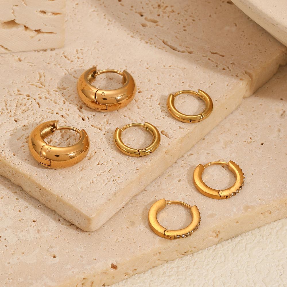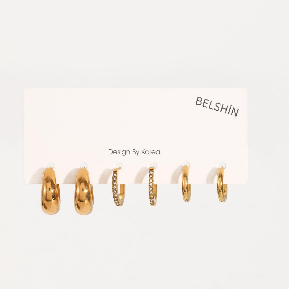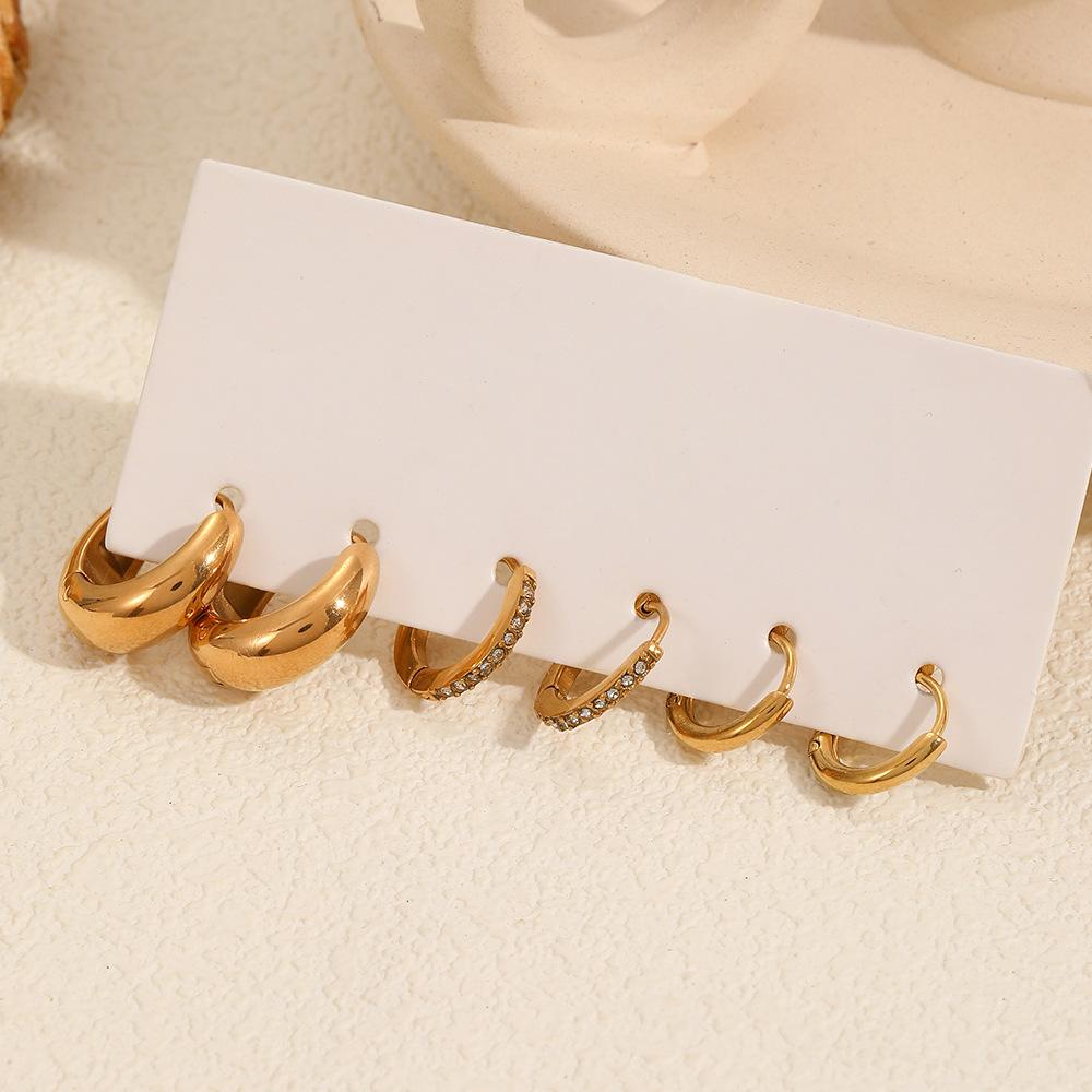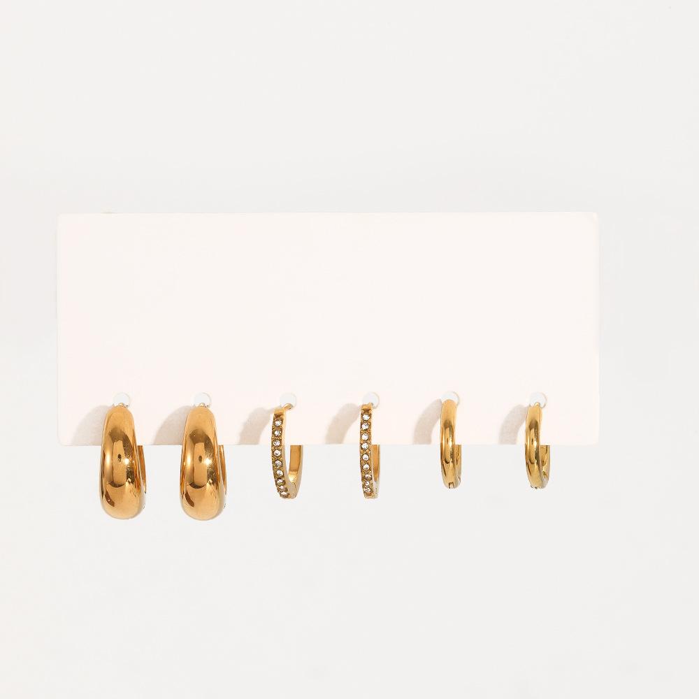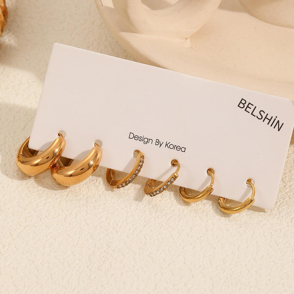 Pendientes de acero inoxidable de tres piezas transfronterizos, pendientes de mujer de moda versátil de alta gama, pendientes de acero de titanio de color oro de 18 quilates