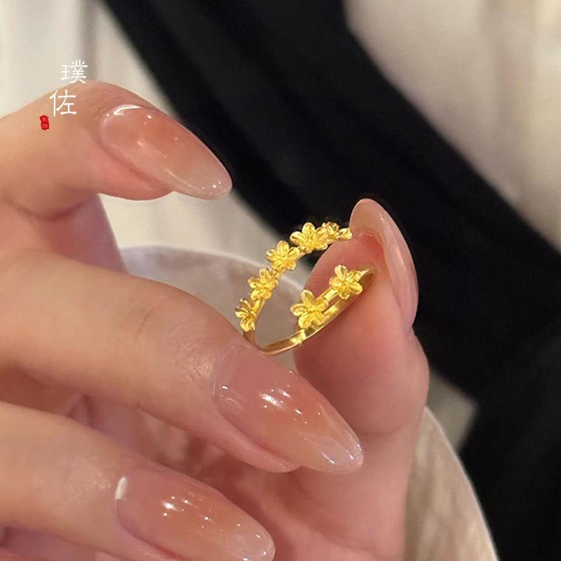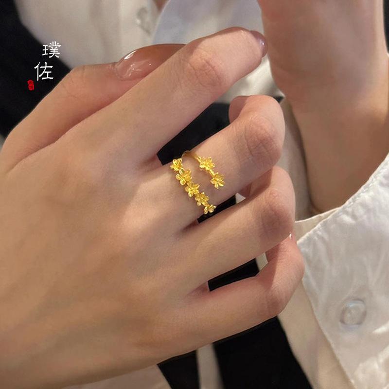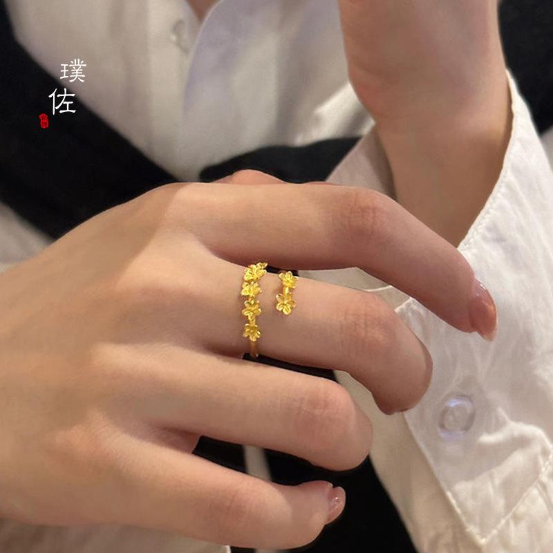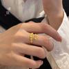 Anillo de oro con diseño de flor de arena dorada del mismo estilo para mujer, con apertura ajustable, dulce y combinable, ideal como regalo de comida de nicho.