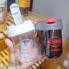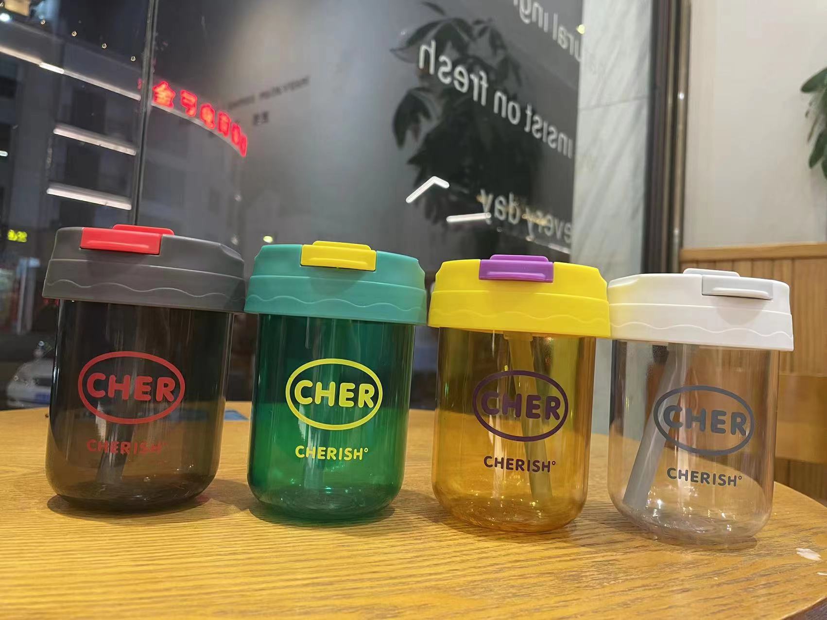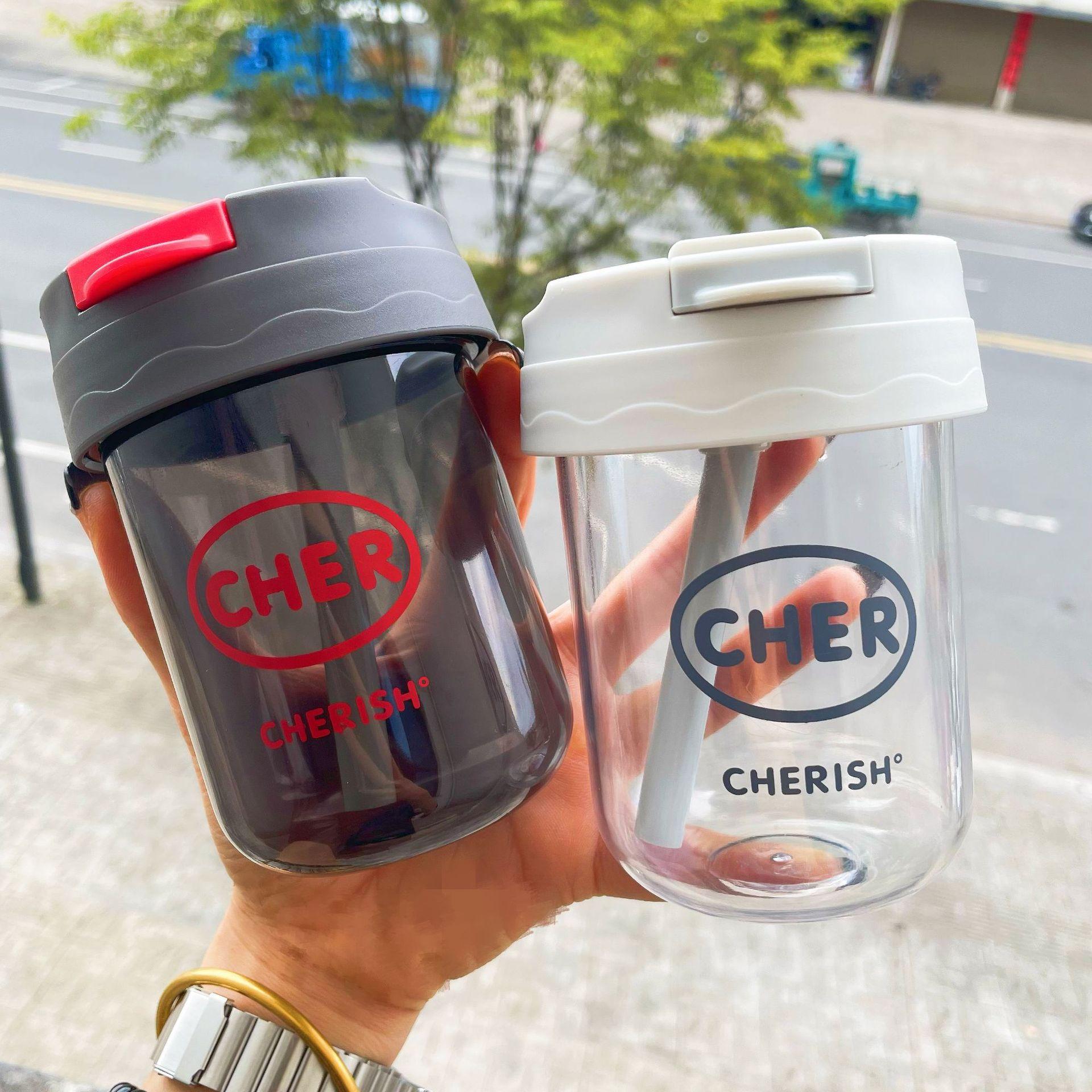 Bonita taza portátil en una sencilla taza con pajita, con pajita, mini taza de agua de gran apariencia, fácil de llevar.