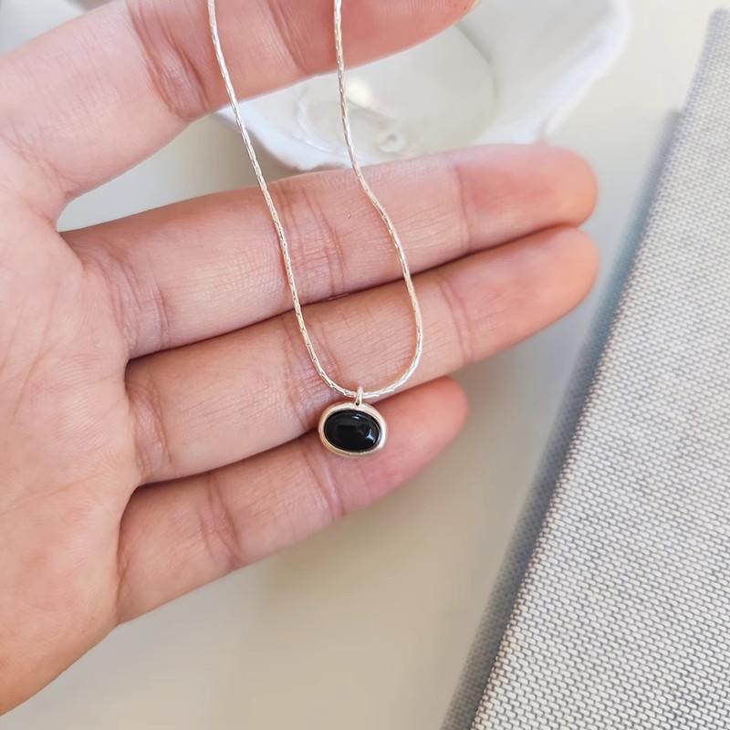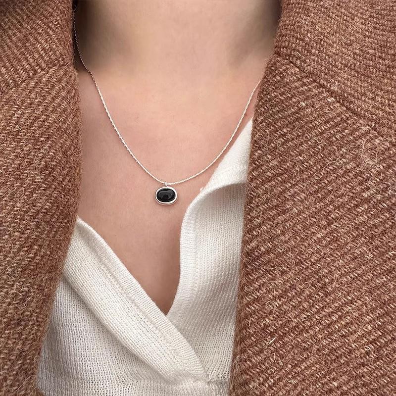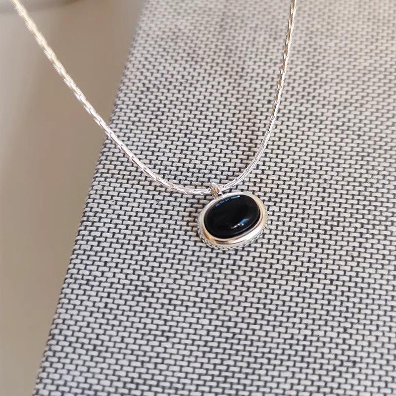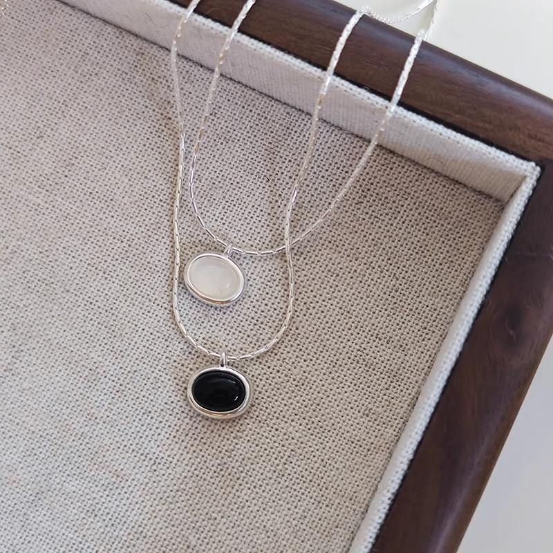 Nuevo collar con colgante ovalado geométrico en blanco y negro de estilo coreano, sencillo y combinable con todo, para mujer, cadena de clavícula.