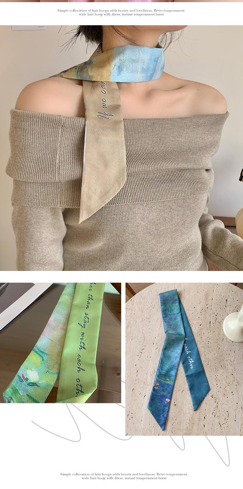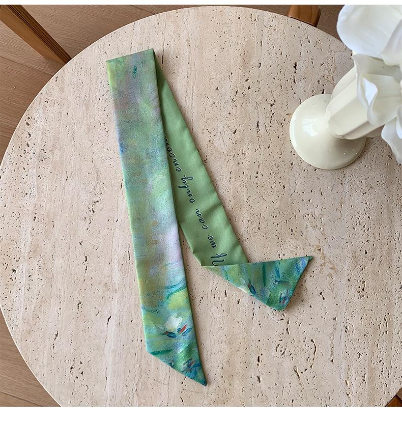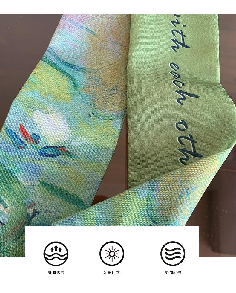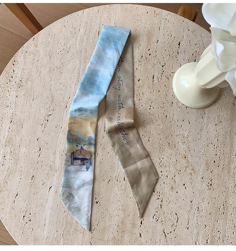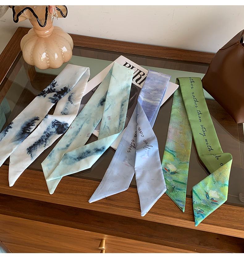 Bufanda Larga de Seda Banda para el Cabello para Mujer Primavera y Verano Combinable Estilo Coreano Vintage Pintura al Óleo Bufanda Decorativa Lazo para Bolsa Cinta para el Cabello Accesorios para el Cabello