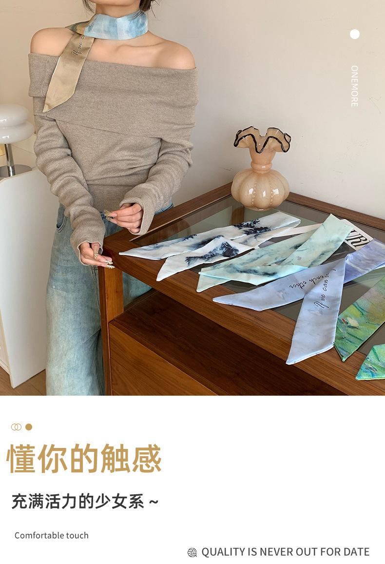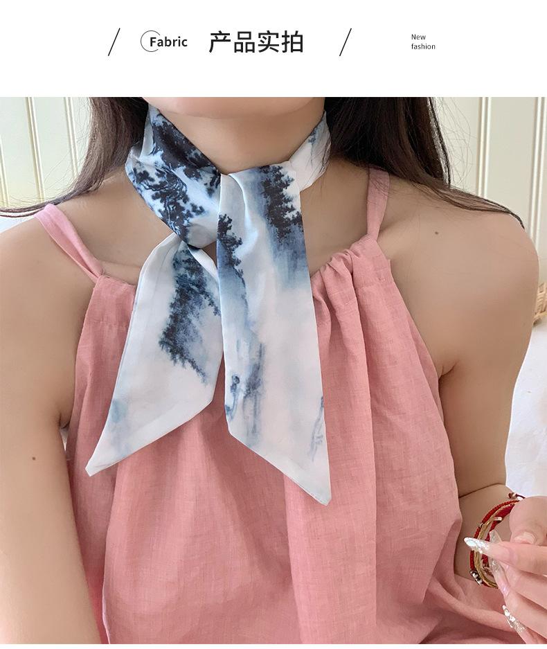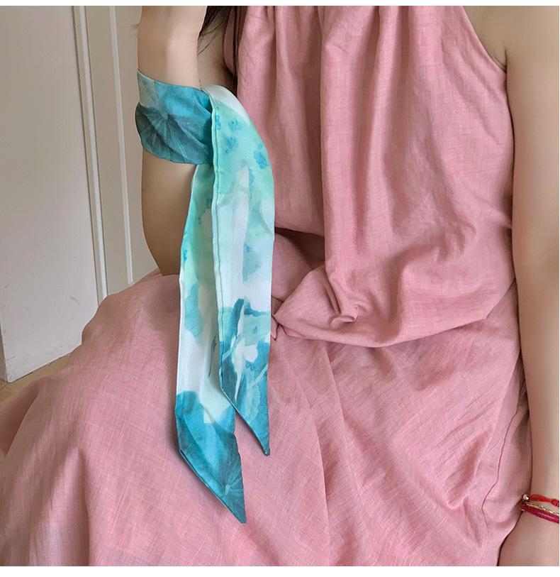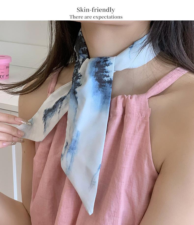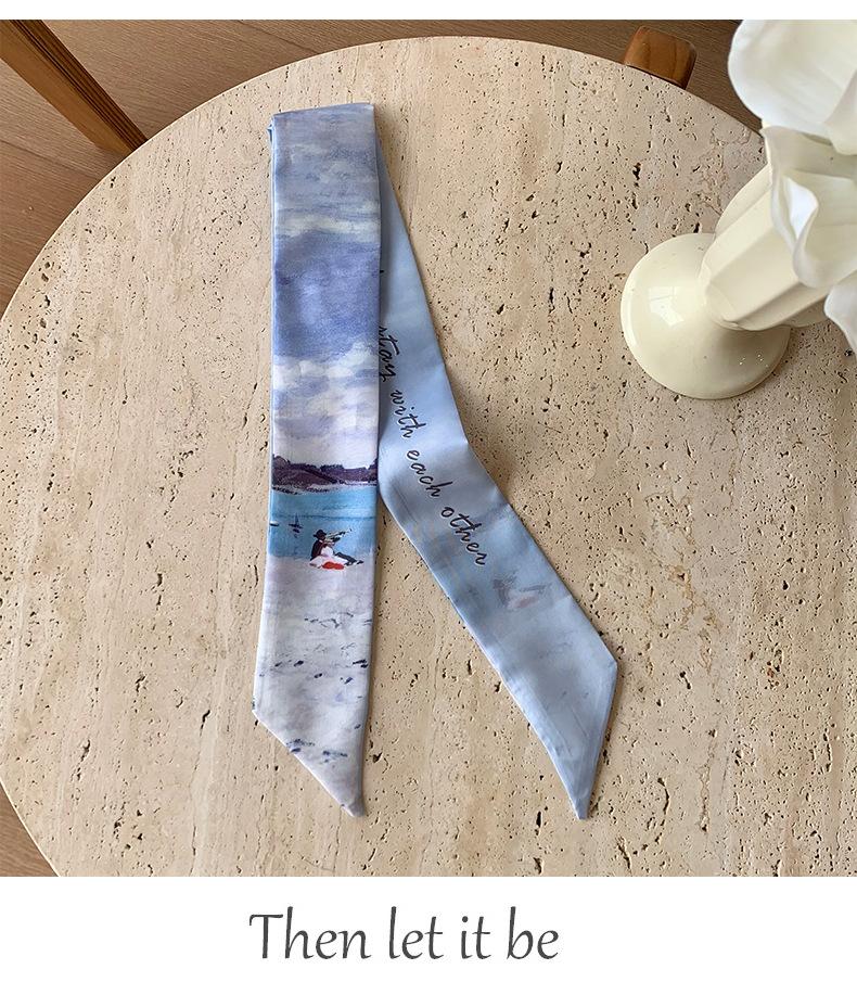Bufanda Larga de Seda Banda para el Cabello para Mujer Primavera y Verano Combinable Estilo Coreano Vintage Pintura al Óleo Bufanda Decorativa Lazo para Bolsa Cinta para el Cabello Accesorios para el Cabello
