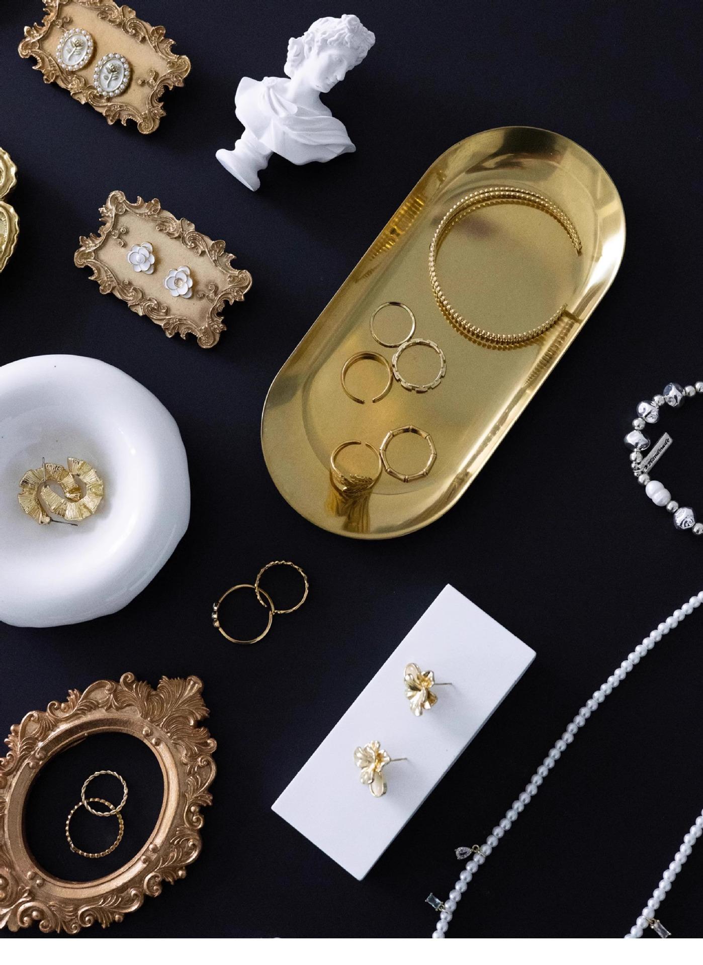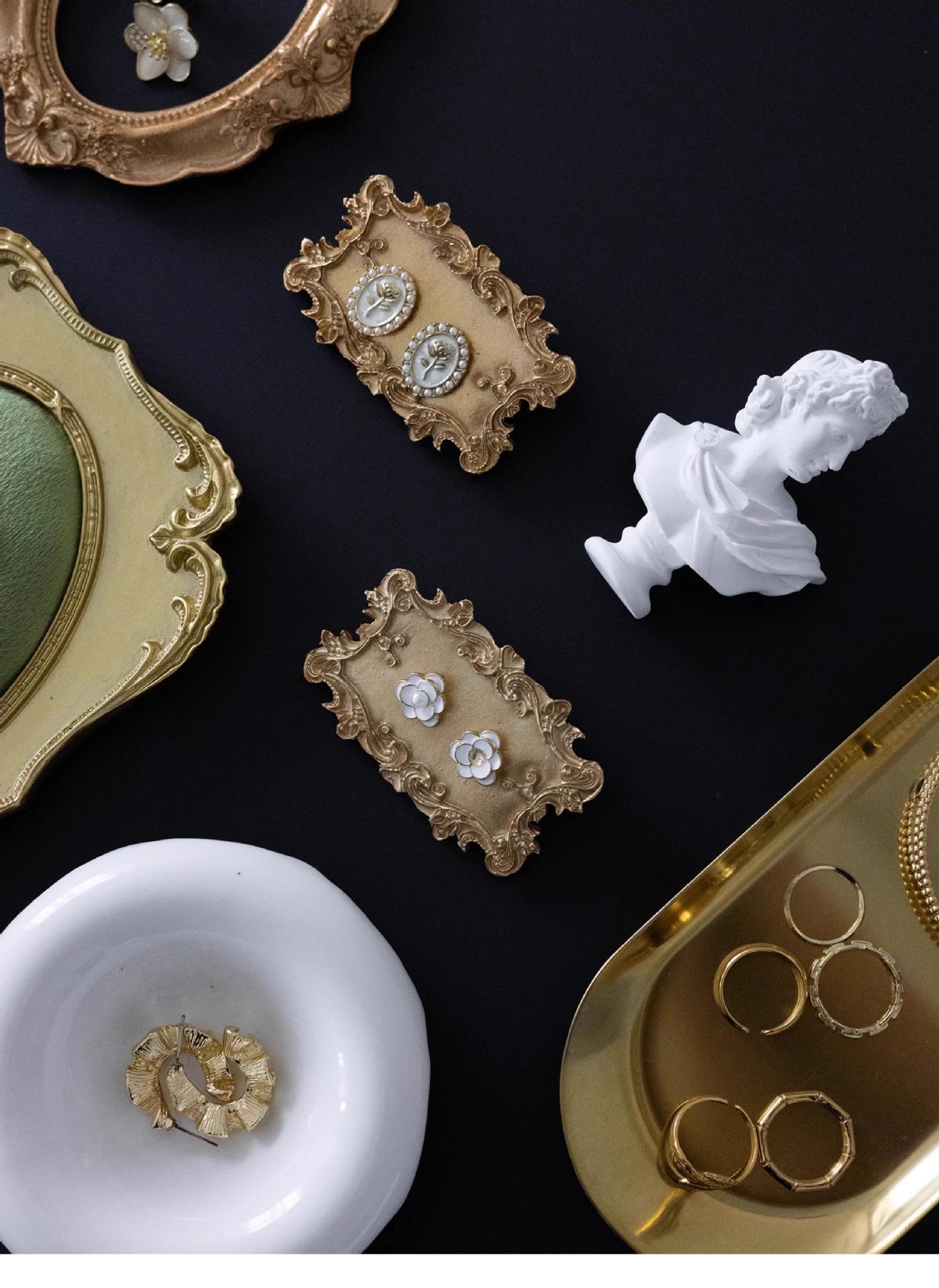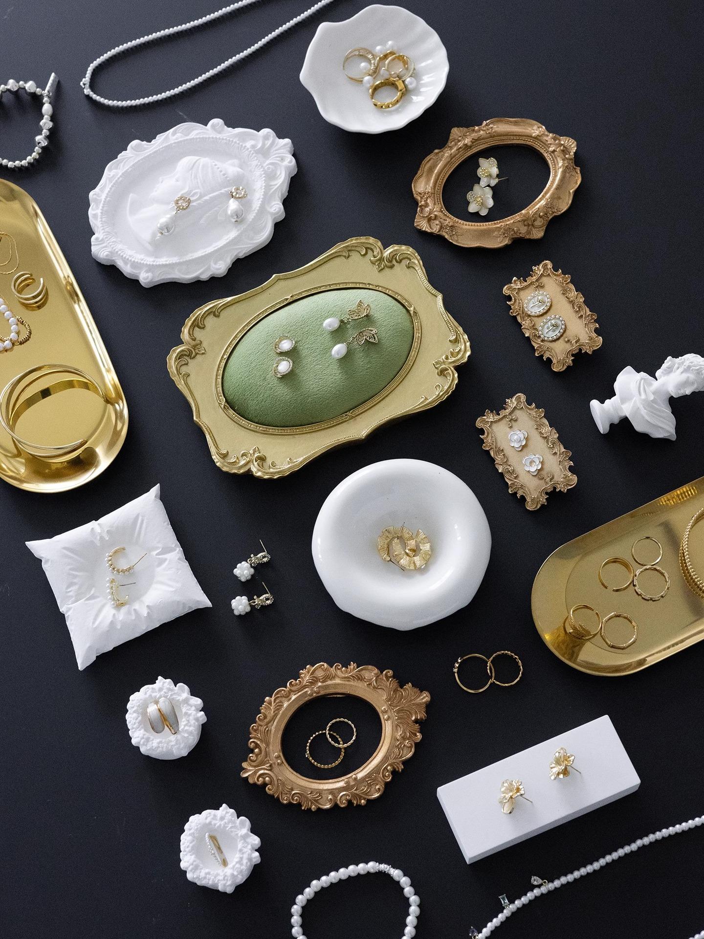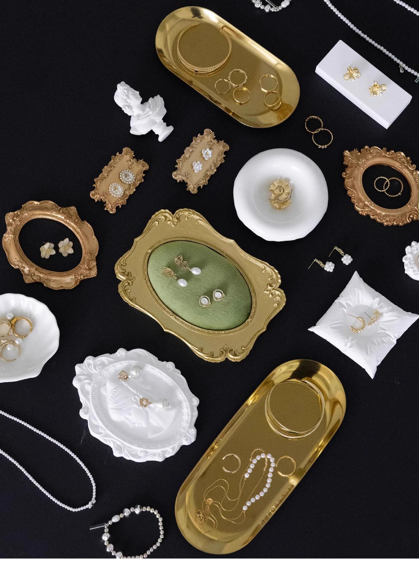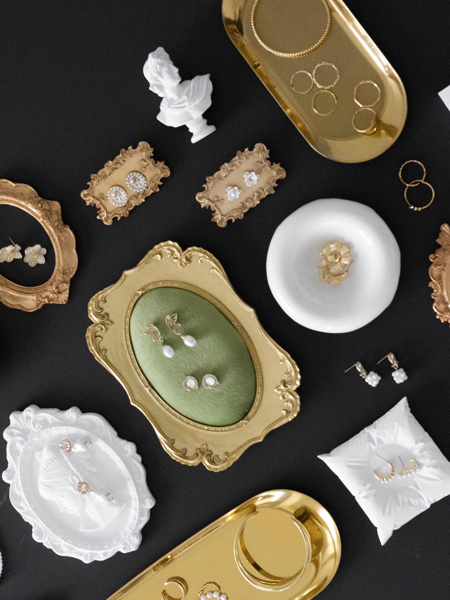 Gold edge green velvet earring plate, Gold oval tray large, Gold oval tray small, Gold mini photo frame 22 #, ...