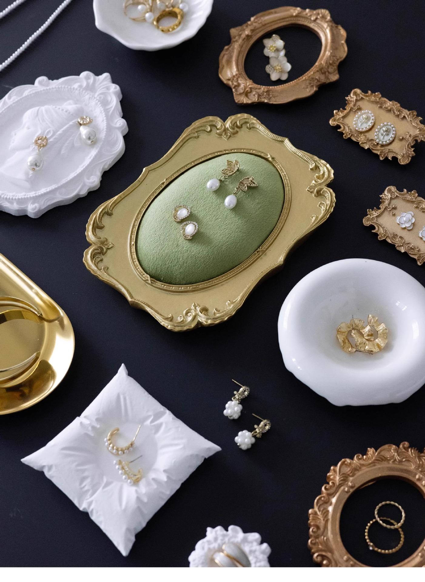 Plato de Exhibición de Joyería de Franela Vintage Plato para Almacenamiento de Aretes y Anillos Bandeja de Yeso Mostrador de Tienda Accesorios para Fotografía de Joyería