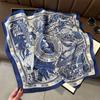 Bufanda de seda cuadrada de 70 pulgadas, estilo coreano de alta gama, moderna, combinable, profesional, de seda, pequeña, con estampado retro para mujer.
