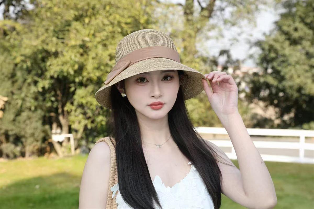 Sombrero de paja estilo francés Hepburn para mujer, elegante sombrero de pescador con lazo para verano, ideal para vacaciones y playa.